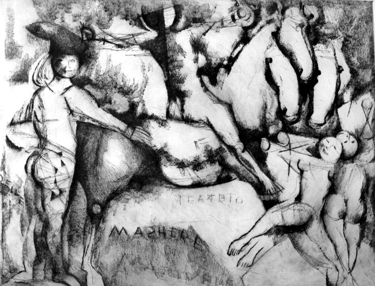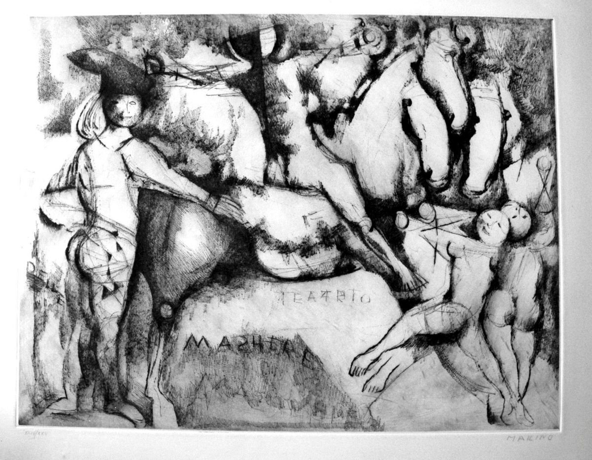 Teatro delle Maschere (Theatre of the Masks) - Original Etching by Marino Marini 1973