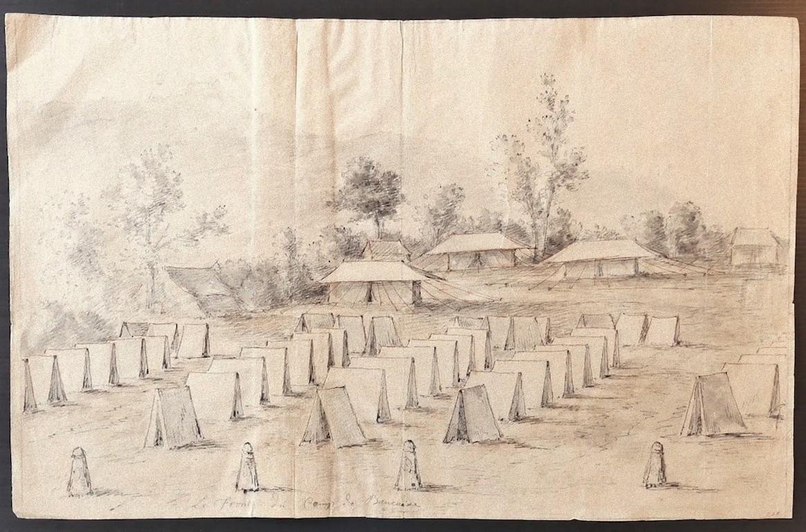 The Camp - Original Ink and Watercolor by J. P. Verdussen - 18th Century