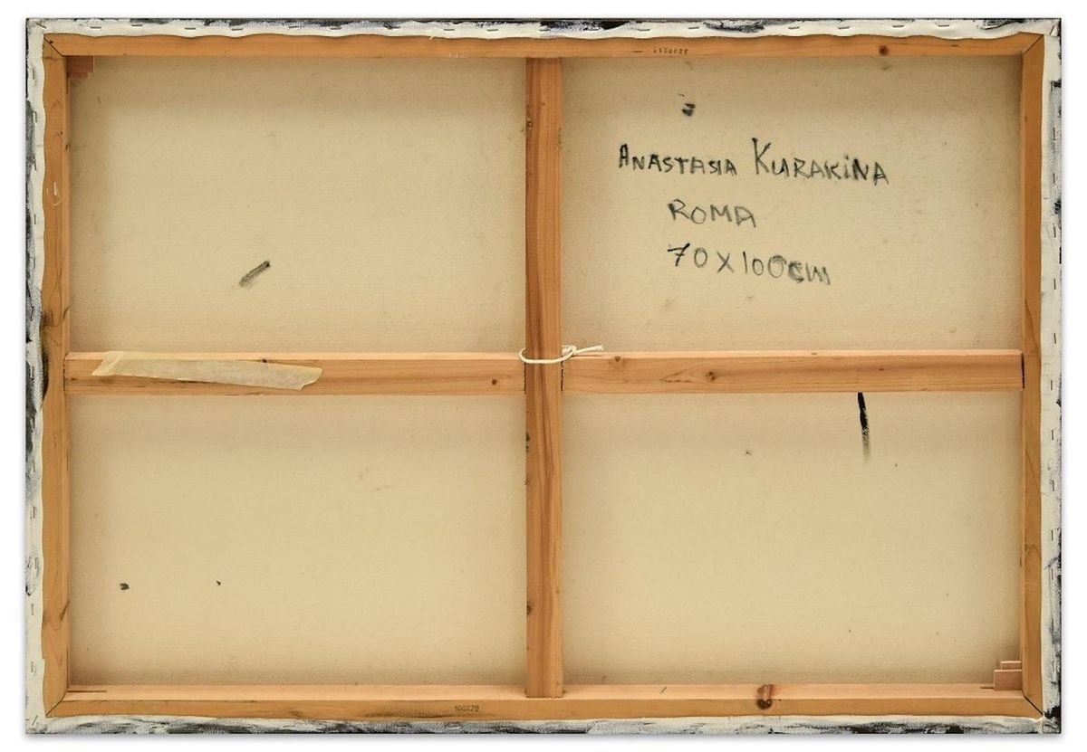 The Egg is an original oil painting on canvas, realized in the 2000s by the emerging artist Anastasia Kurakina. Hand-signed on the higher left margin. Signed on the back. Realized in Rome (as reported on the back). Very good conditions. This beautiful artwork represents a surreal composition with a woman from behind and what appears to be a large egg in the foreground. ANASTASIA KURAKINA was born in 1987 in Moscow (Russia). She studied in Moscow and in Rome. At present, she lives and works in Paris, London, Monte Carlo, Milan, Moscow, and Rome. Her psychologically analytical works are a kind of art fables. A simple image or object from life transforms into a metaphora of life itself in her paintings. Her portraits and graphic works are philosophical essence of visible and seeming reality. Art education: 2019 – Sorbonne University, Paris; 2012-2014 – MA Fine Art at the Academy of Fine Arts of Rome; 2007-2012 – Academy of Fine Arts of Rome; 1998-2005 – Moscow Academic Art Lyceum of the Academy of Fine Arts of Russia. Personal exhibitions: 2019 – Rome, Marino Gallery; 2018 –Milan, Zanuso Gallery; 2017 – London, Russian Cultu al Centre; 2017 –Luzern, Switzerland, International Comic Festival; 2017 – Rome, Russian Center of Culture and Science; 2016 – St.Petersburg, the Pushkinskaya 10 Art Center, Art League Gallery; 2016 – Porto Cervo, Sardinia, evening solo show at MDM Museum of Contemporary Art; 2016 – Rome, American Embassy; 2013 – Tolentino (MC), International Art Museum of Tolentino; 2006 – Moscow, Central House of Artist. Awards: 2017 – Rome, I prize of the national award “Arte &sport” of the AONI (National Italian Olympic Academy); 2015 – Rome, Adrenalina prize I prize; 2013 – Rome, Adrenalina prize under 35 and prize of the public, Museum of Contemporary Art MACRO; 2013 – Chieti, Milan, Golden Medal of «Illustrate Manzoni»award, Chieti-Milano Manzoni’s Museum, Italy; 2012 – Milan, Winner of the scholarship for the artistic research of Socetà Umanitaria of Milan; 2011 – Tolentino, I prize “City of Tolentino” of the 26th edition of the International Bienniale of Art Humor of Tolentino; 2008 – Modena, I prize “Under 25” of the national Competition of Contemporary Sacred Art “Familia Sancta“. Collective exhibitions: 2019 – London, UK Royal Watercolour Society’s Contemporary Watercolour Competition, Bankside gallery; 2018 – Sunderland, UK, Sunderland Museum un Winter Gardens; 2018 – Edinburgh, UK, Scottish National Portrait Gallery, BP Portrait Award; 2017 – Vatican, Vatican Museums, “Antico Presente” exhibition; 2017 – London, UK, Sunny Art Award exhibition, Sunny Art Center; 2017 – Exeter, UK, Royal Albert Memorial Museum and Art Gallery, BP Portrait Award; 2017 – London, UK, National Portrait Gallery, BP Portrait Award; 2017 – London, Works on paper Art Fair, Royal Geographic Society; 2016 – Sardinia, live painting at Il Novecento gallery; 2016 – Rome, live painting at Brasilian Embassy at Simone Ghera’s “Dance inside Brasil” exhibition; 2016 – Oxford, UK, Oxford International Art Fair; 2015 – Mexico, MUMEDI Mexican Museum of Design; 2015 – Cambridge, UK, Cambridge International Art Fair; 2015 – Rome, Museum of Contemporary art MACRO; 2013 – Los Angeles, La luz de Jesus Gallery; 2013 – Shanghai, International Art Fair of Contemporary Art; 2013 – Rome, Embassy of Iraq, Embassy of Egypt; 2013 – Venice, Arte Laguna Prize’s exhibition at Venice’s Arsenal; 2012 – Rome, «Green blood» at Dorothy Circus Gallery; 2011 – Museum of Roman Cilvilization in Rome; 2010 – Naples, “Biennial of the artist’s book”; 2009 – La Paz, Bolivia, 4° Bienal Internacional Siart; 2008 – Bari, 28th International Fair of modern and contemporary Art; 2008 – Moscow, “Art Manezh 2008”, Central Exhibitions Hall Manege. Collections: Vatican Museums; Nina lobanova-Rostovskaya (London); National Museum of Sacred Art of Nonantola (Italy); Marchese Sacchetti (Rome); National Centre for Manzoni’s Studies (Milan). (private collections in Italy, UK, Russia, Germany)