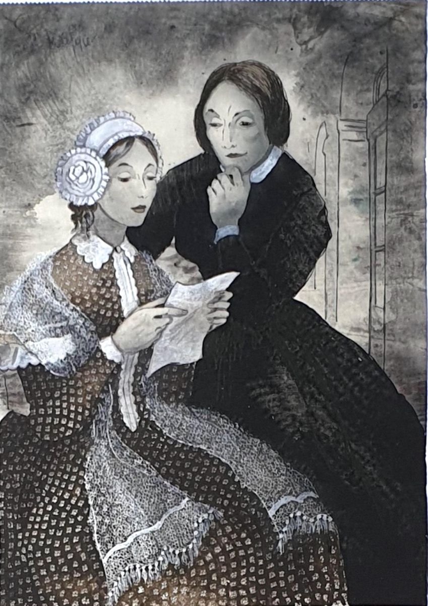 The Letter - OriginalChina Ink and Watercolor Drawing by E. Klepper - 1950s 1950s
