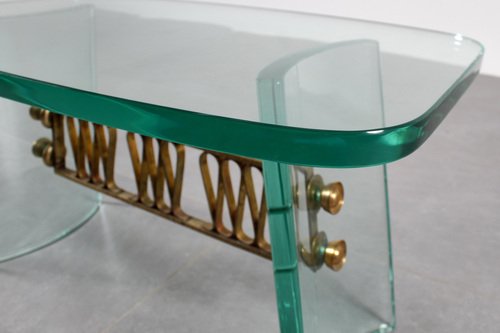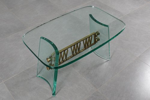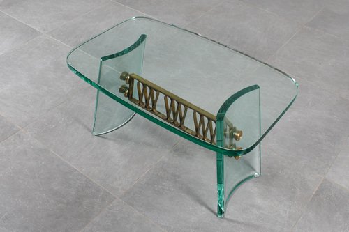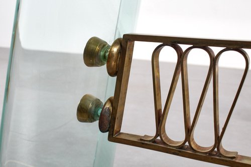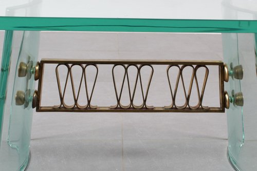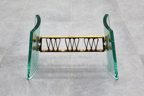Mid-Century Round Coffee Table in Brass and Glass, Italy, 1950s