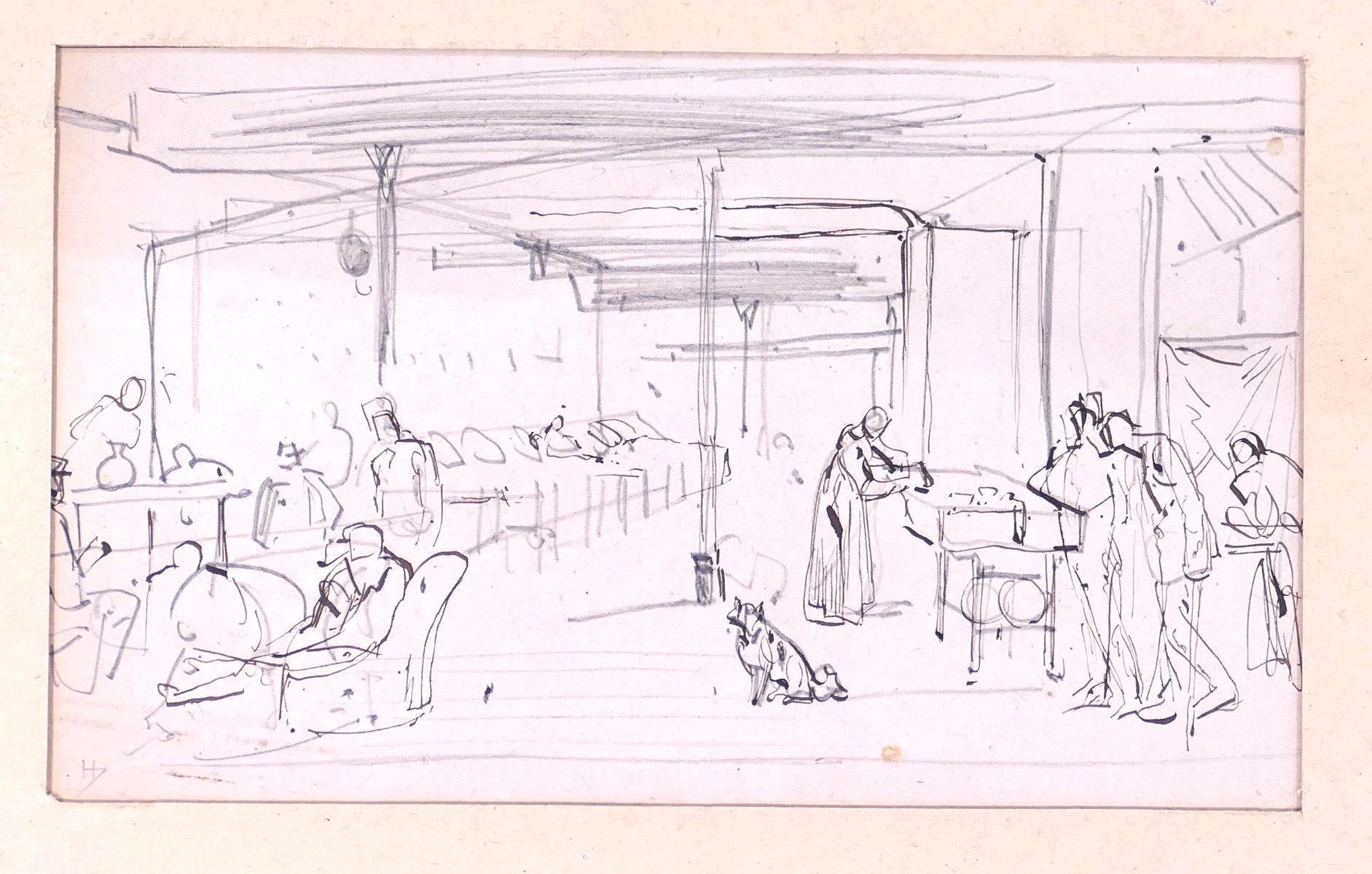 Tony Johannot - People in Room with Dog in the Middle - Original Pencil and ink