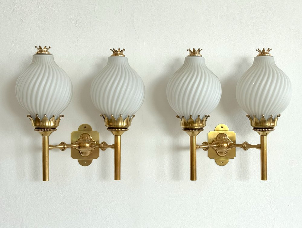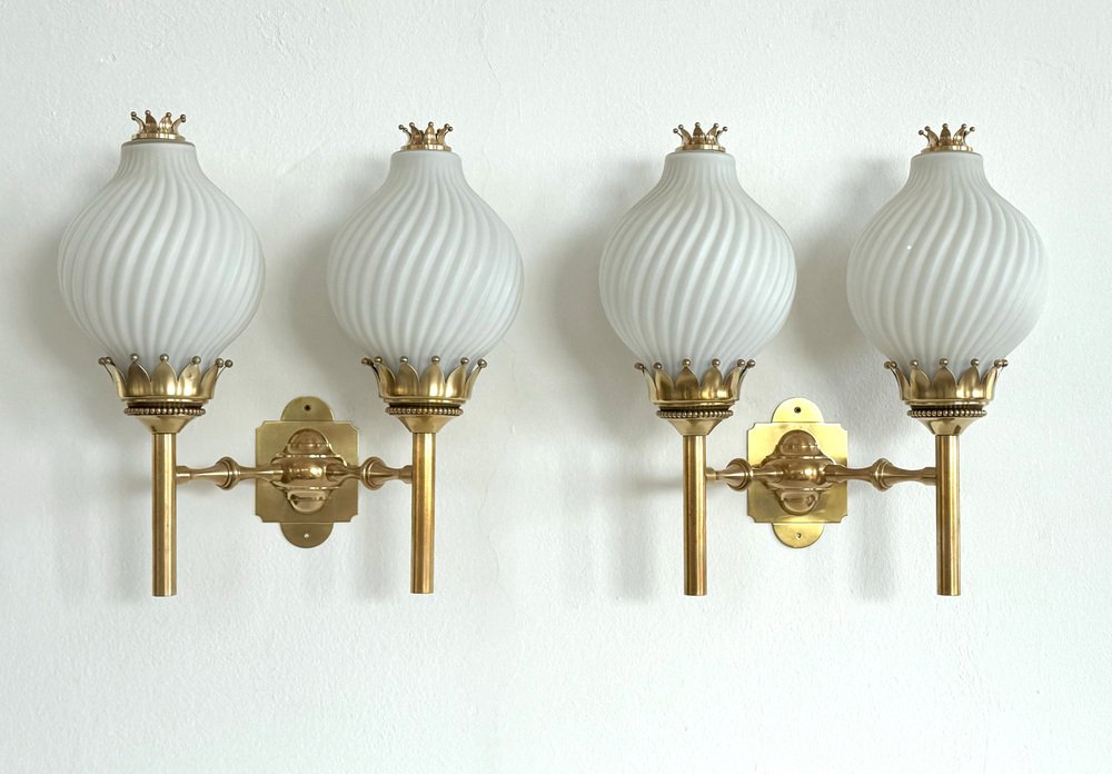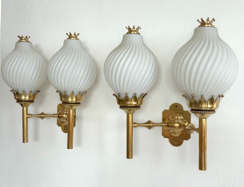 , many of which were designed by Lelli himself. Other iconic designers who worked with Arredoluce included Franco Albini, Achille and Pier Castiglioni, Vico Magistretti, Gio Ponti, Ettore Sottsass, Mario Tedeschi, and Nanda Vigo. Whereas many Arredoluce chandeliers and pendants are made from brass and feature opaline glass shades, the floor lamps and table lamps tend to be more minimalist in style, often featuring adjustable shades and articulated arms.