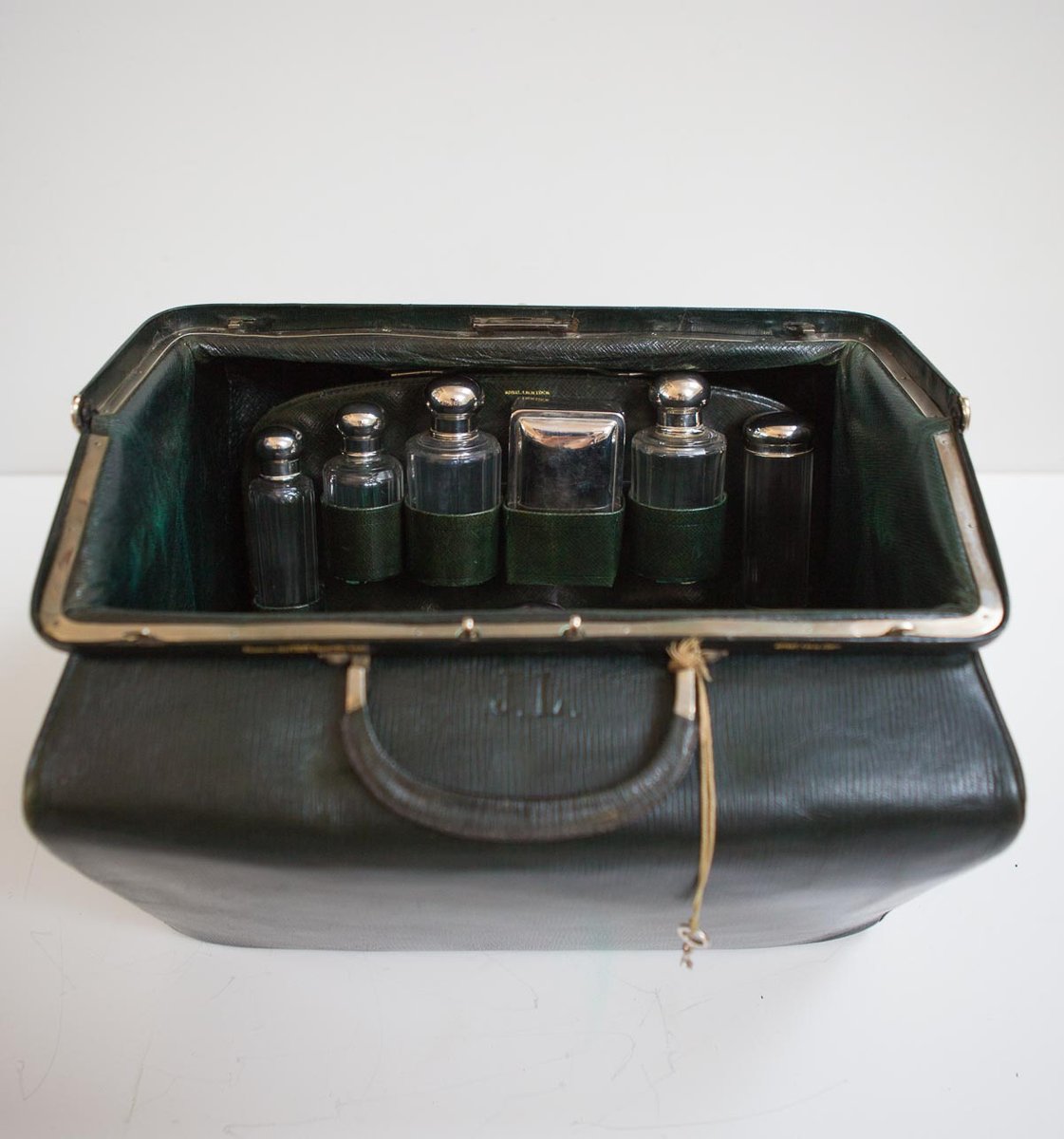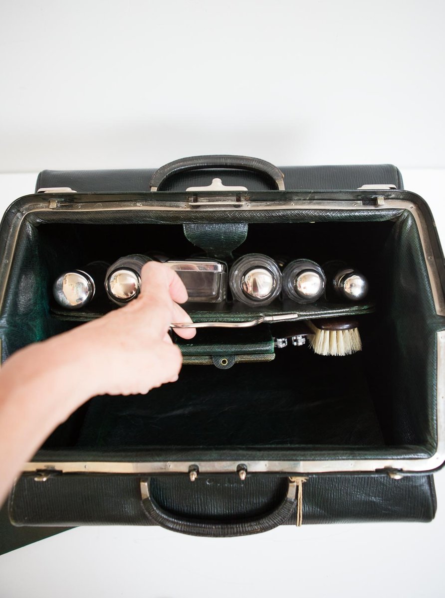 Moynat’s workshop was one of the first of its kind for leather work and developed many technical innovations; for instance, a patent for gutta-percha waterproofing in 1854, which used the sap of the gutta-percha tree. The company became widely lauded for its sturdy and waterproof trunks lined with silk or velvet intended for use in all modes of transport (steamship, railway, and eventually automobile travel).