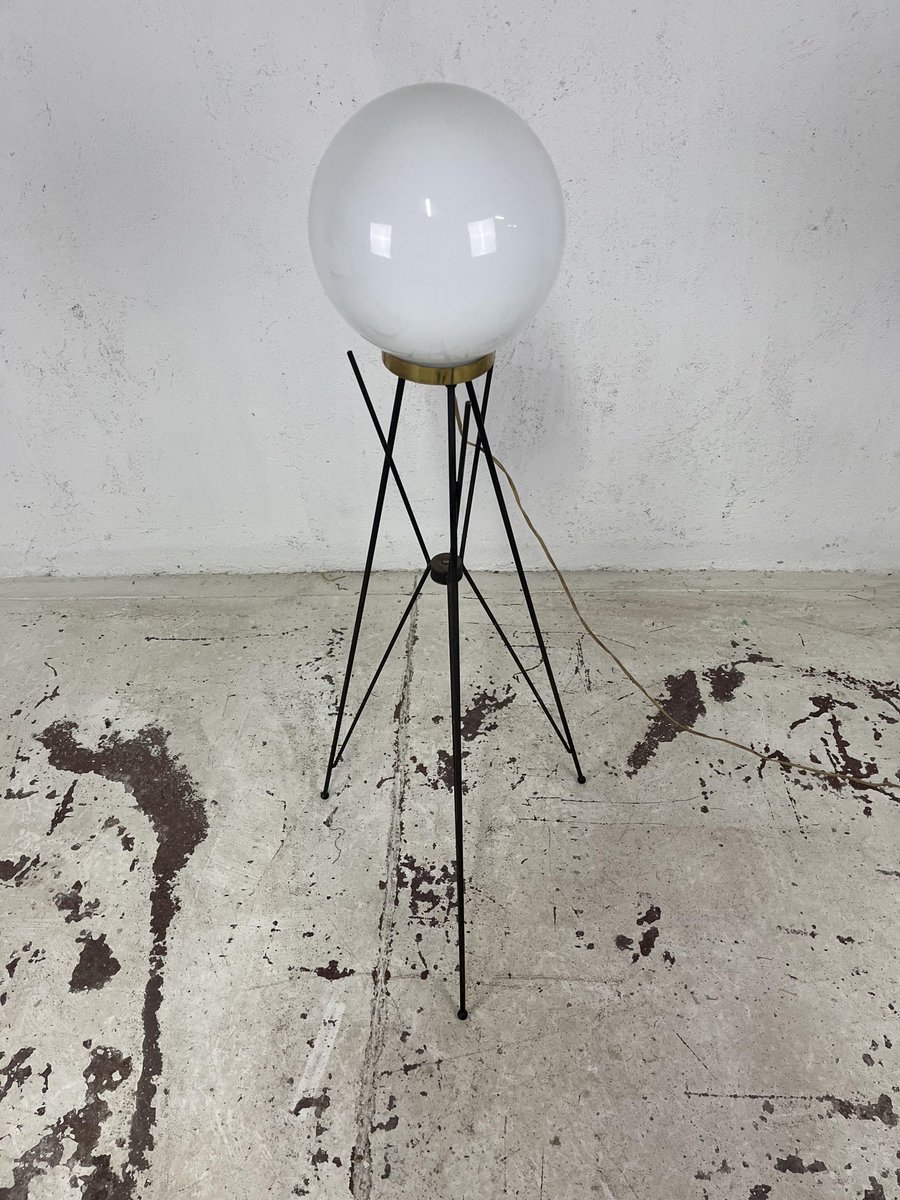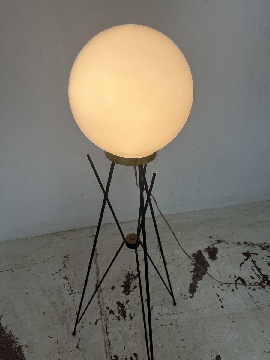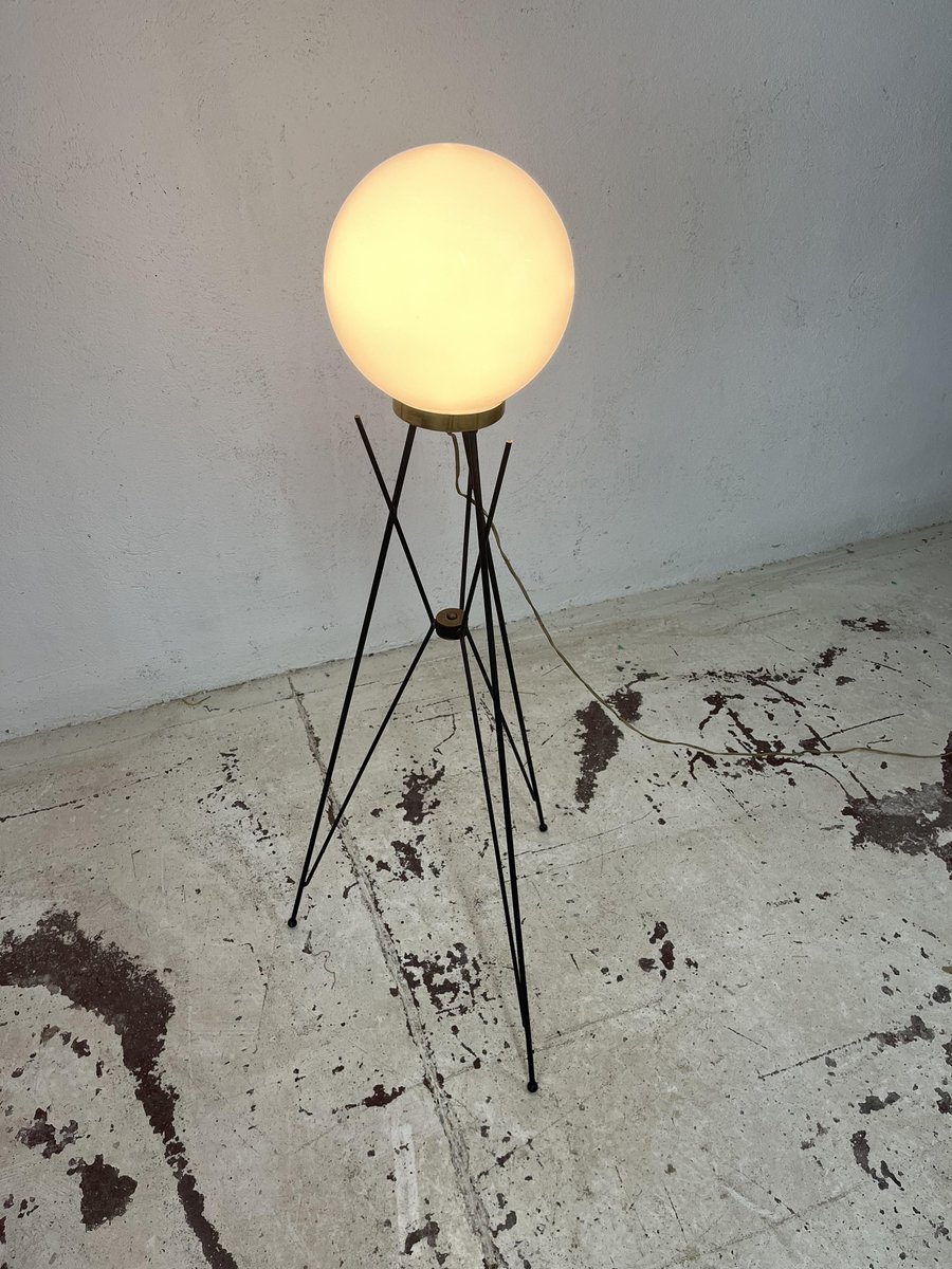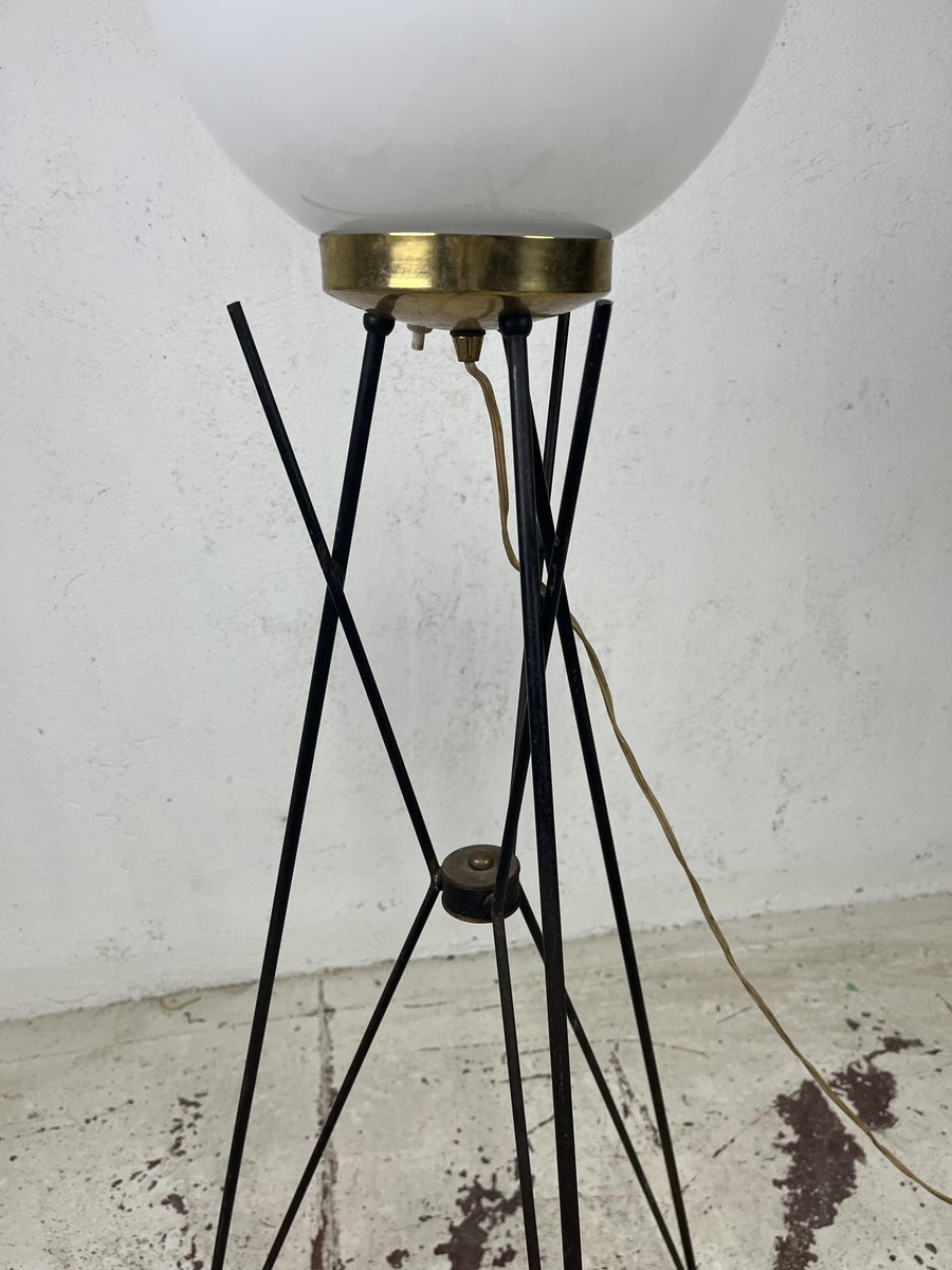 Tripod Floor Lamp in Brass Metal and Glass from Stilnovo, 1960s