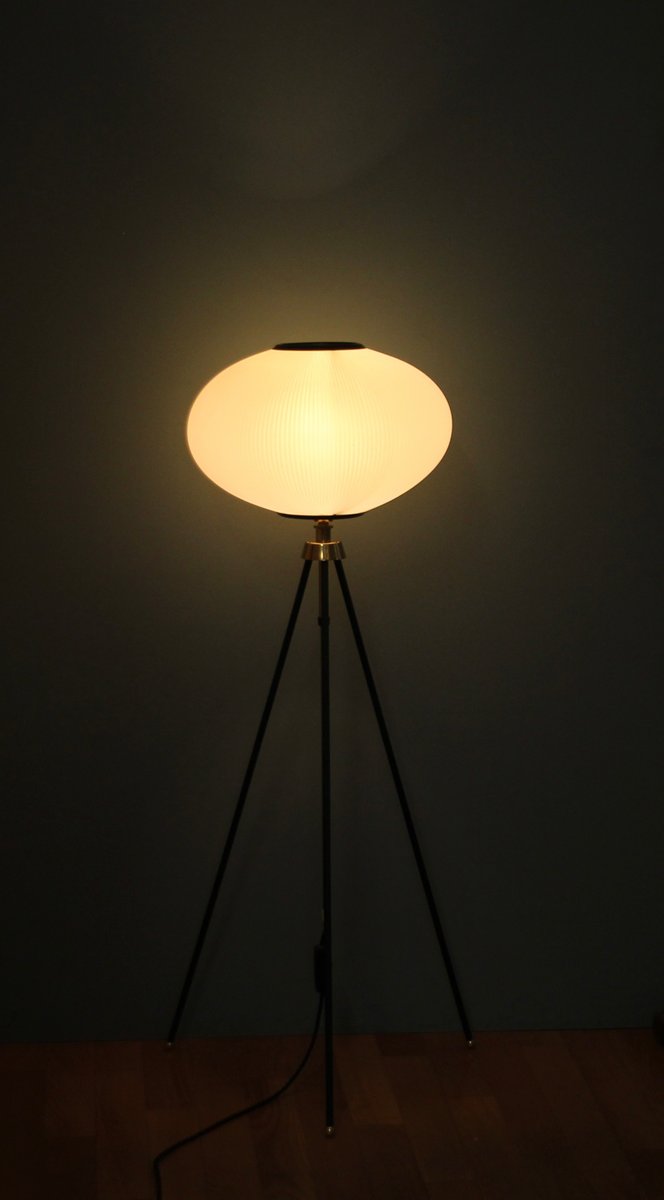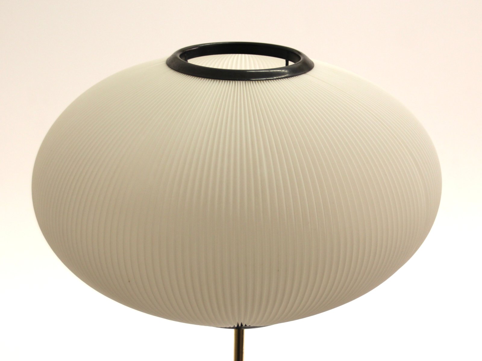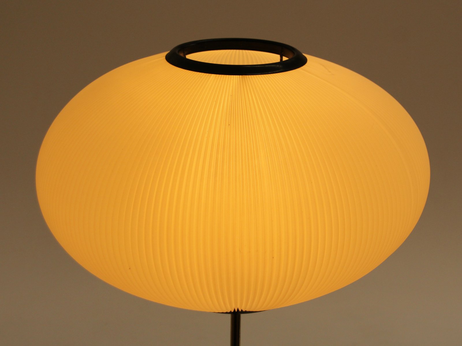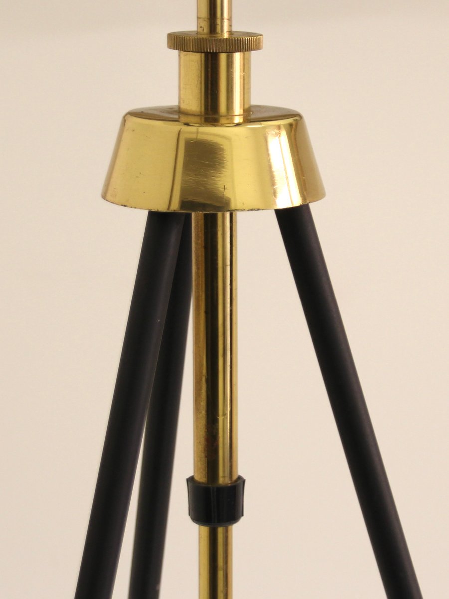 Tripod Height-Adjustable Floor Lamp with Toroidal Pleated Shade, 1950s