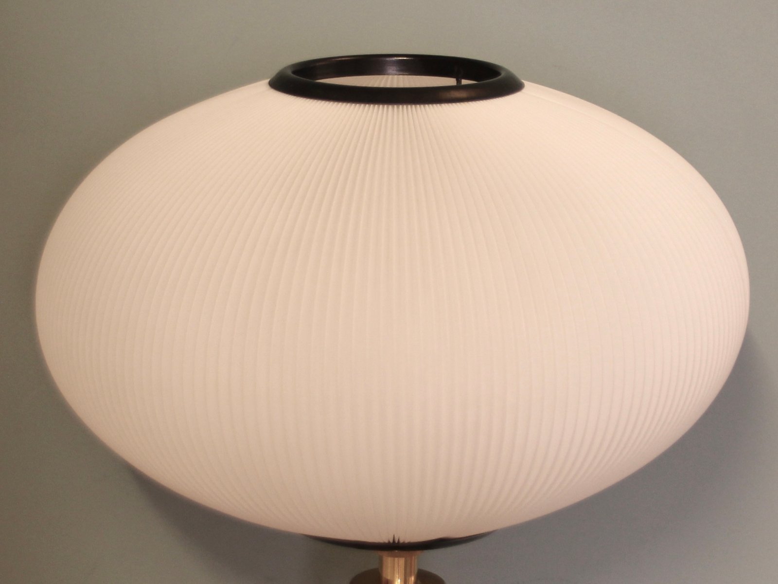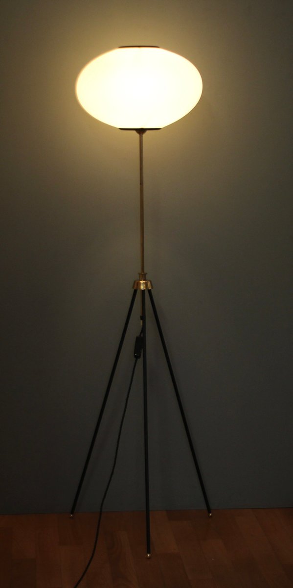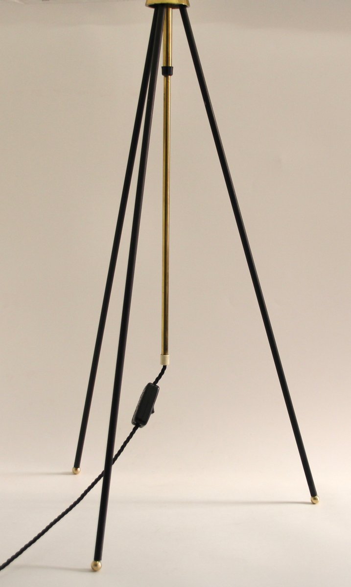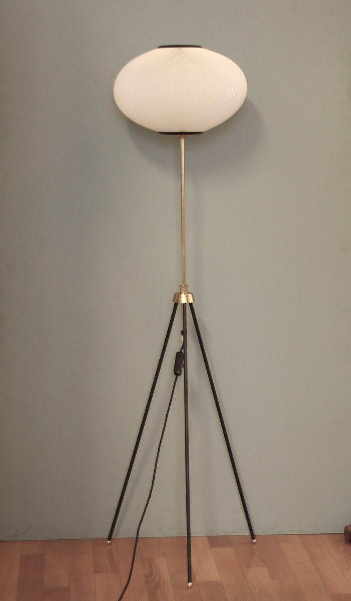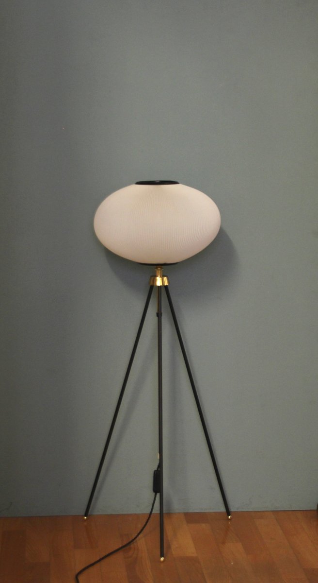 Tripod Height-Adjustable Floor Lamp with Toroidal Pleated Shade, 1950s