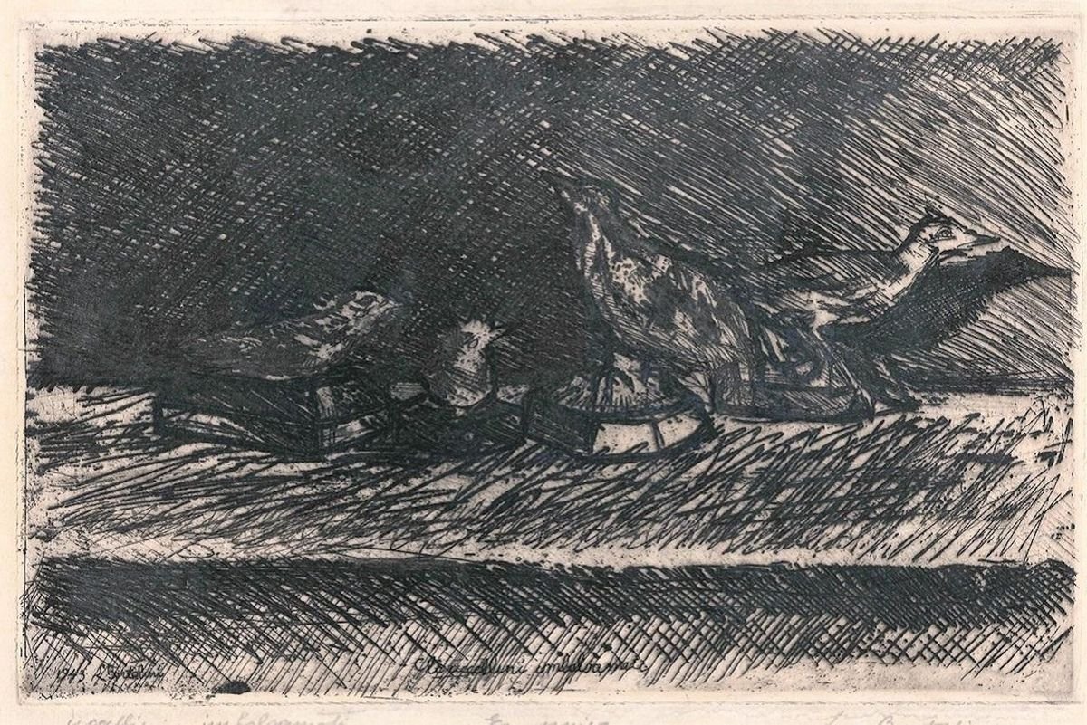 Uccellini Imbalsamati (Embalmed Birds) - Etching by Luigi Bartolini - 1943 1943