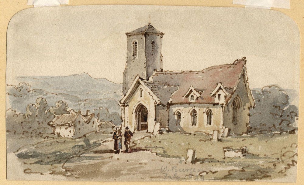 Unidentified Subjects, Unidentified Subjects, William Burgess of Dover, Country Church with Figures 1829, Watercolour, 1800s, Paper, 1800s, Watercolor