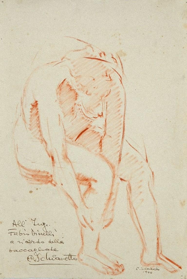 Unknown, Anatomical Study, Oil Pastel Drawing on Paper Signed Schiavetto, 1946