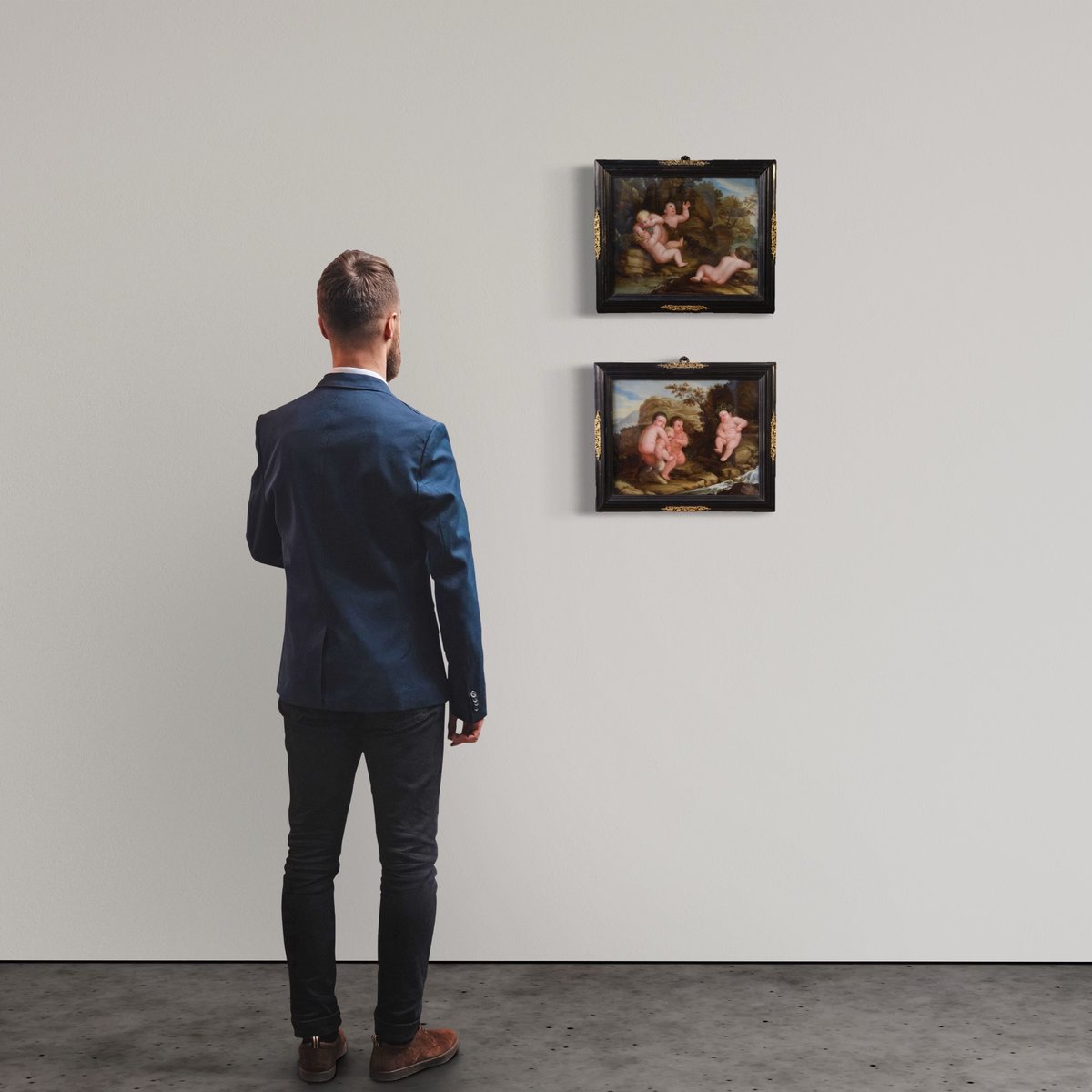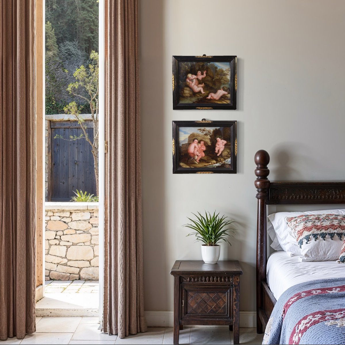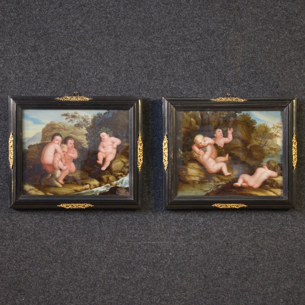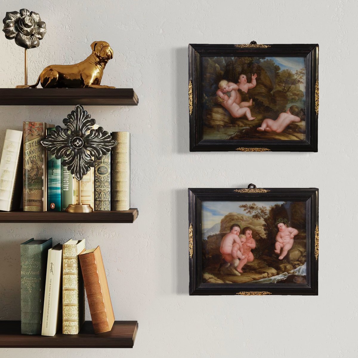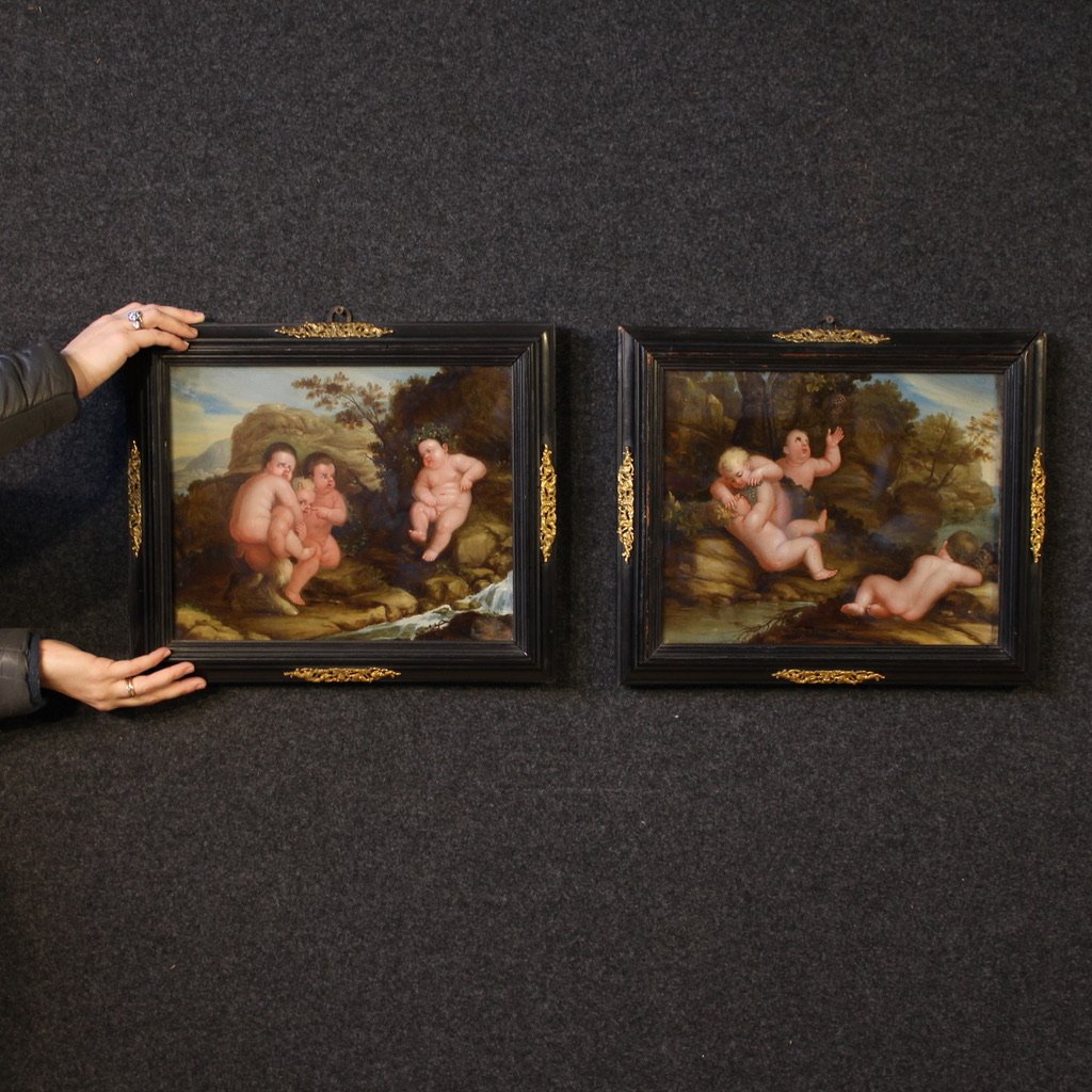 Unknown, Bacchanal of Cherubs and Satyrs, 1680, Oil & Glass, Set of 2
