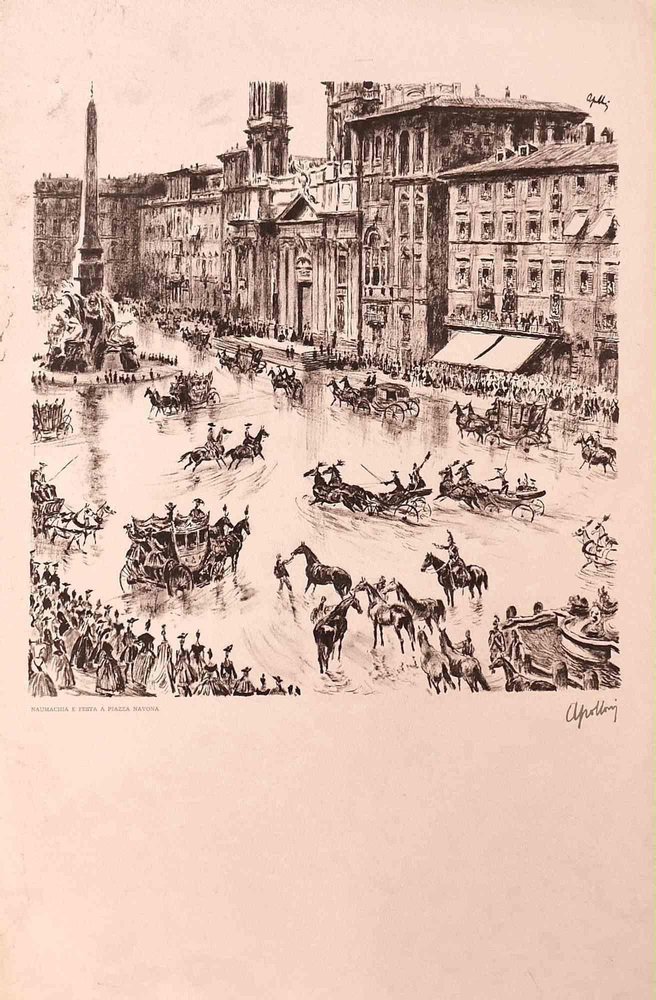 Unknown, Celebrations in Piazza Navona, Lithograph, 20th Century
