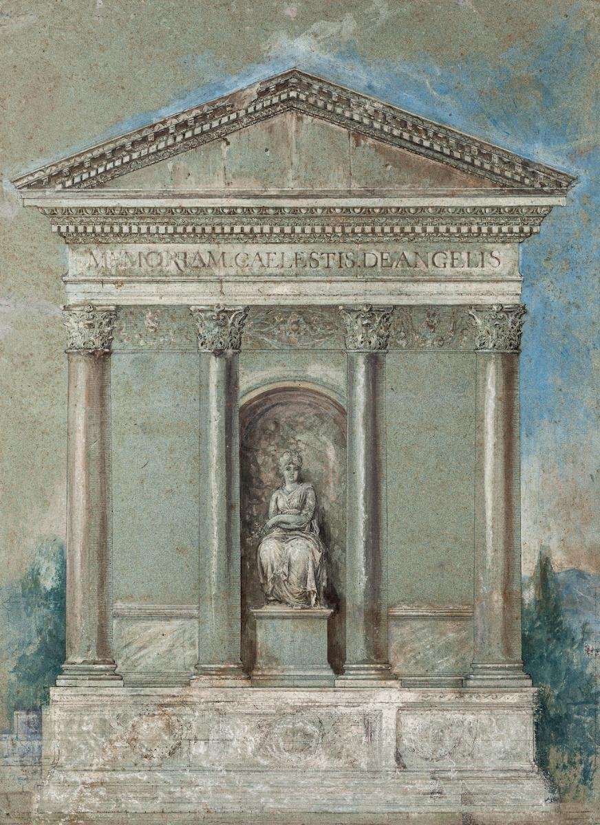 Unknown - Neoclassical Architecture - Original Ink, Pastel and Watercolor - 19th Century