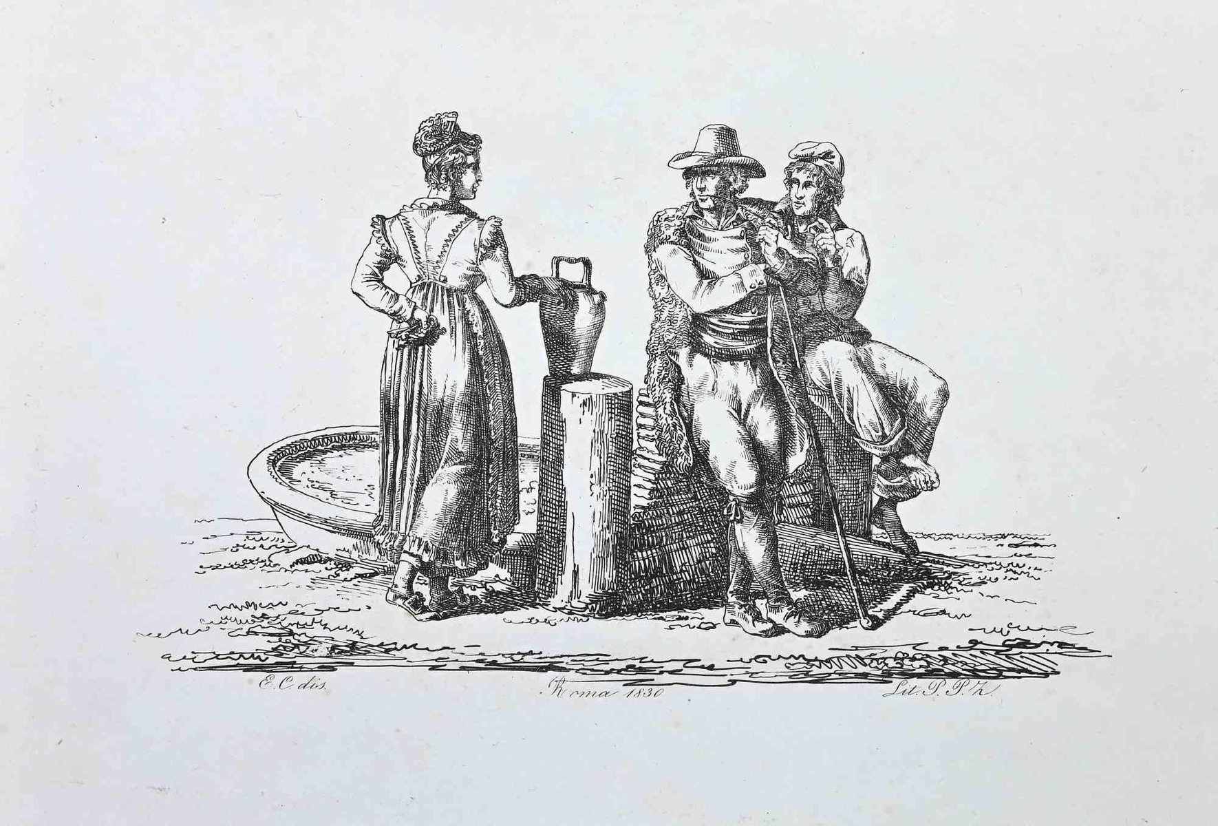 Unknown, Roman Scene, Original Lithograph, 1830s