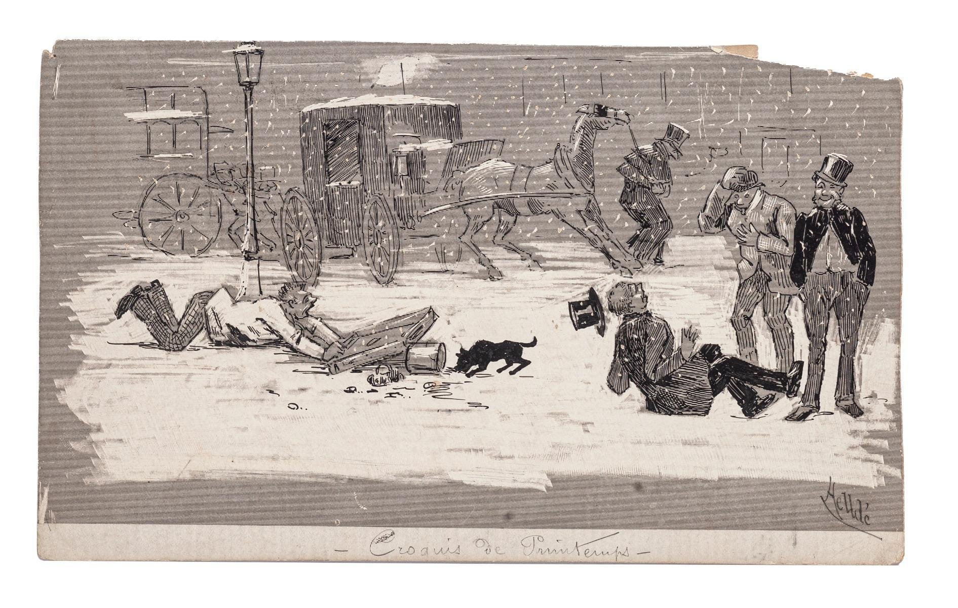Unknown, Snowy Weather, Original Mixed Media Drawing, Early 20th Century
