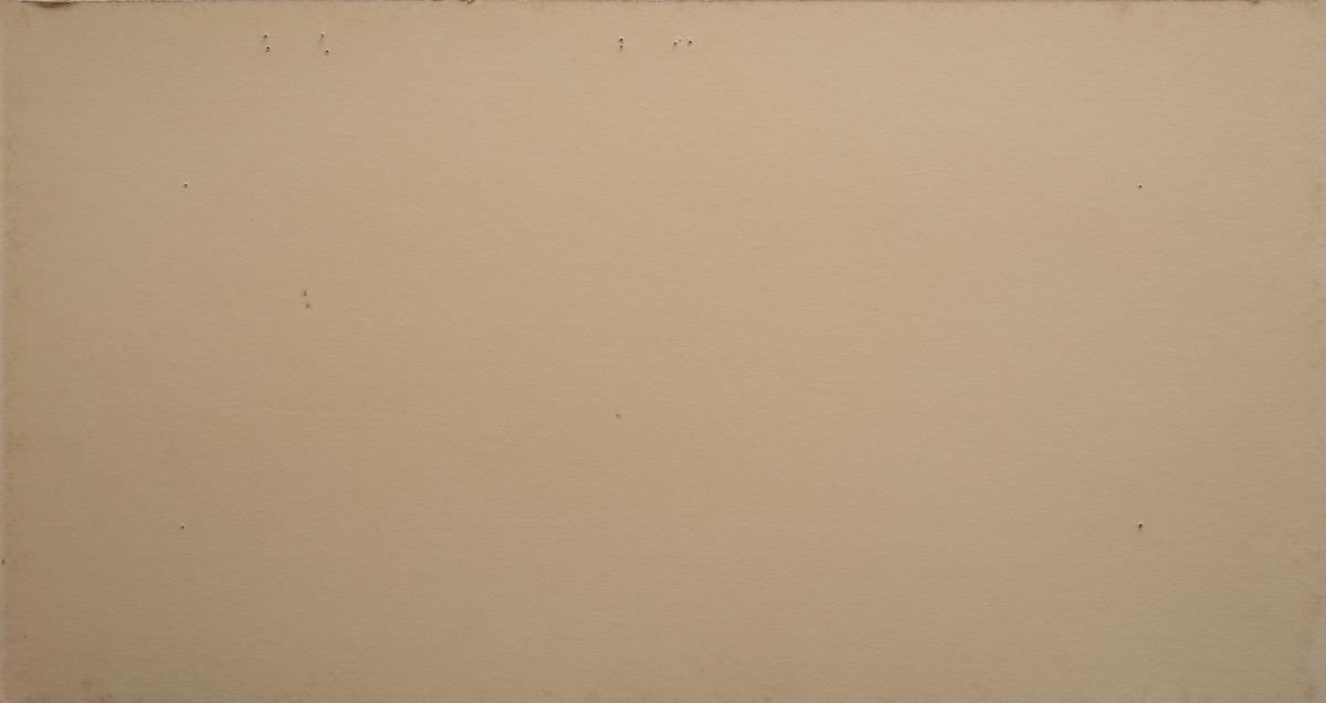 Untitled is a wonderful mixed-media artwork on paper (collage) realized in 1979 by Anne and Patrick Poirier. Hand-signed and dated in brown ink on the lower margin at the center. Five dried leaves were placed on a sheet of cream-colored cardboard, of which three are hidden and two are shown. Below each leaf there are handwritten notes in brown ink. This sort of still life of natural elements means to raise meditation on time, a usual theme in the Poirier's oeuvre, and takes on unprecedented levels of poetry. Anne Poirier was born in Houllevigue, Marseille, in 1942; Patrick Poirier was born in Nantes in 1942. The two French brothers and artists, through their contemporary artworks and installations, deal with issues related to architecture, archeology, and mythology, reflecting on the themes of time, memory, and space. Both studied at the École Superieure des Arts Décoratifs in Paris and then won the Prix de Rome, which allowed them to stay for three years in the Italian capital at the French Academy of Villa Medici. Their artistic research, heterogeneous in techniques and materials, from drawing to photography, from the cast to the collection of objects, from sculpture to video, aims at pondering on the theme of time and on its effects on memory. The two artists have found fragments of ruins at some archaeological sites, both real and imaginary, and reproduced them with Japanese paper casts, photographs, archival research, giving life to a sort of parallel archeology. These works refer to the archaeological sites of Villa Medici (1971), Ostia Antica (1972), the Domus Aurea (1975-77), as well as to the fantastic cities inspired by Borges or mythological stories. They also created monumental works in marble and bronze, shattered statues or architectural elements (The death of Efialte, 1982; Giove e Encelado, 1982-83, Antibes, Musée Picasso), large photographs (still lifes of objects, words engraved on petals), complex installations like The shadow of Gradiva. A last excavation campaign through the collections of the Getty Center (Los Angeles, 1999-2000) further underlined the theme of fragility, of the ephemeral, and of violence. Recent works include Danger zone (2001); L'âme du voyageur endormi (2004); The memory factory (2006); The labyrinth of memory (2007), a mirror installation designed for the Filosofia festival and the atrium at the Palazzo dei Musei in Modena, Italy.