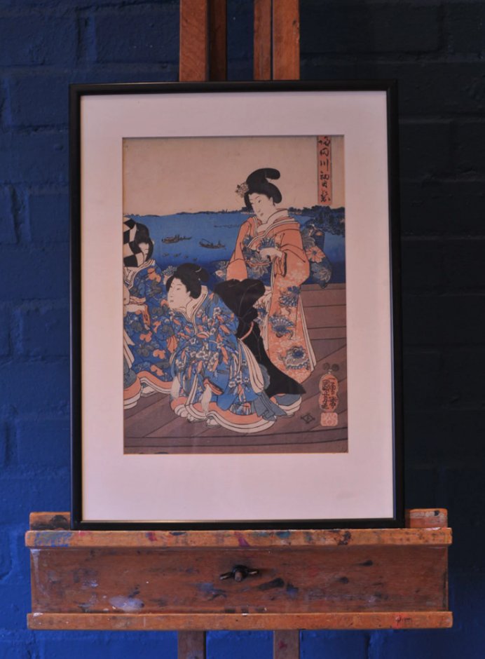 Utagawa Kuniyoshi, Japanese Figures, 1841-1852, Woodblock Print, Framed