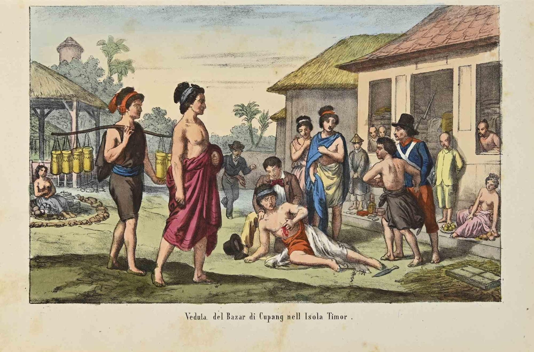 Various Artists, View of Cupang Bazaar in Timor Island, Lithograph, 1862