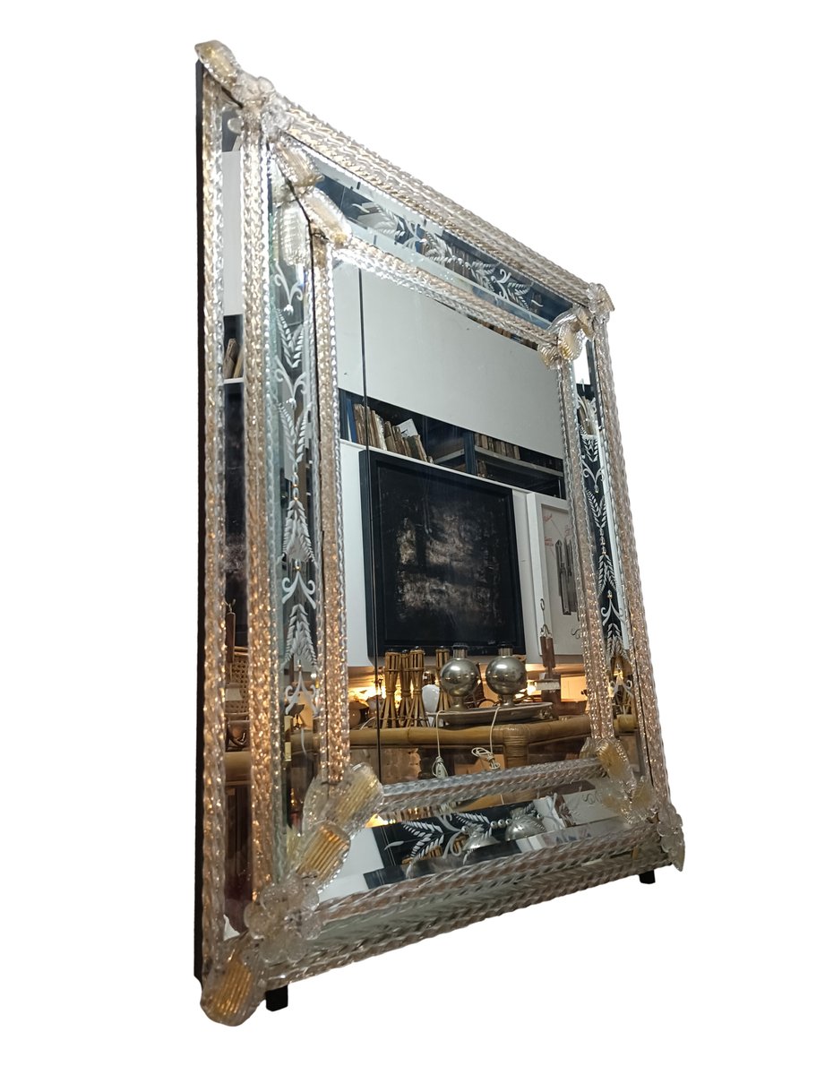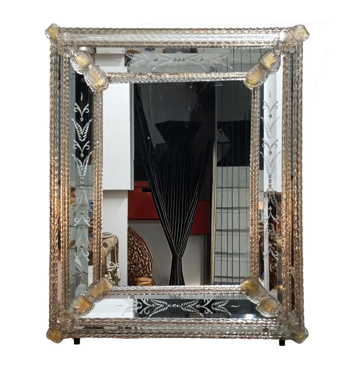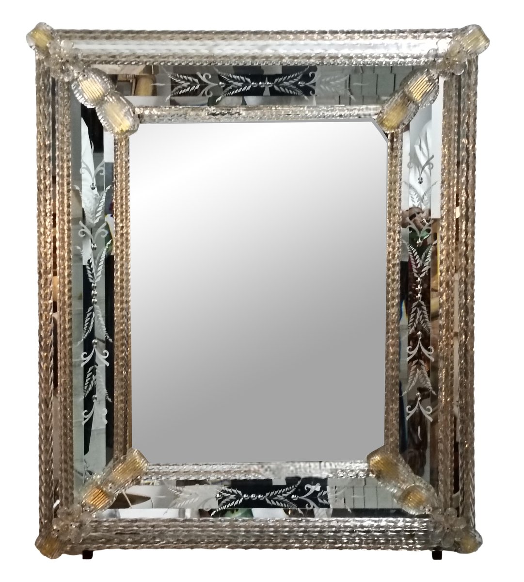 Venetian Wall Mirror with Carved Gold Leaf-Gilded Flowers and Leaves, Italy, 1950s