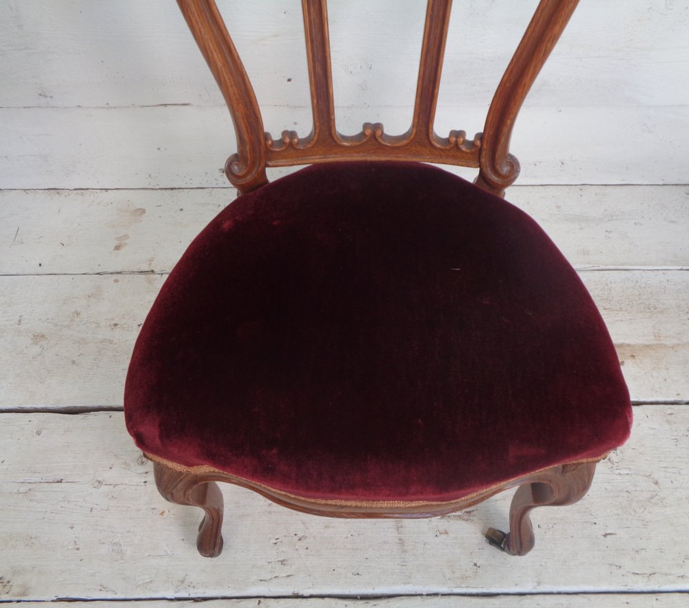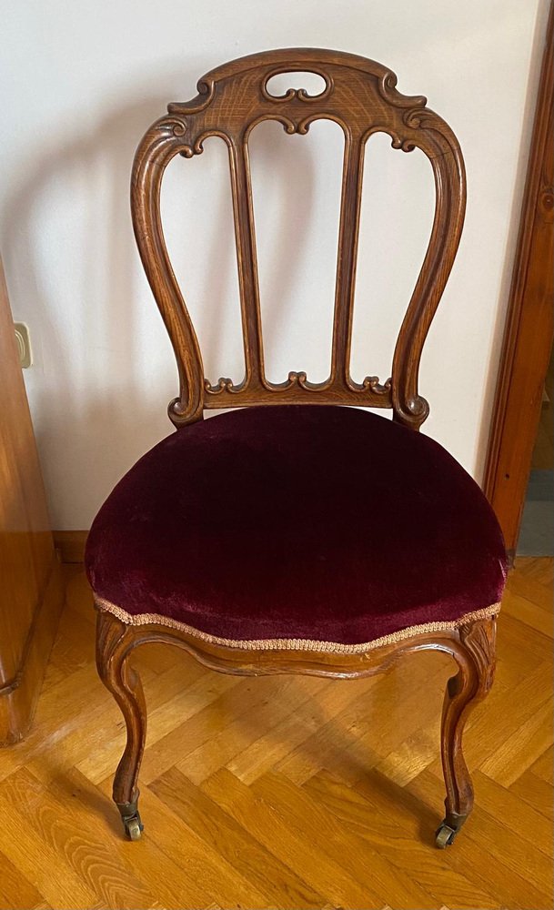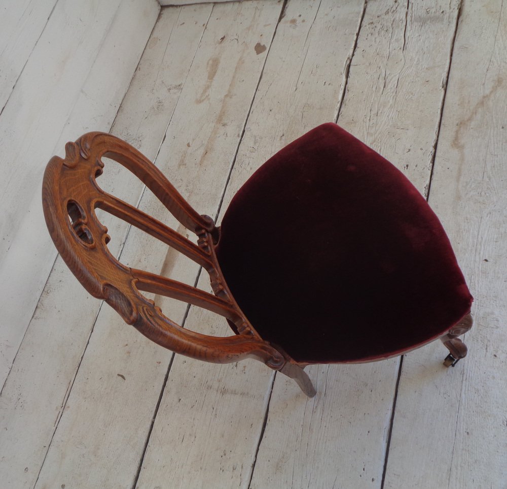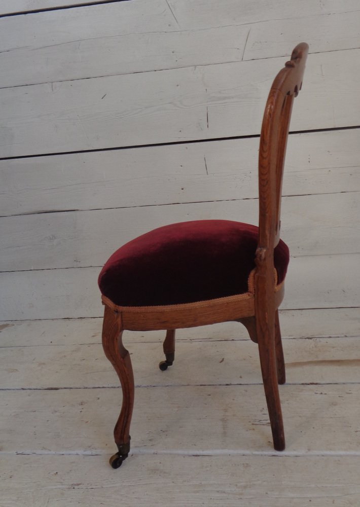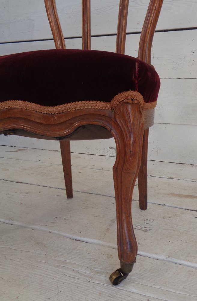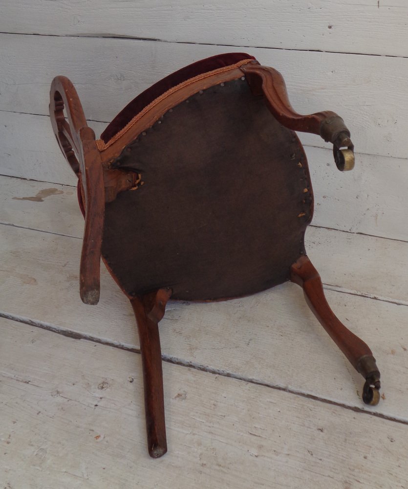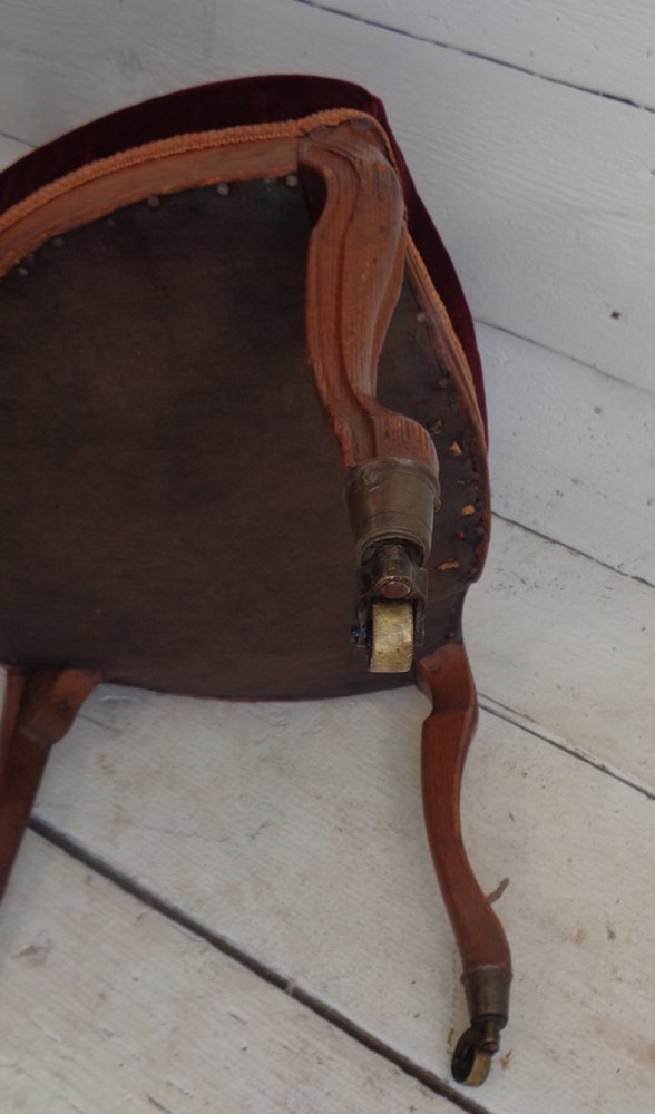 Victorian Chair with Velvet Seat and Brass Wheels, Late 19th Century