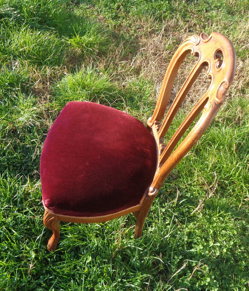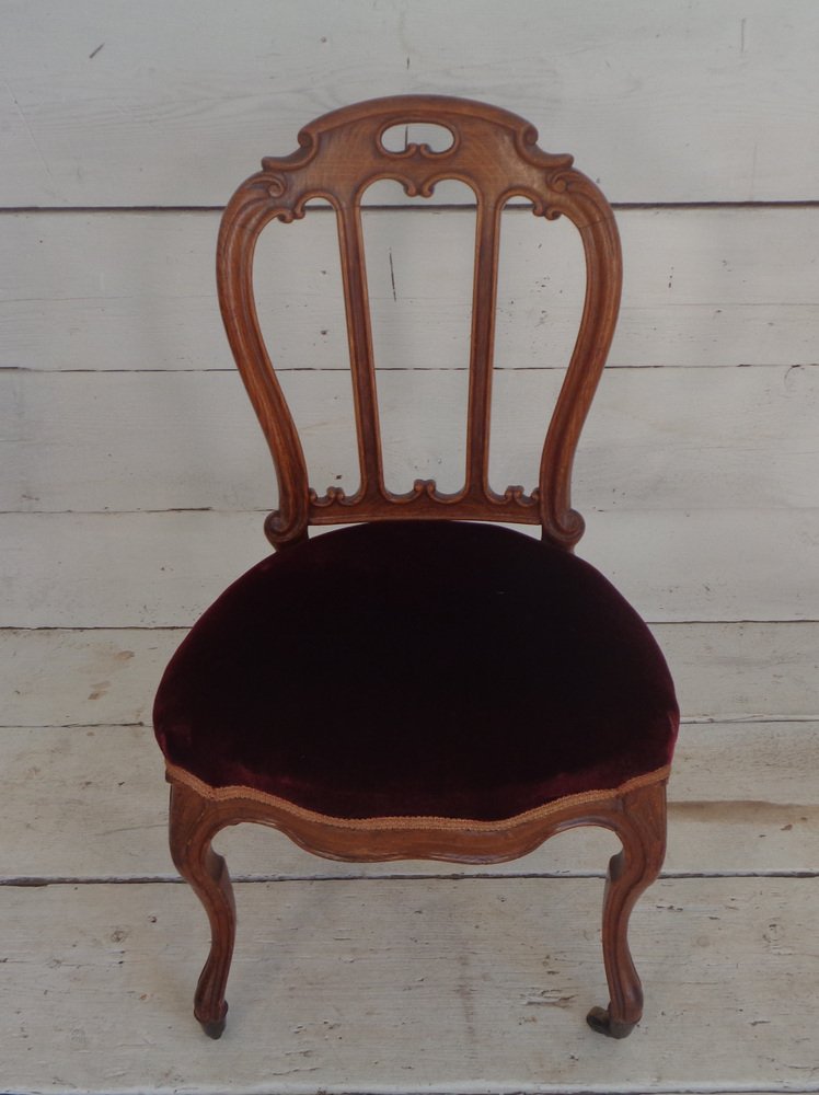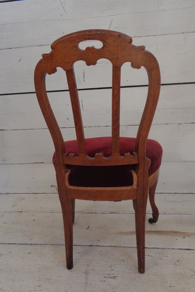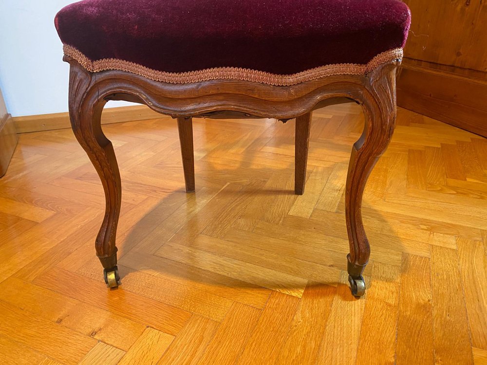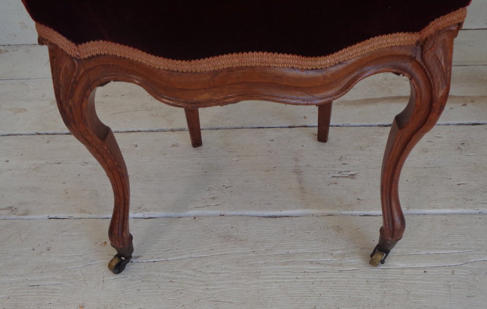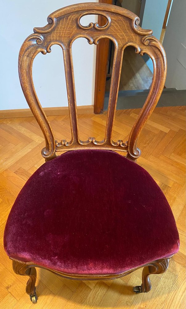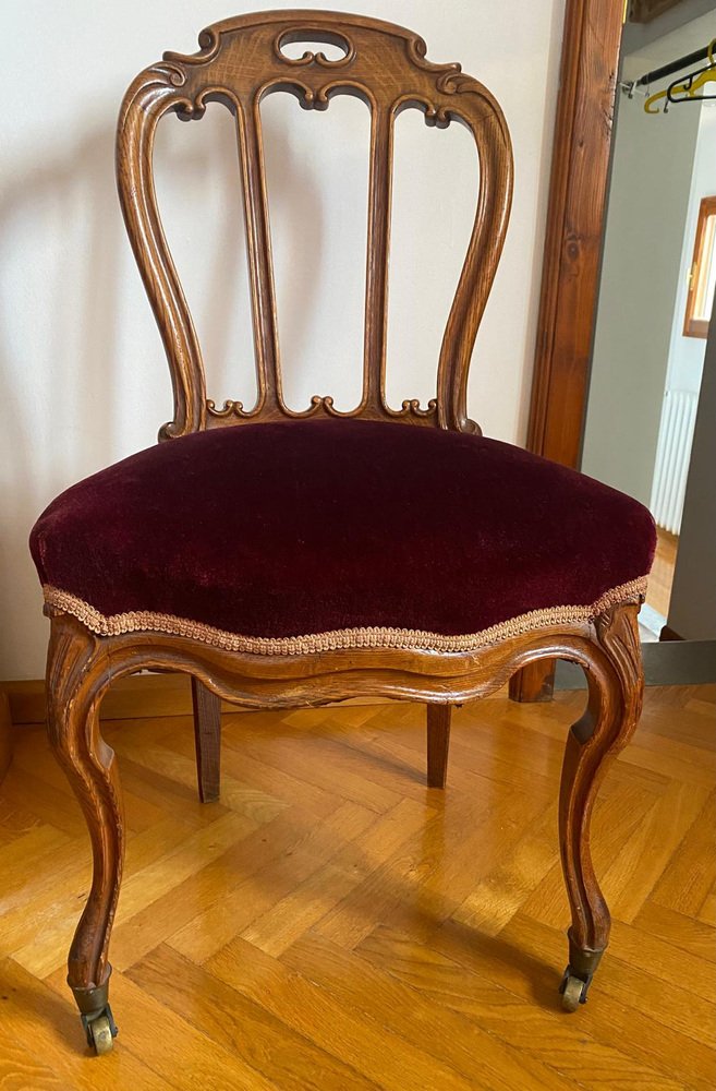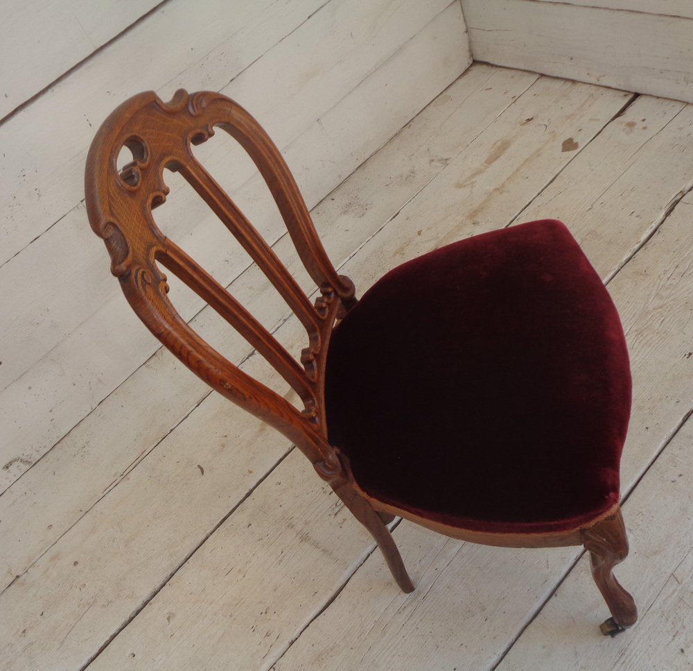 Victorian Chair with Velvet Seat and Brass Wheels, Late 19th Century