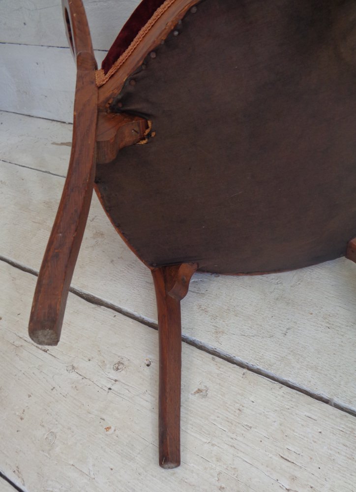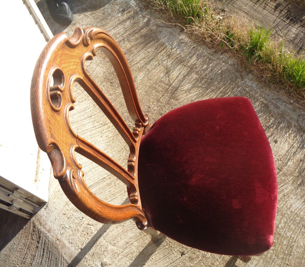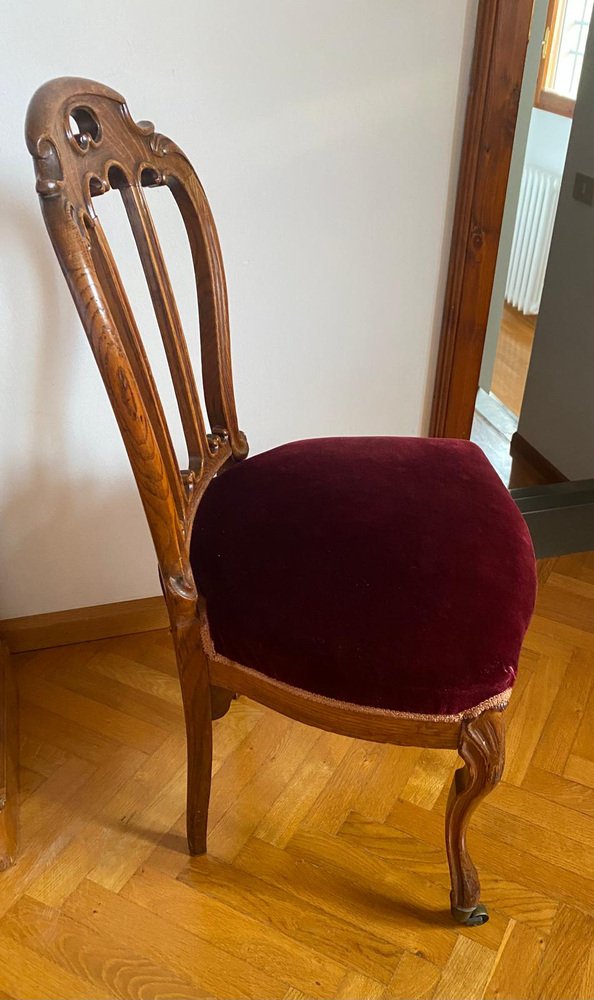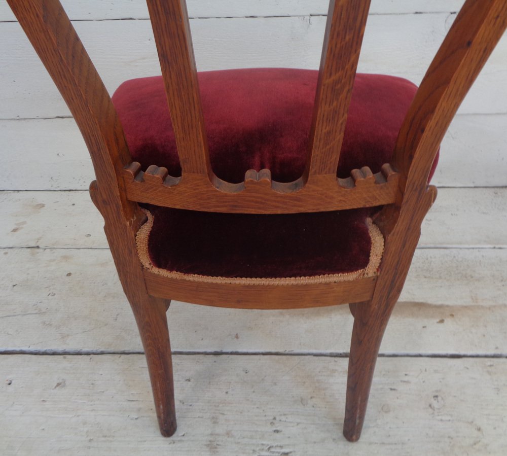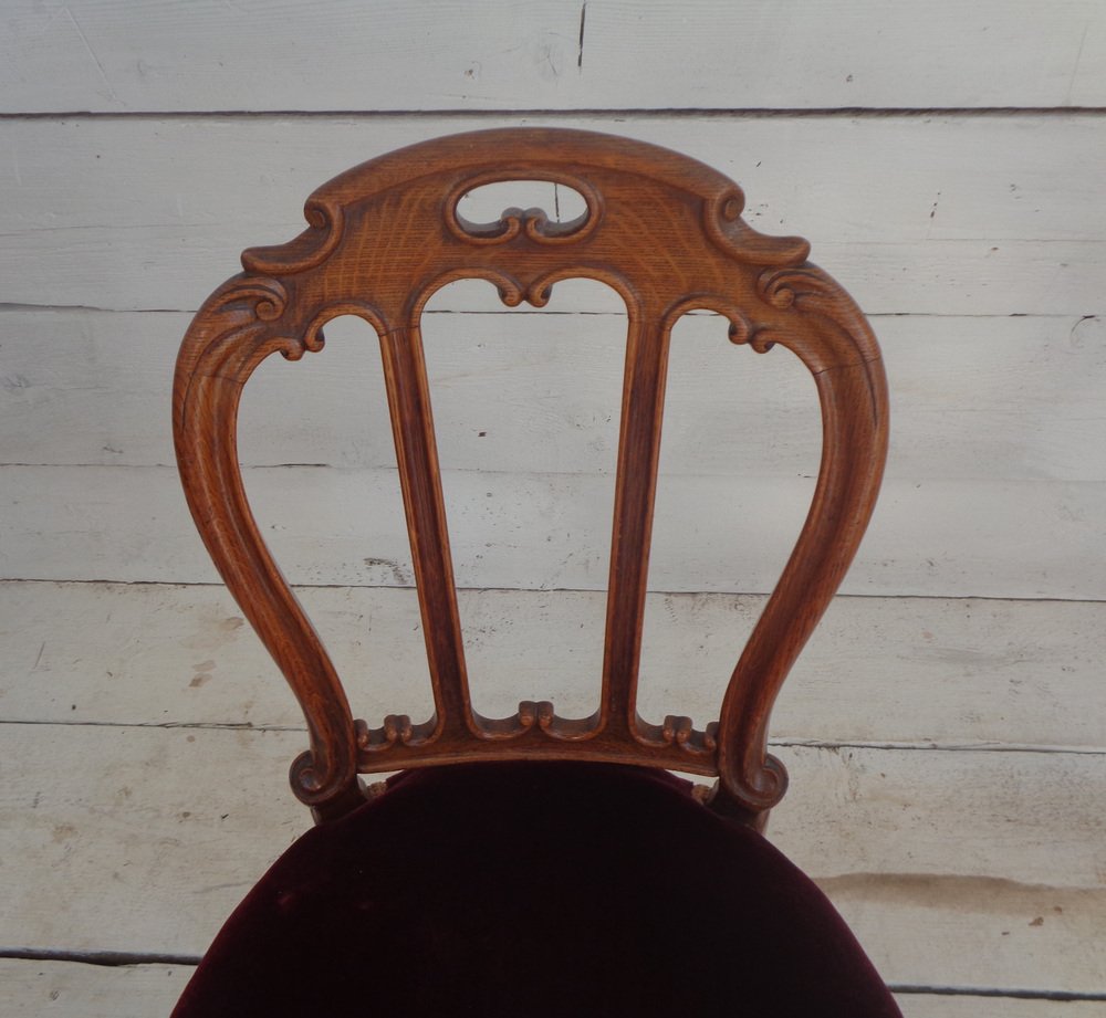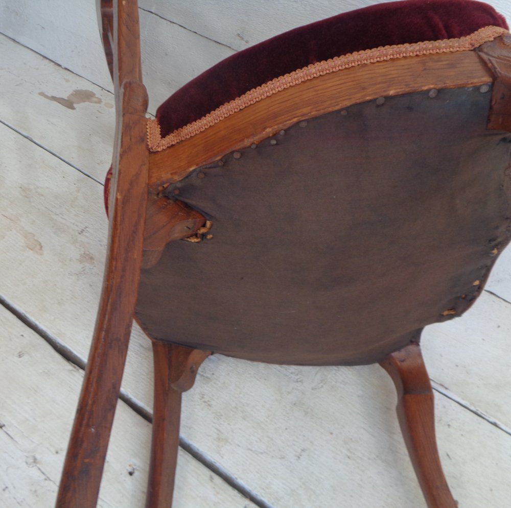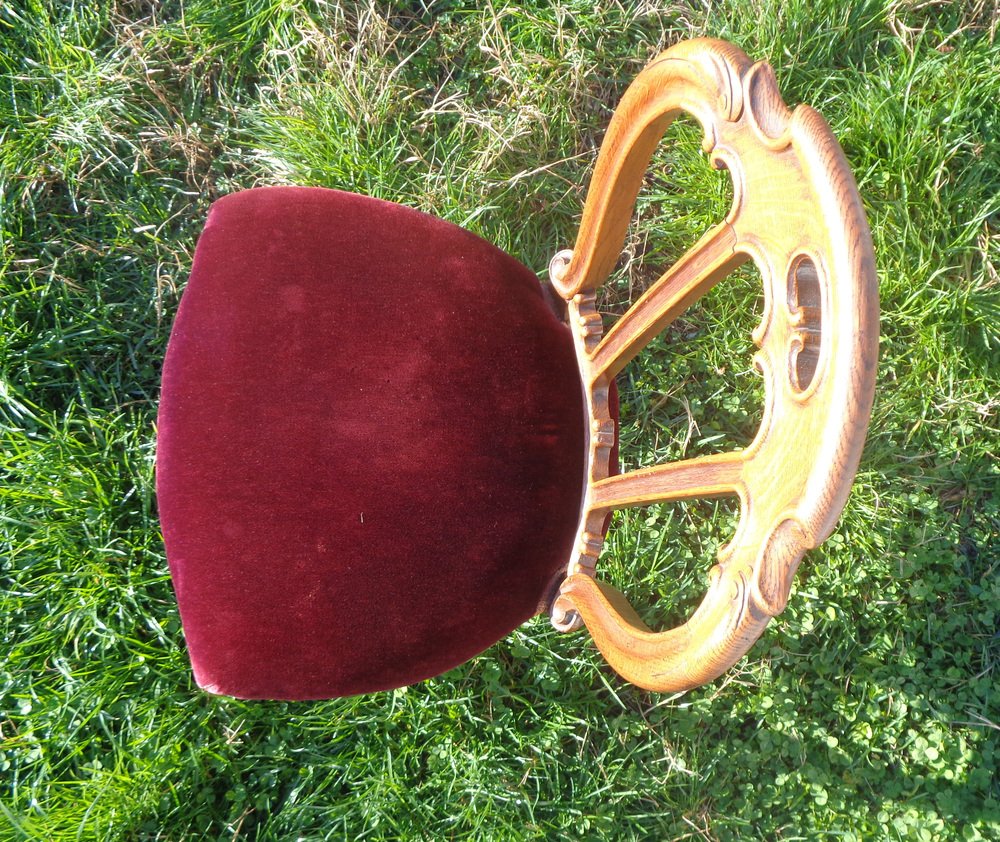 Victorian Chair with Velvet Seat and Brass Wheels, Late 19th Century