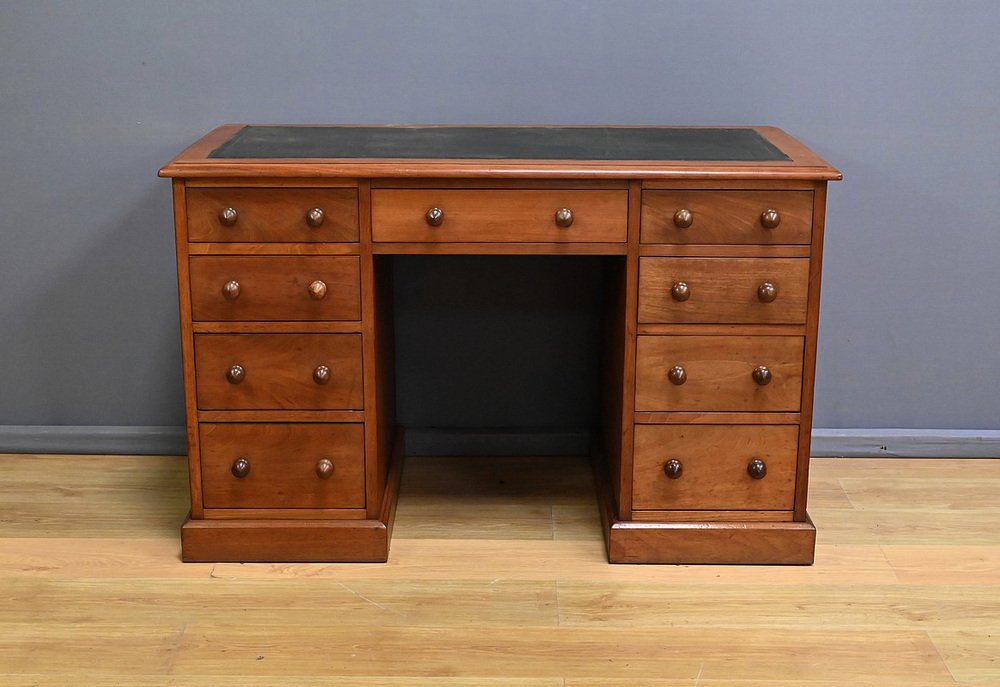 Victorian Mahogany Pedestal Desk, England, Late 19th Century