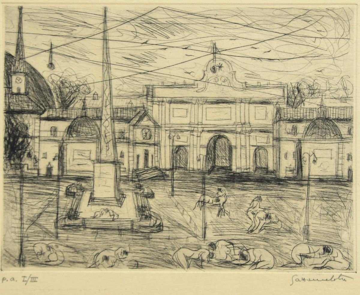 View of Piazza del Popolo, Rome - Etching by N. Gattamelata - Late 20th Century Late 20th Century