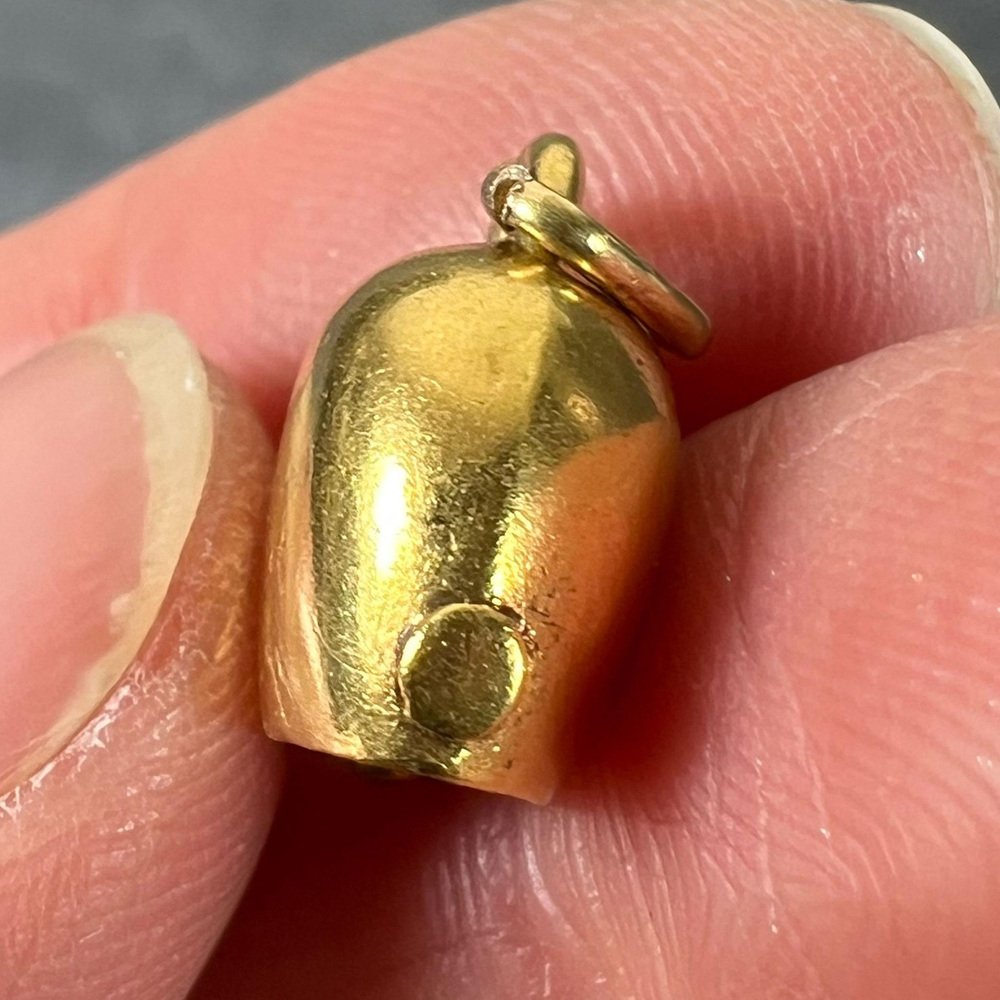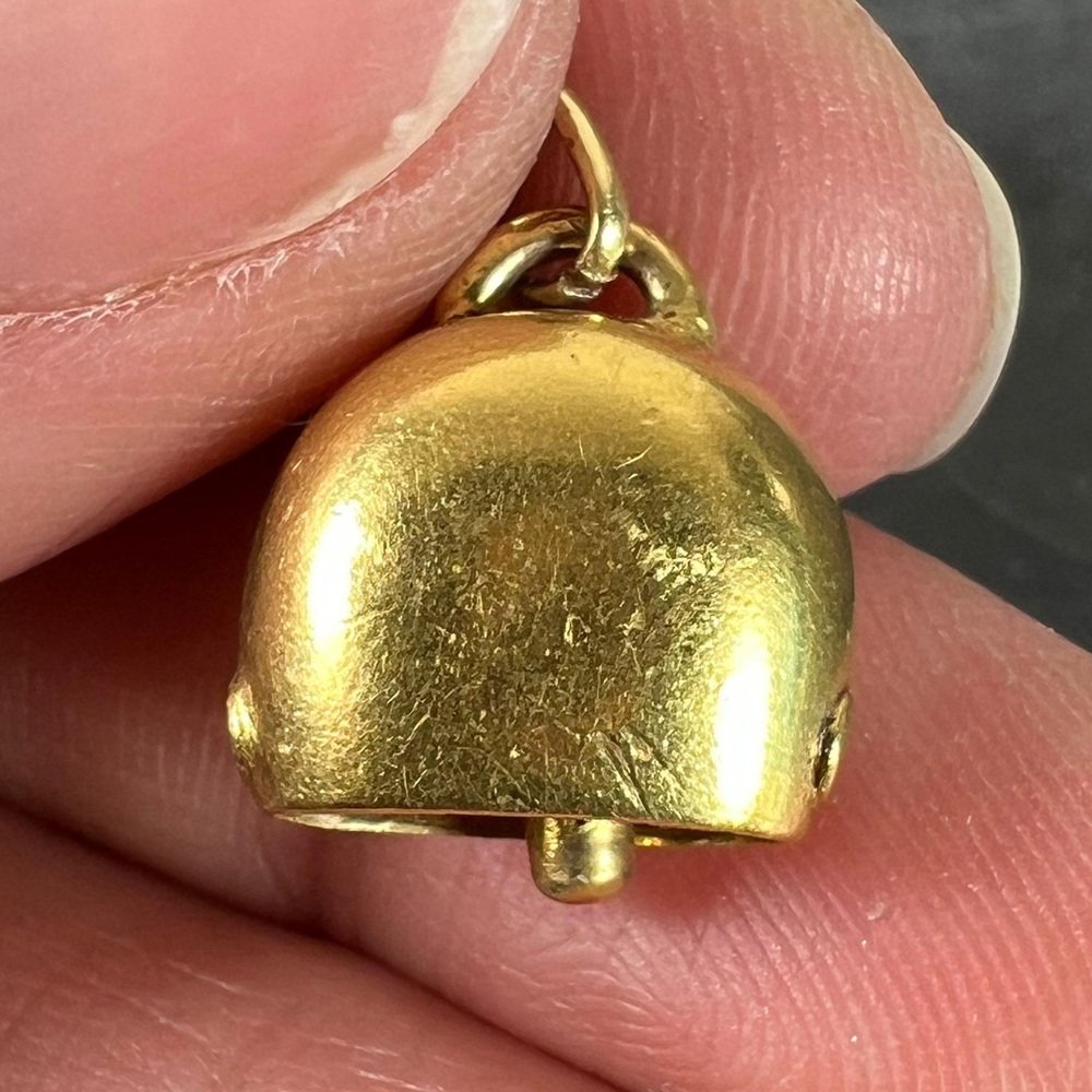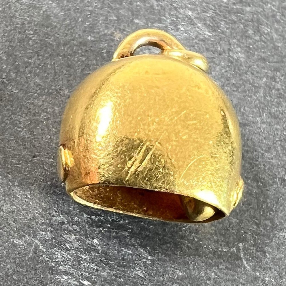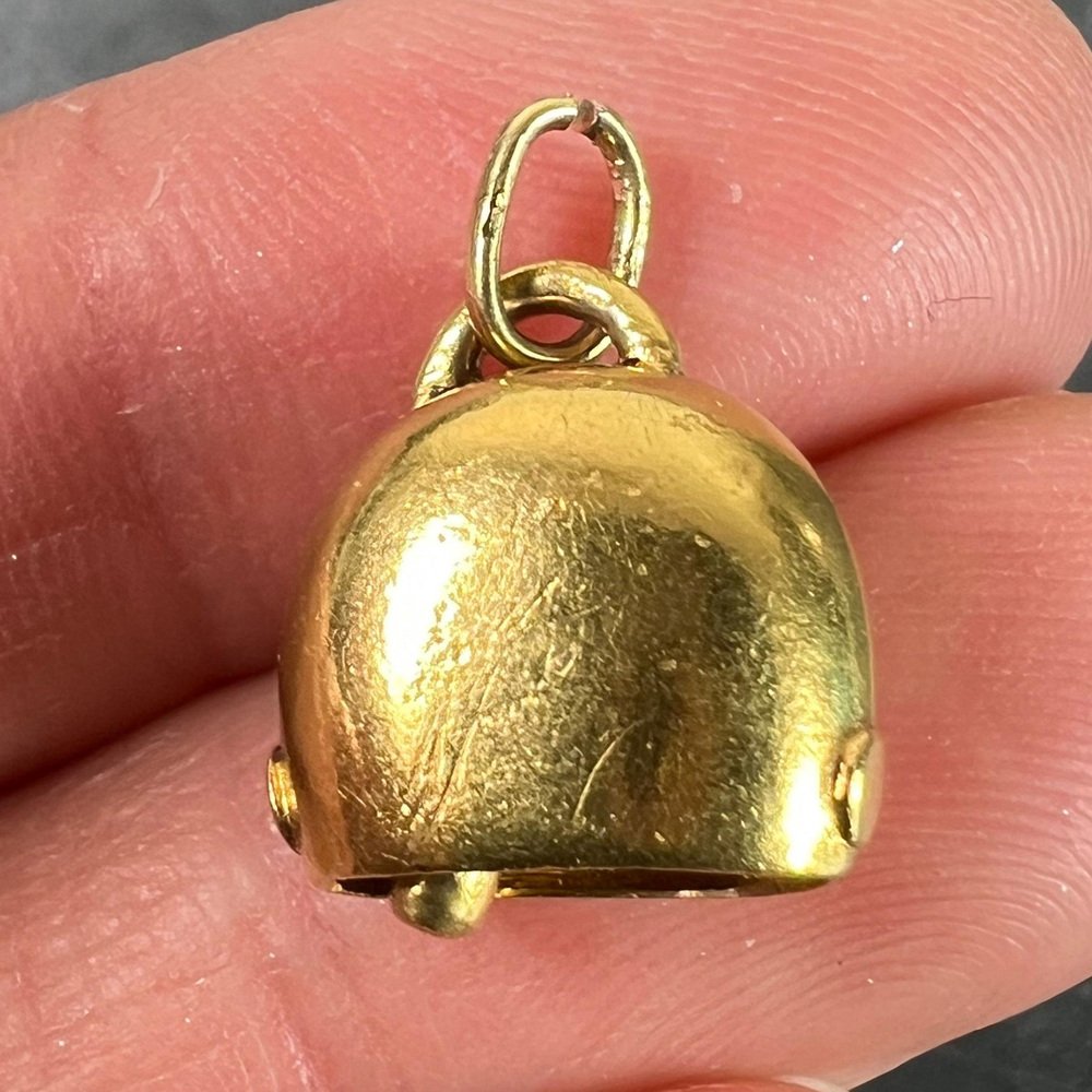 Vintage 18K Yellow Gold Cow Bell Charm Pendant, 1960s