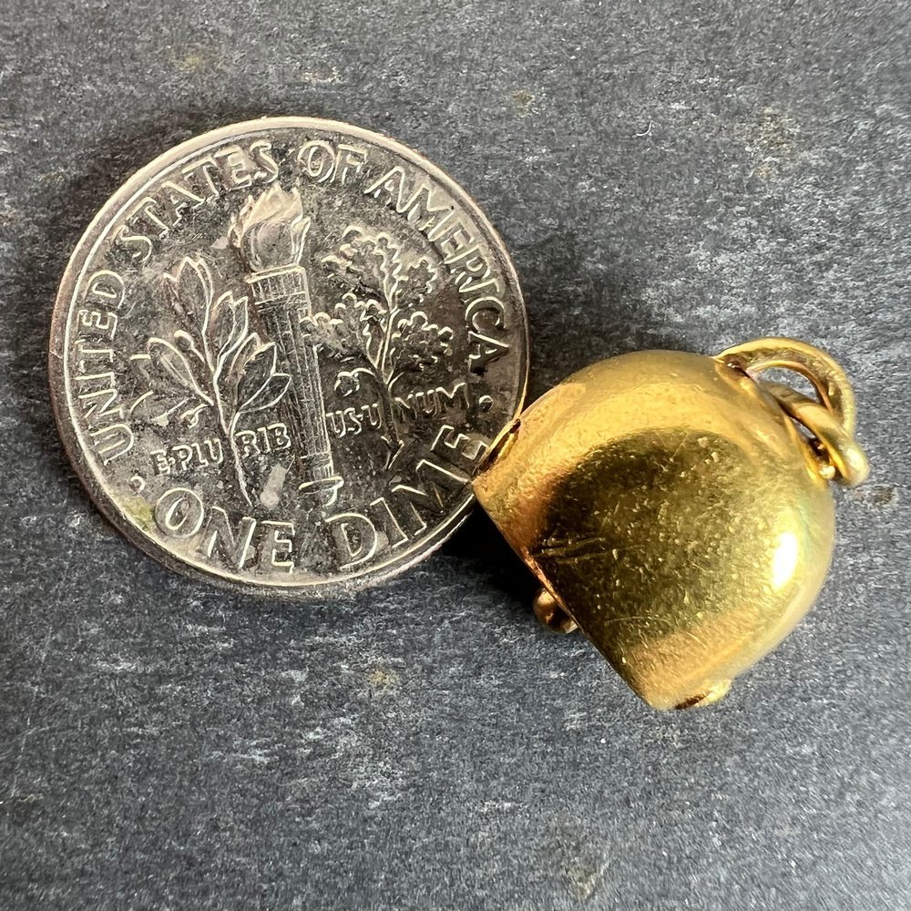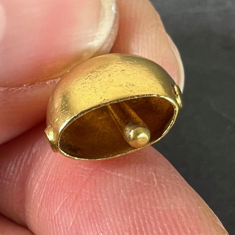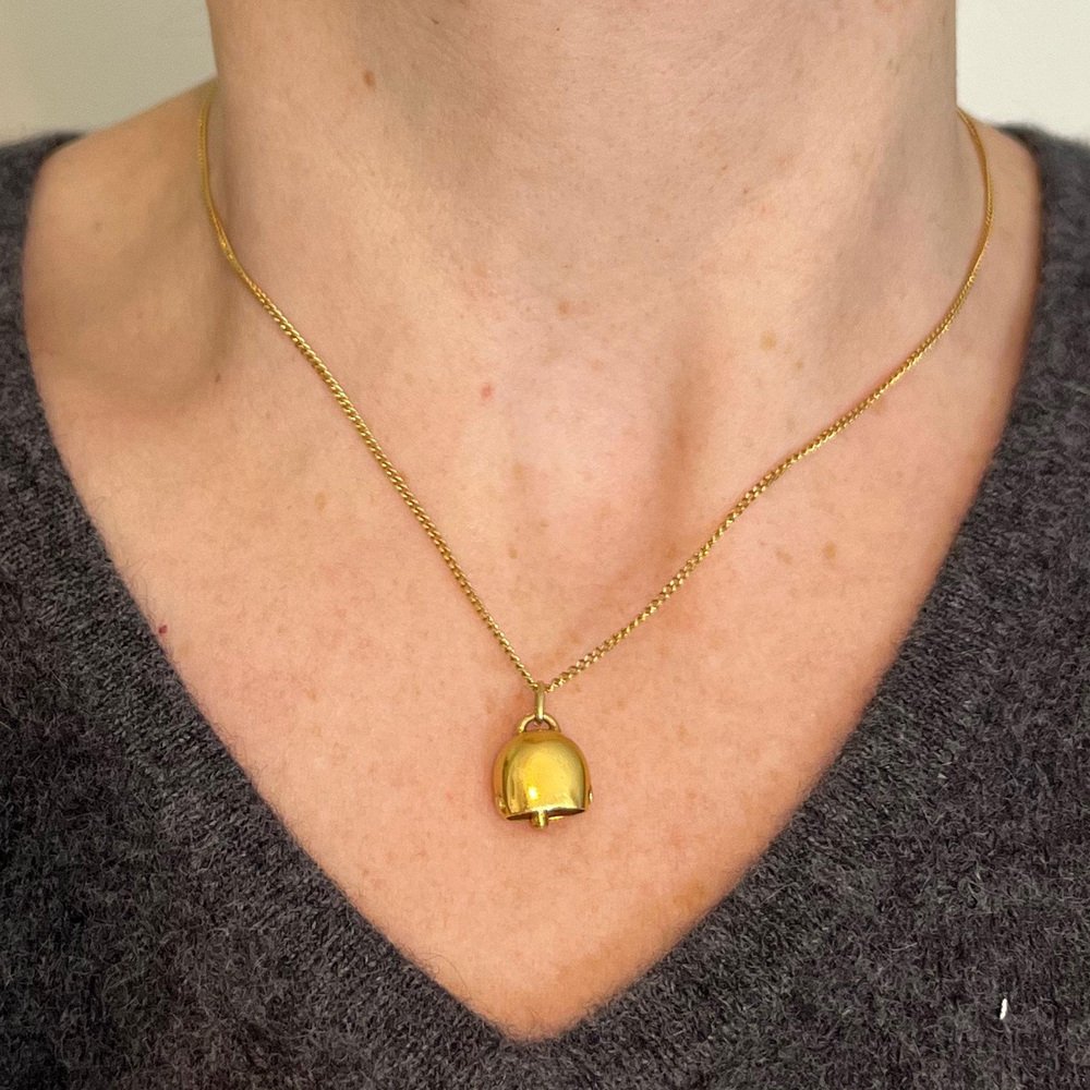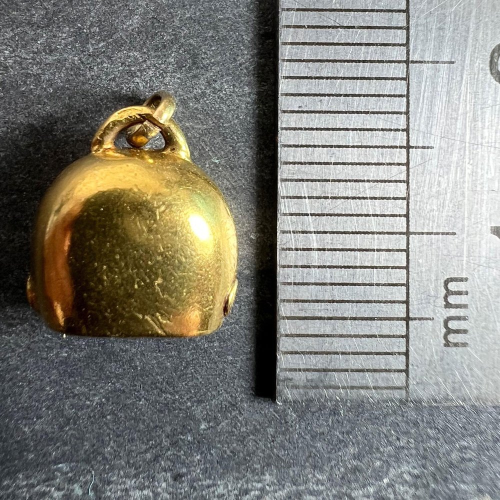 Vintage 18K Yellow Gold Cow Bell Charm Pendant, 1960s