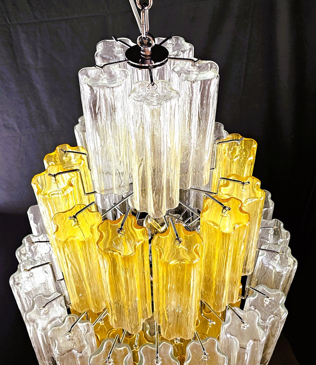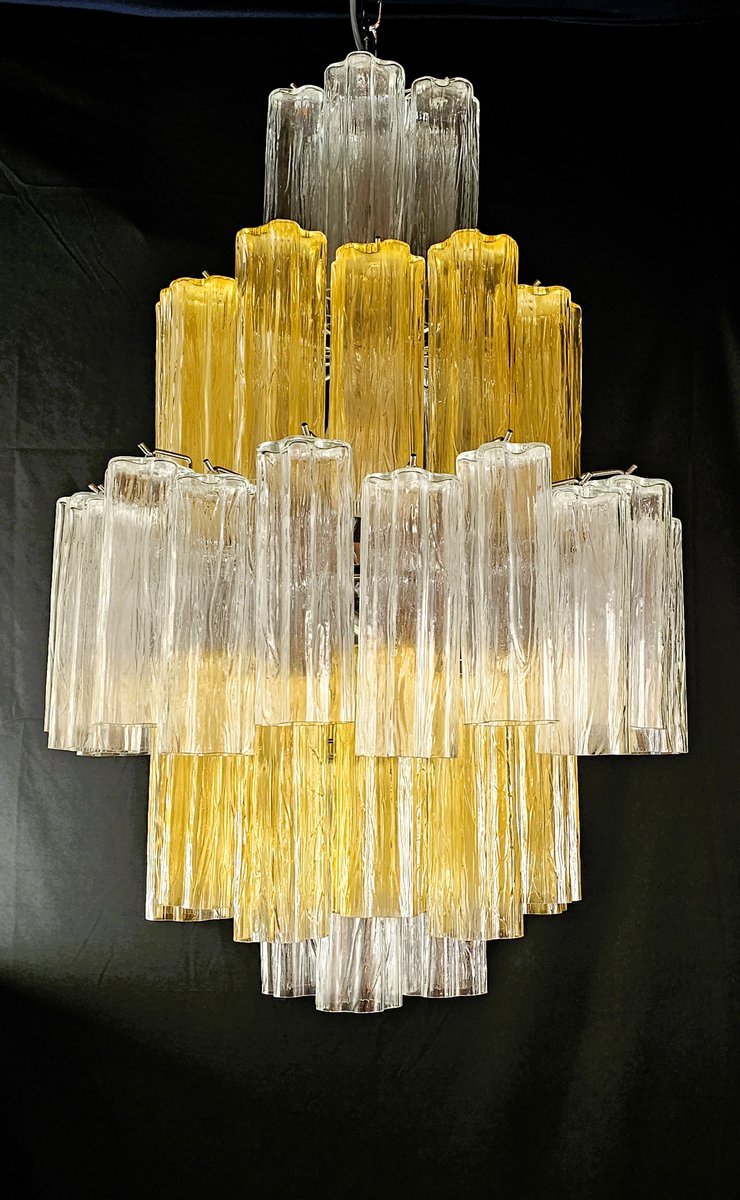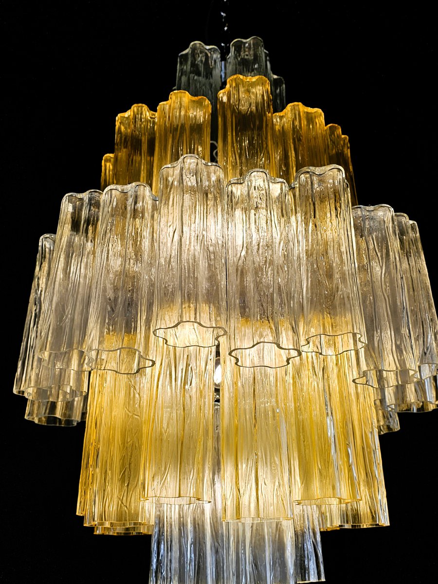 Vintage Amber and Crystal Murano Glass Chandelier, 1980s