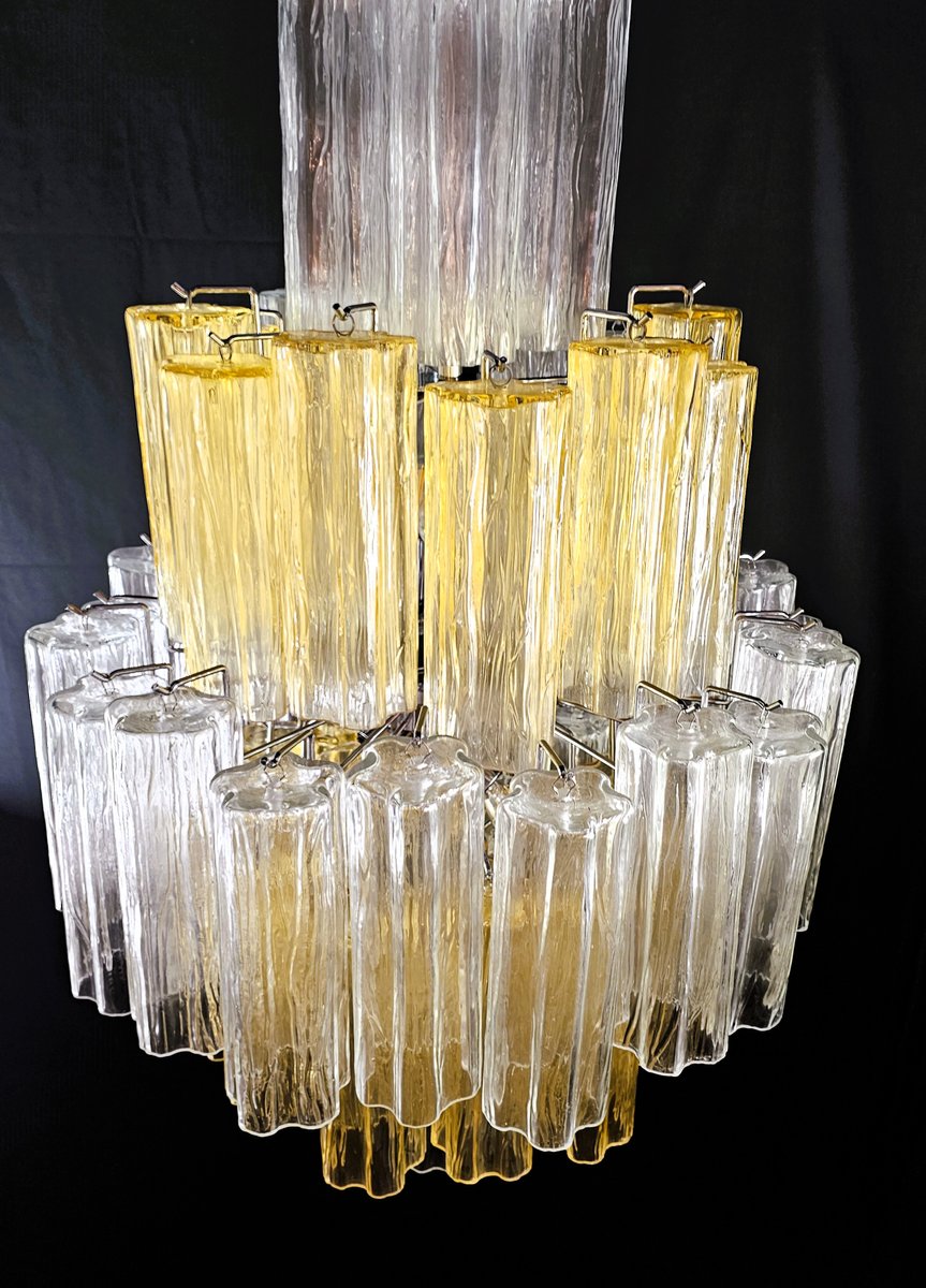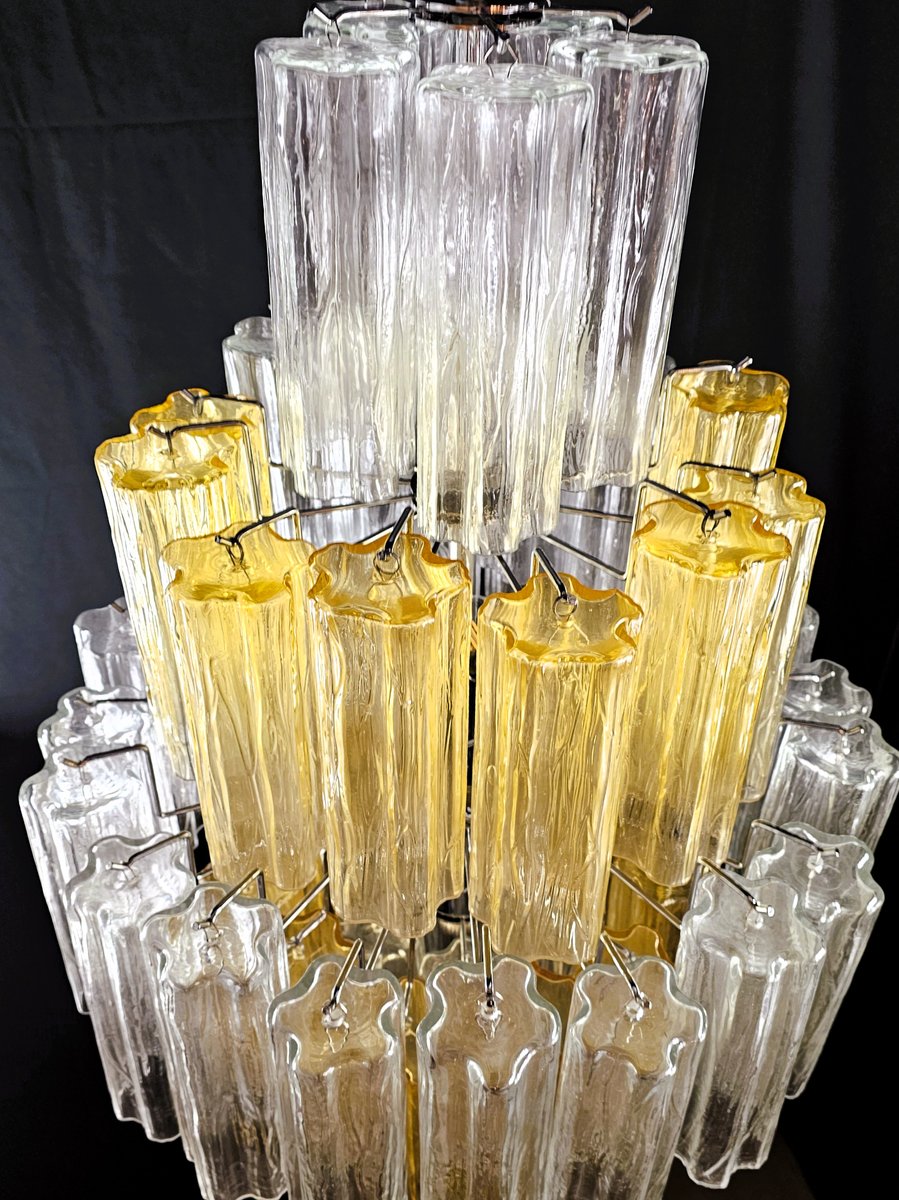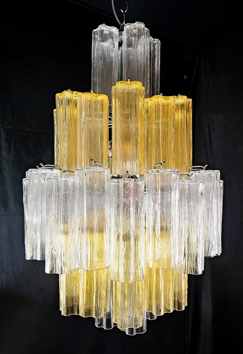 Vintage Amber and Crystal Murano Glass Chandelier, 1980s