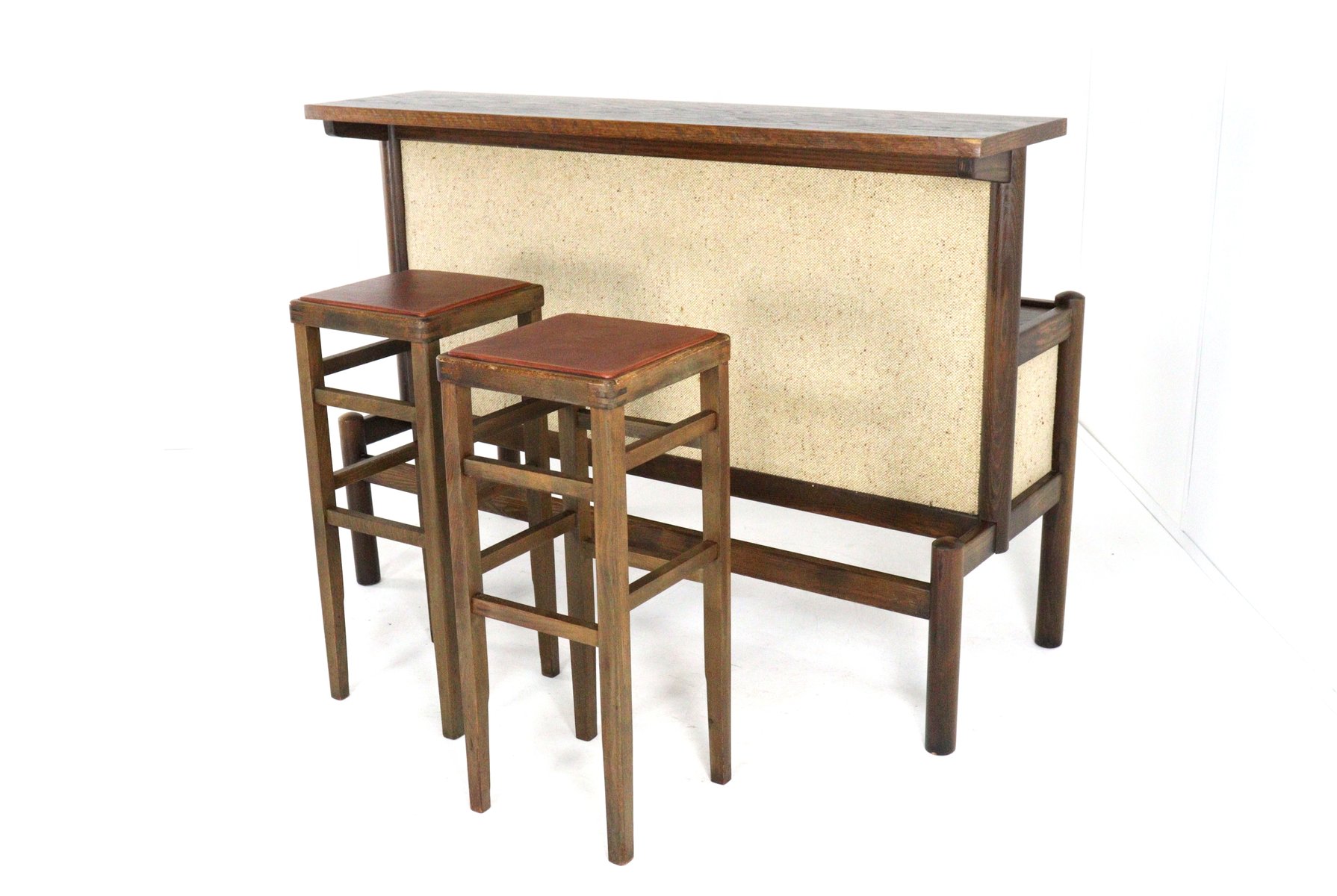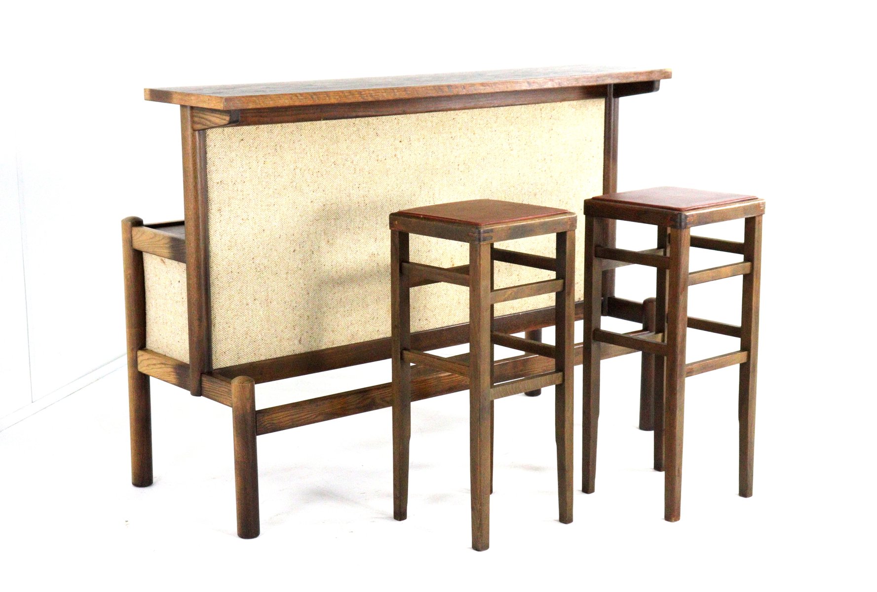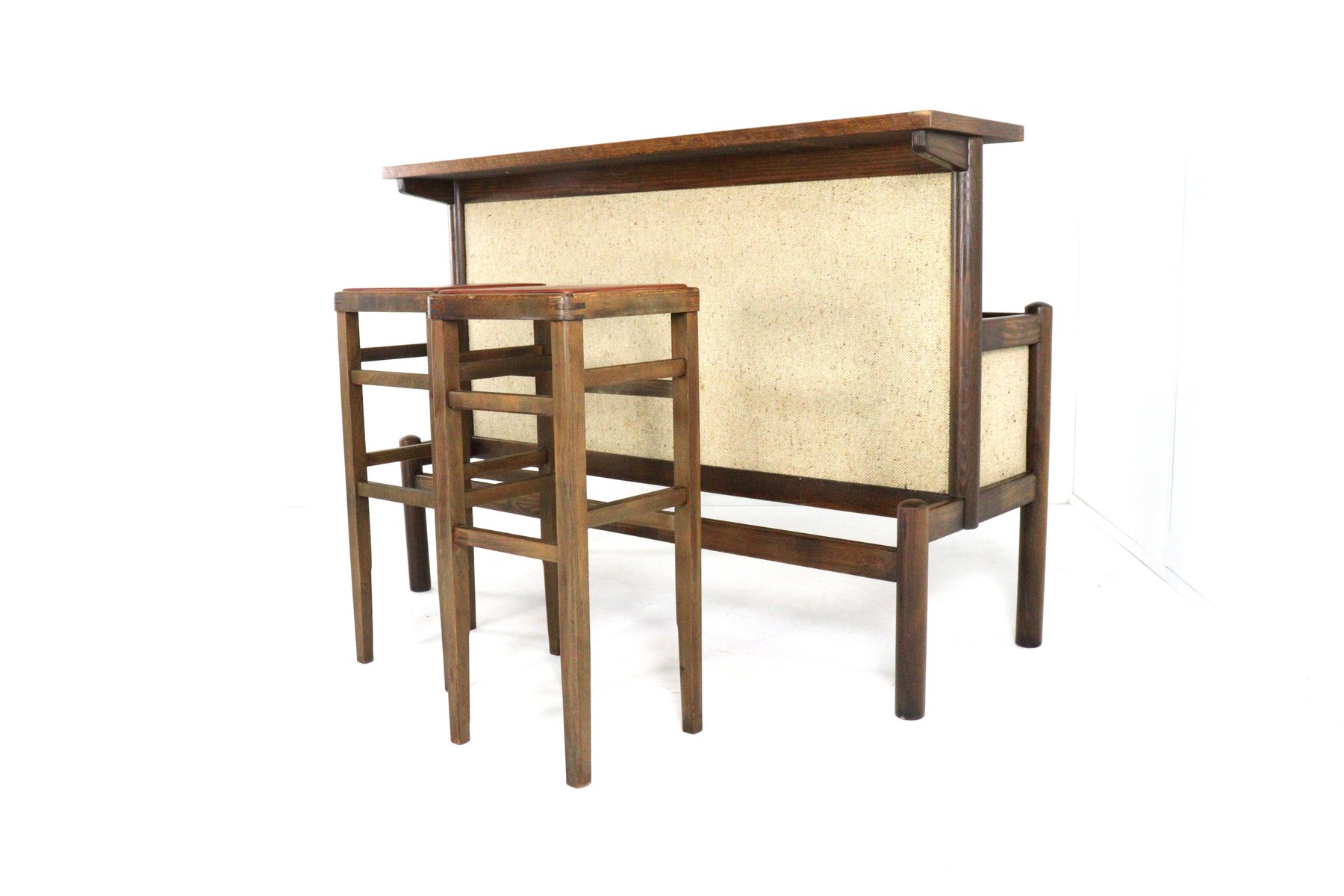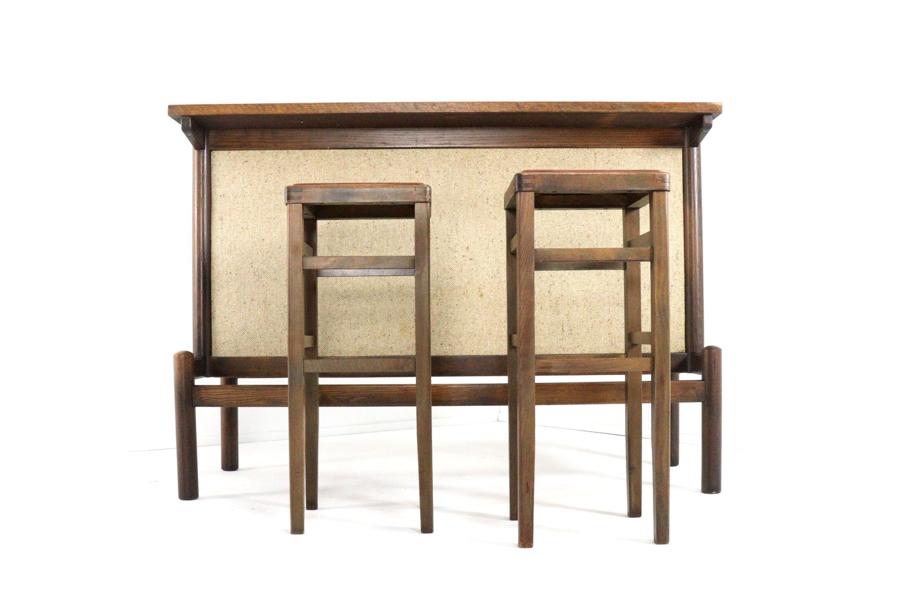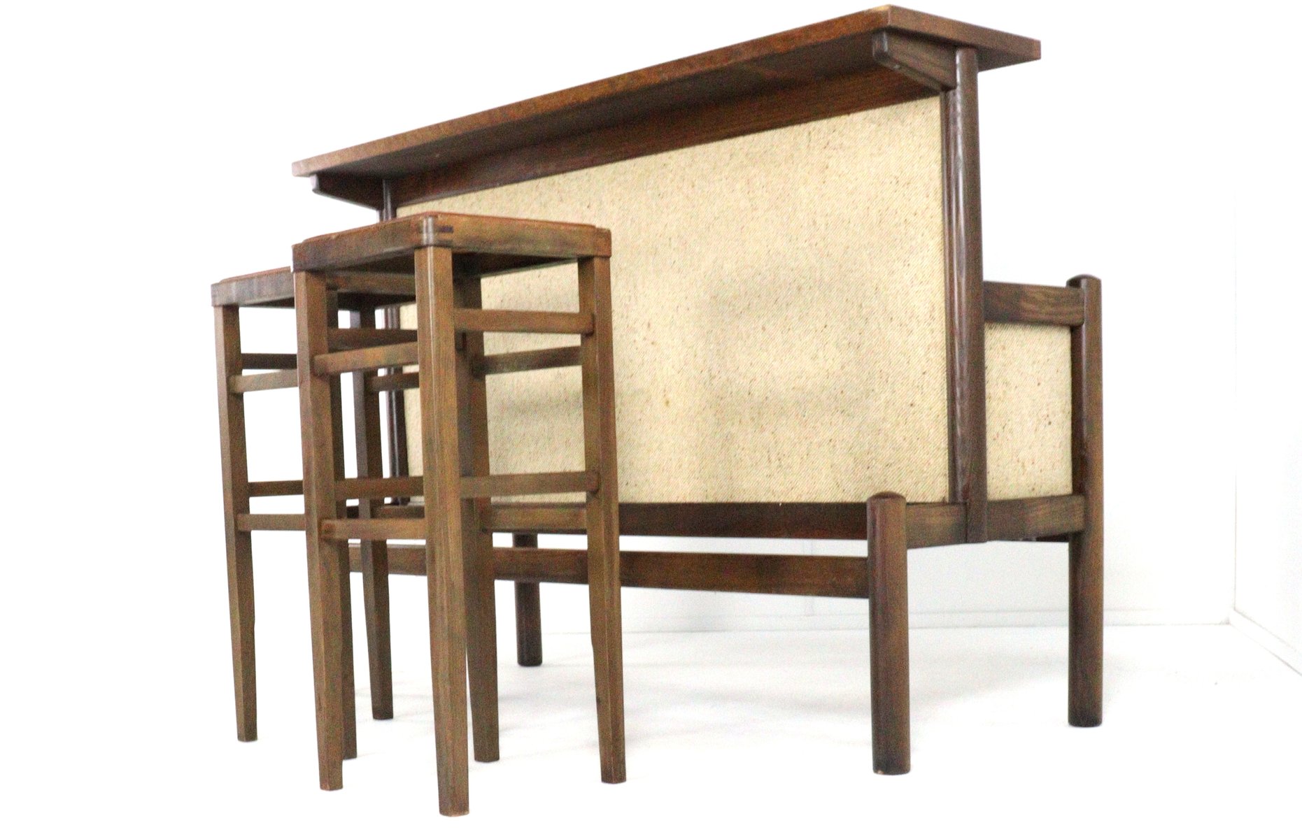 Vintage Bar with Stools, 1970s, Set of 3