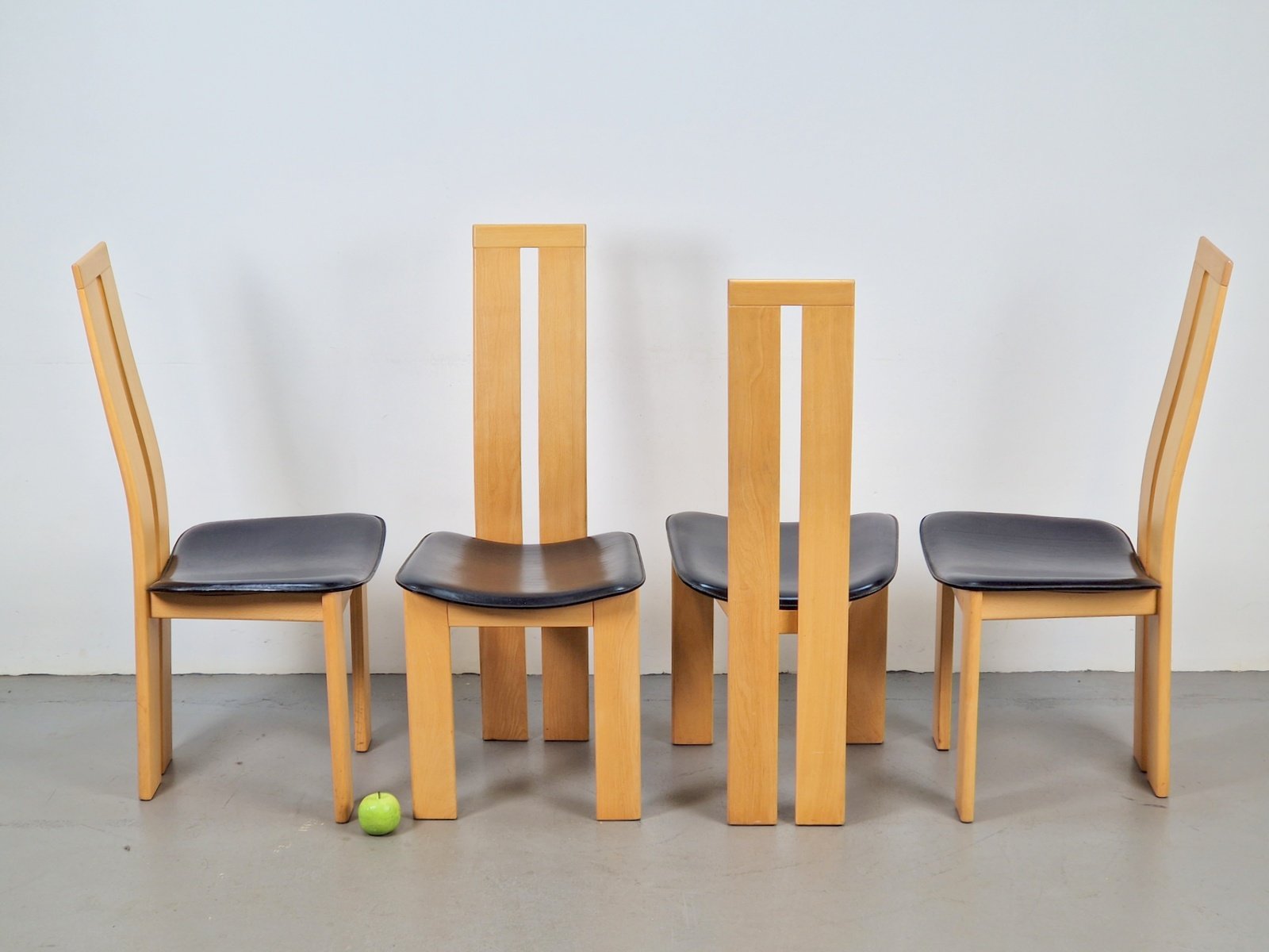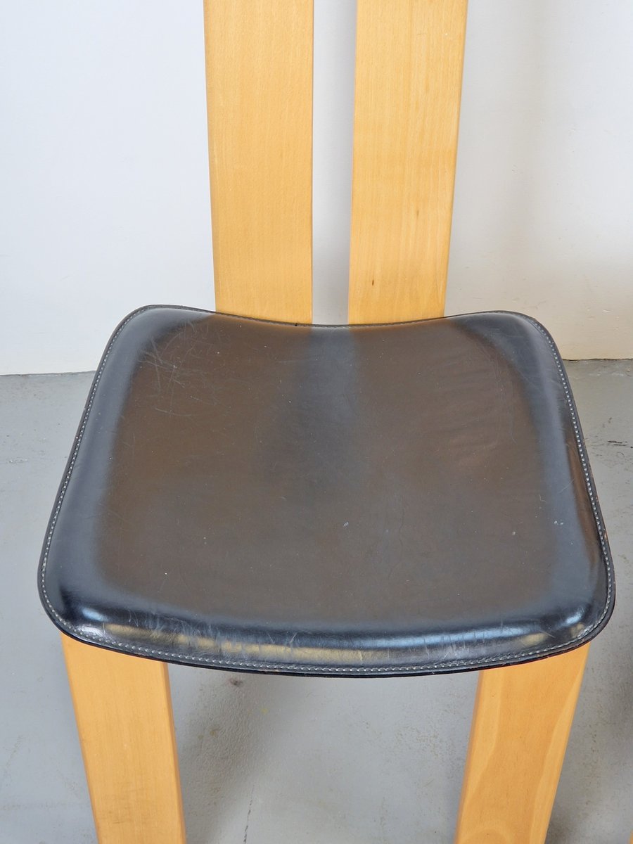 Vintage Beech and Leather Dining Chairs by Pietro Costantini for Ello, 1970s, Set of 4