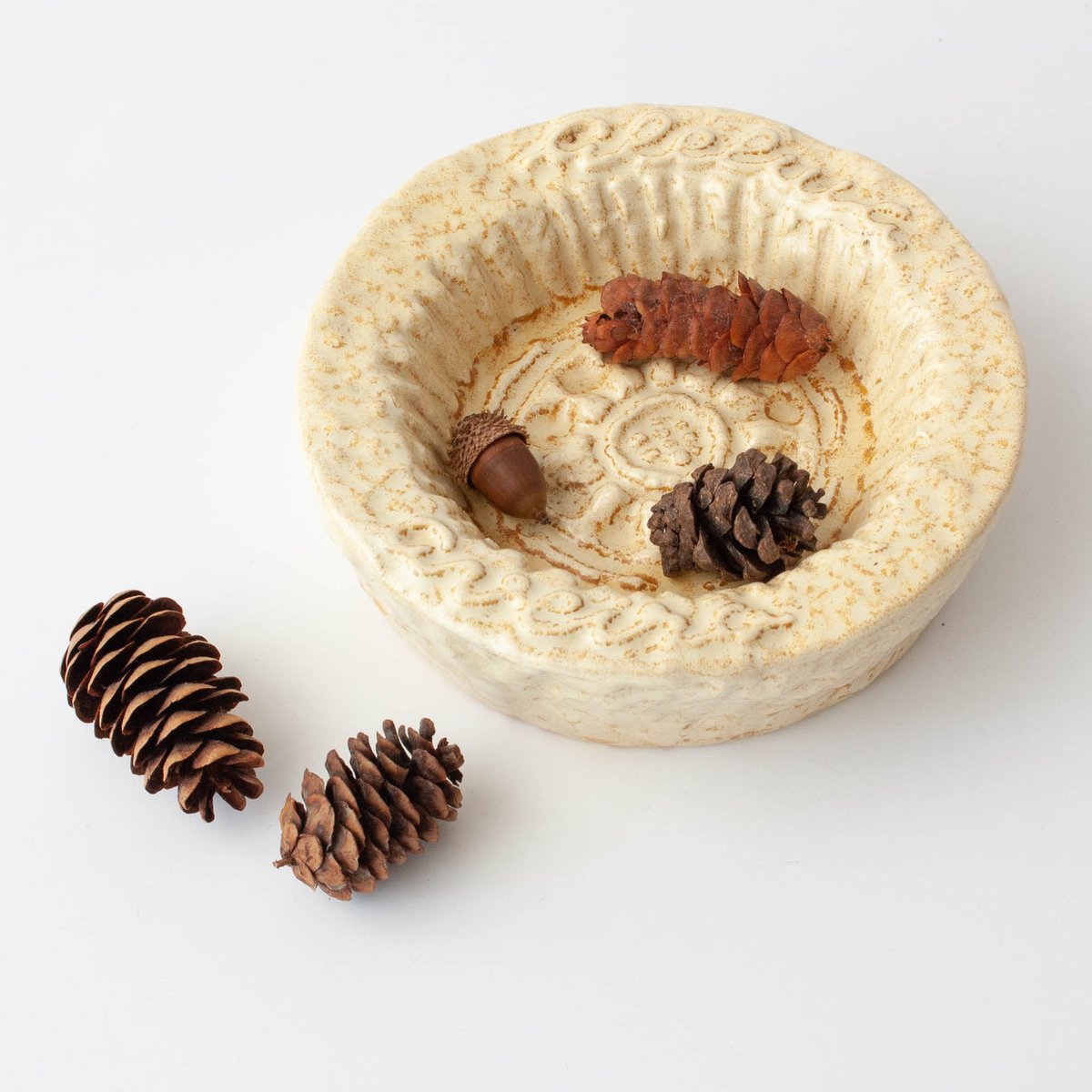 Vintage Beige Textured Ceramic Ashtray from Aleluia, 1970s