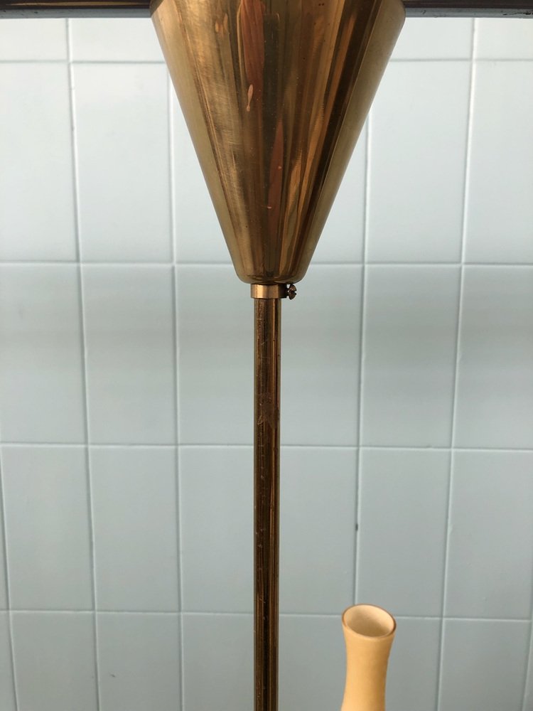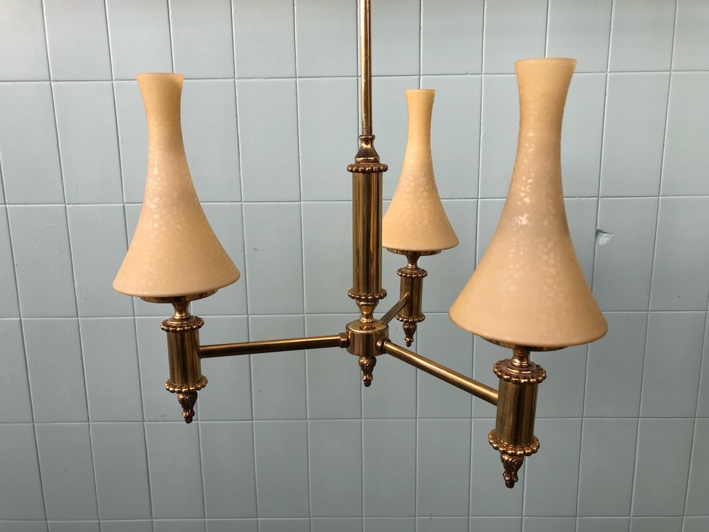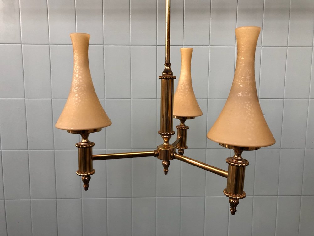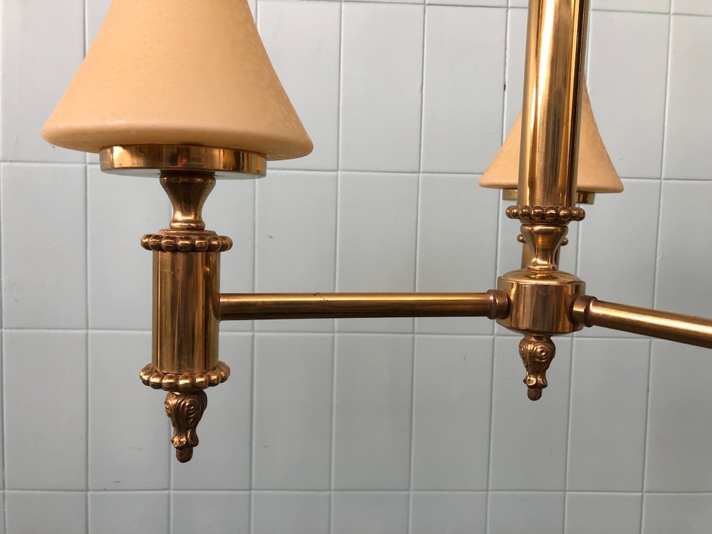 Vintage Chandelier in Brass and Chained Glass Lampshade, 1950s