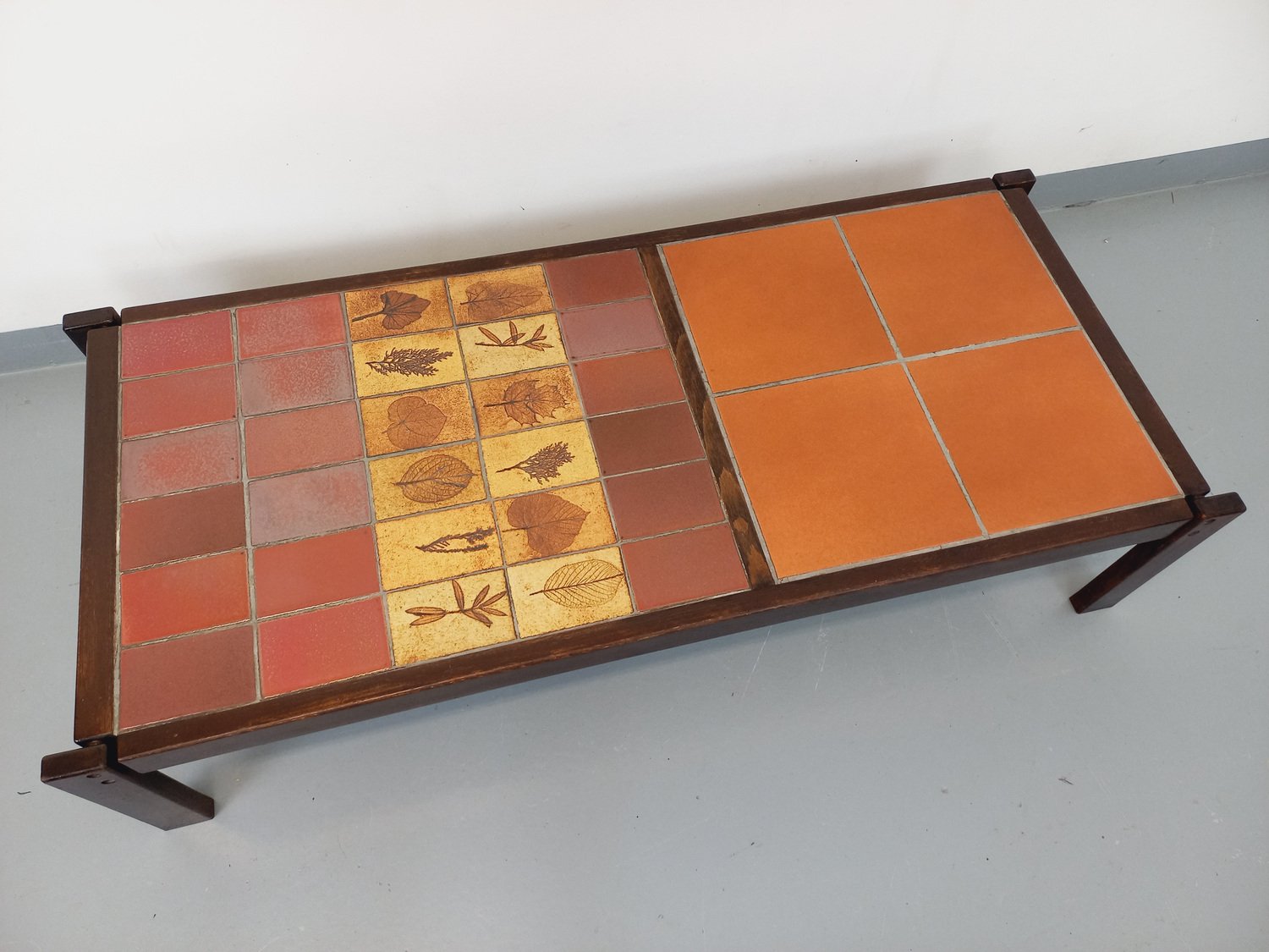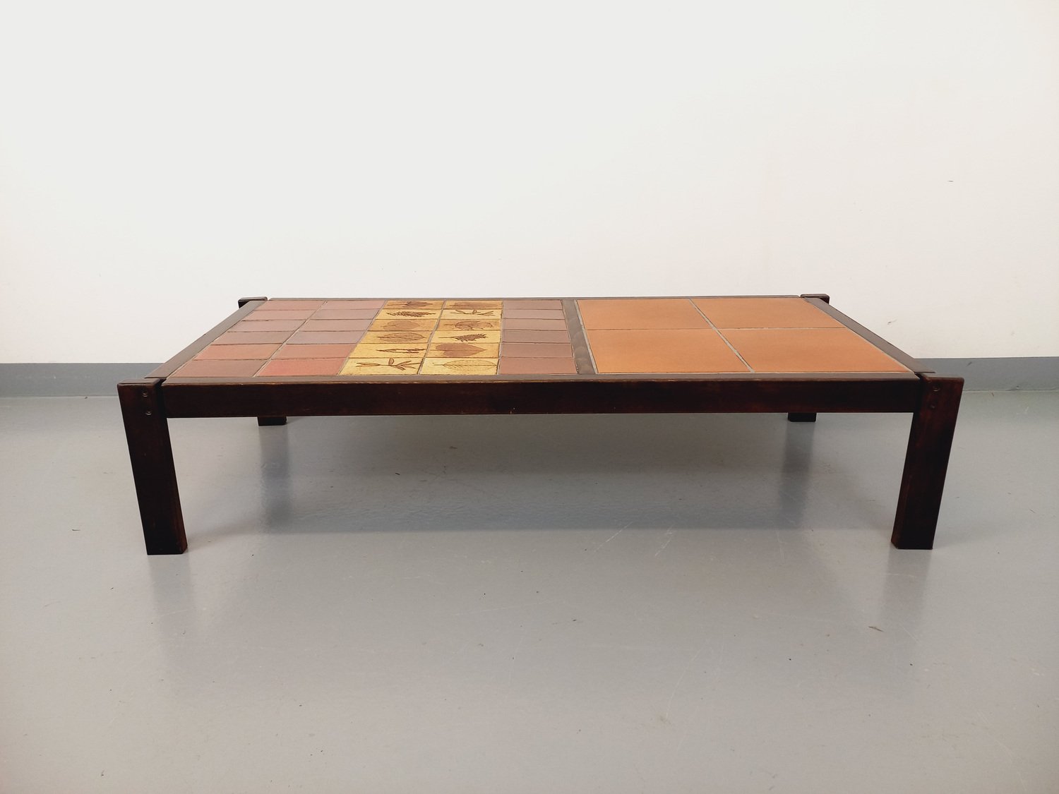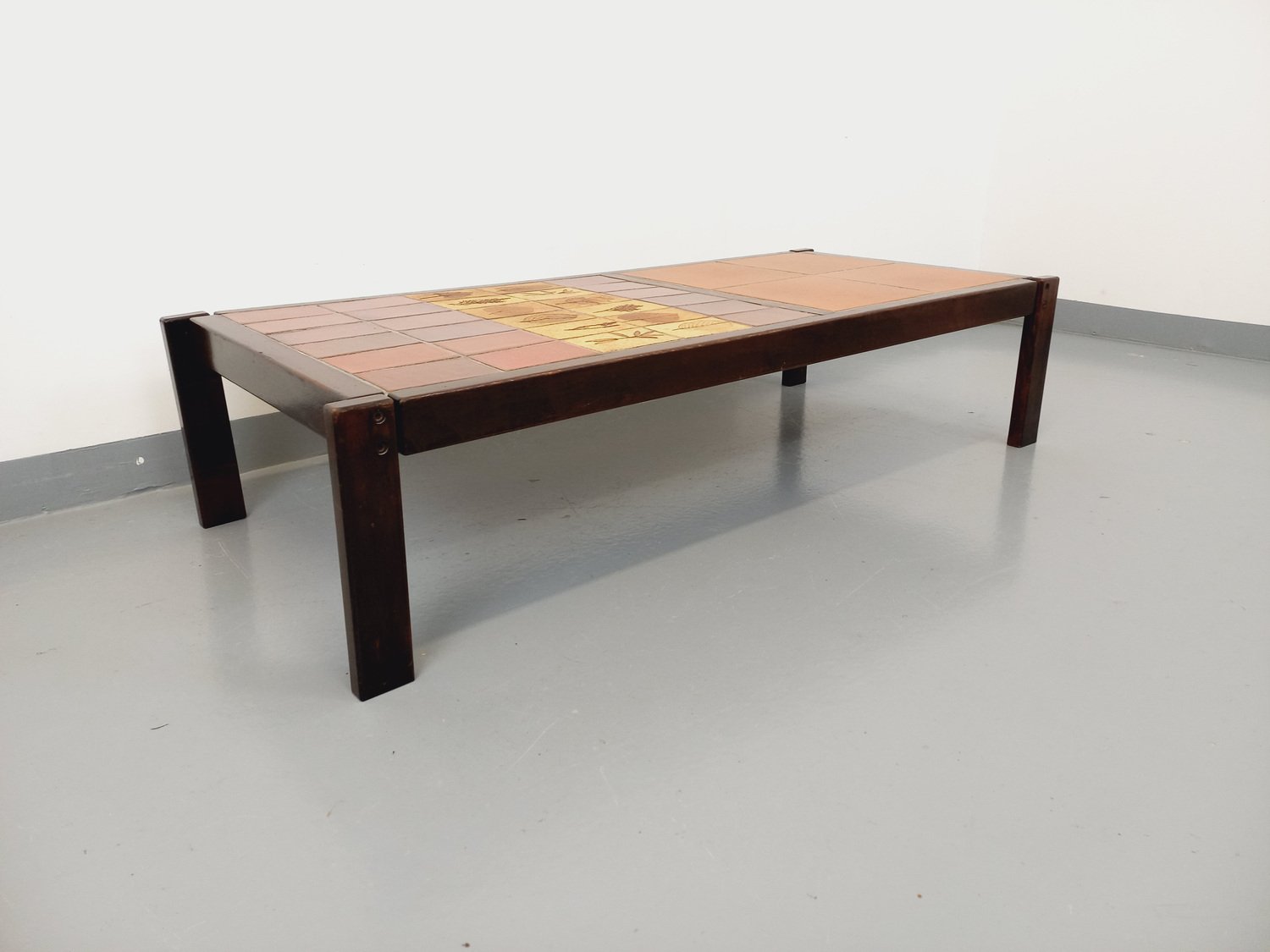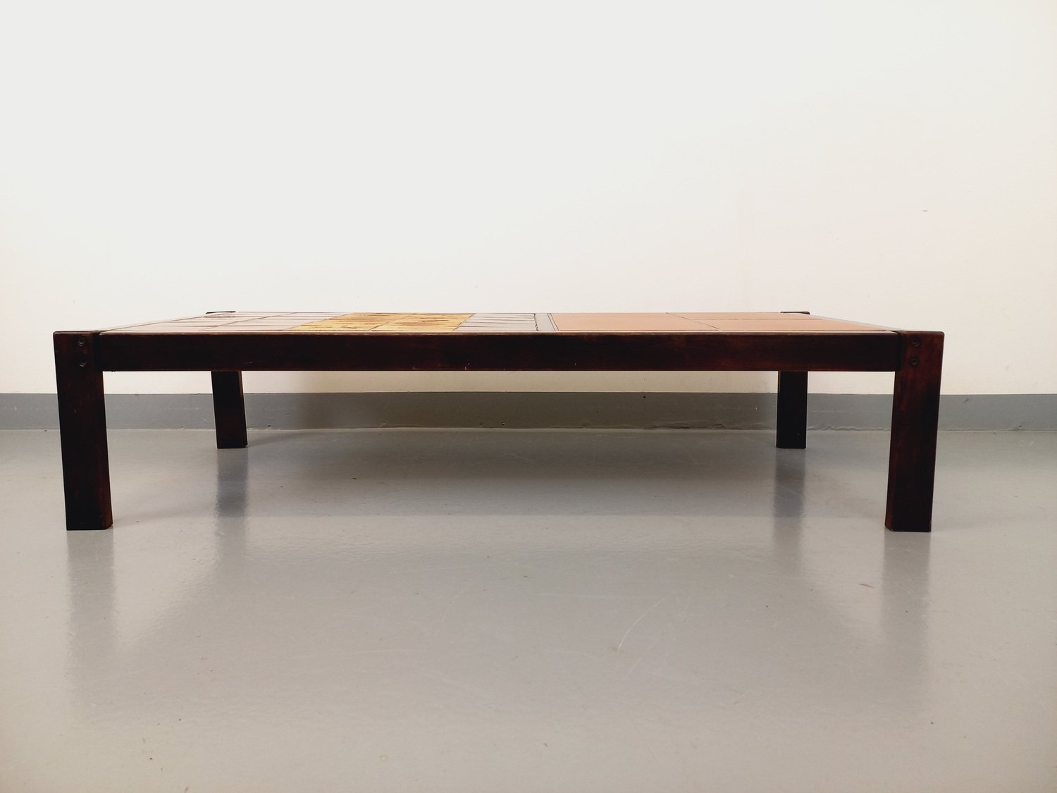 Vintage Coffee Table in Dark Wood and Ceramic from Vallauris, 1960s