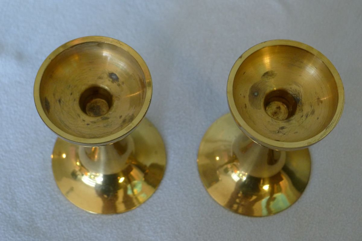 Vintage Danish Brass Trumpet-Shaped Candleholders, Set of 2