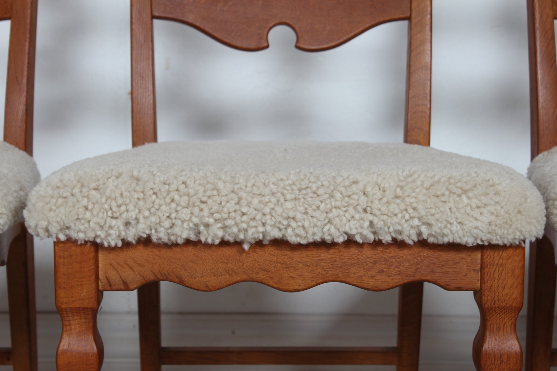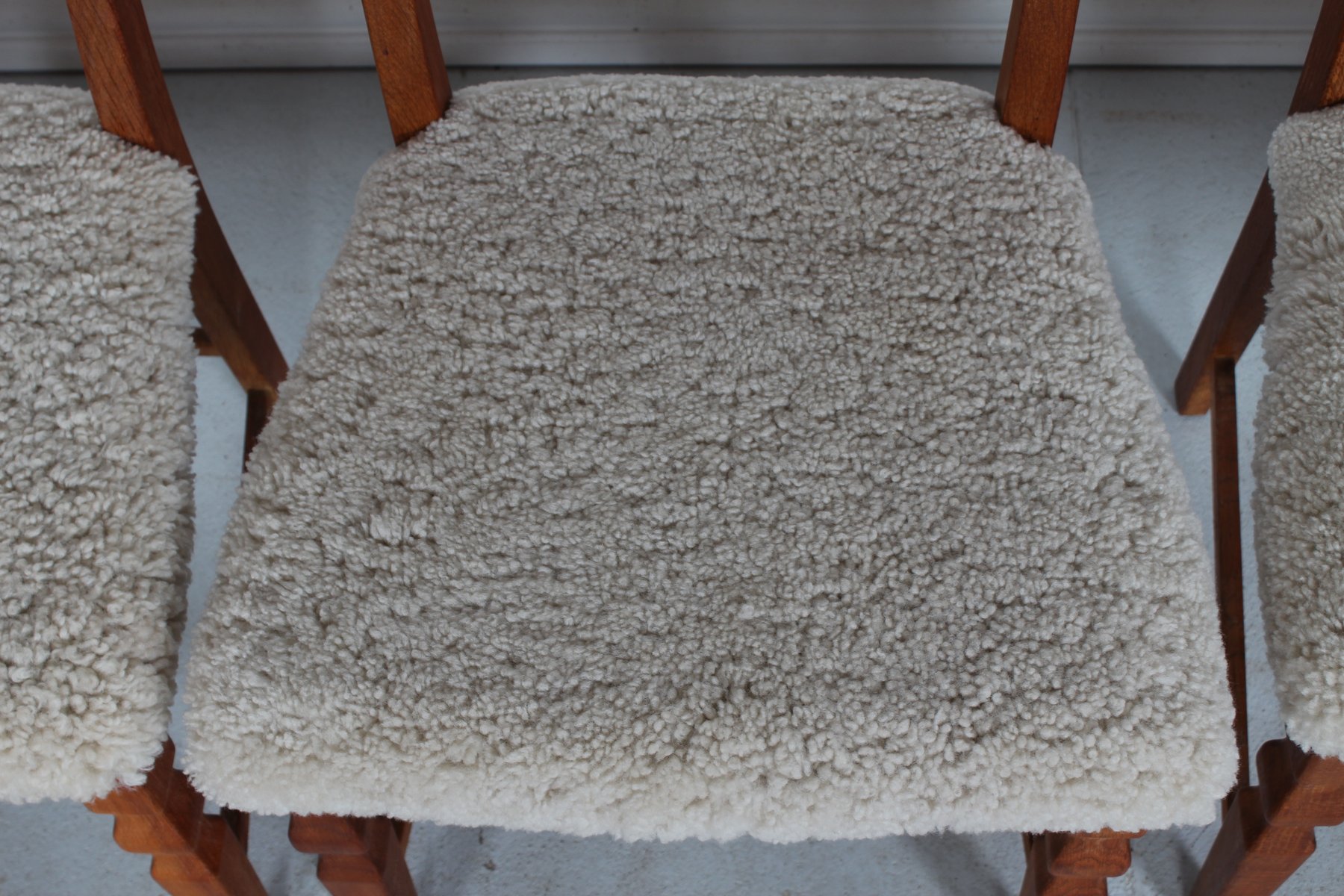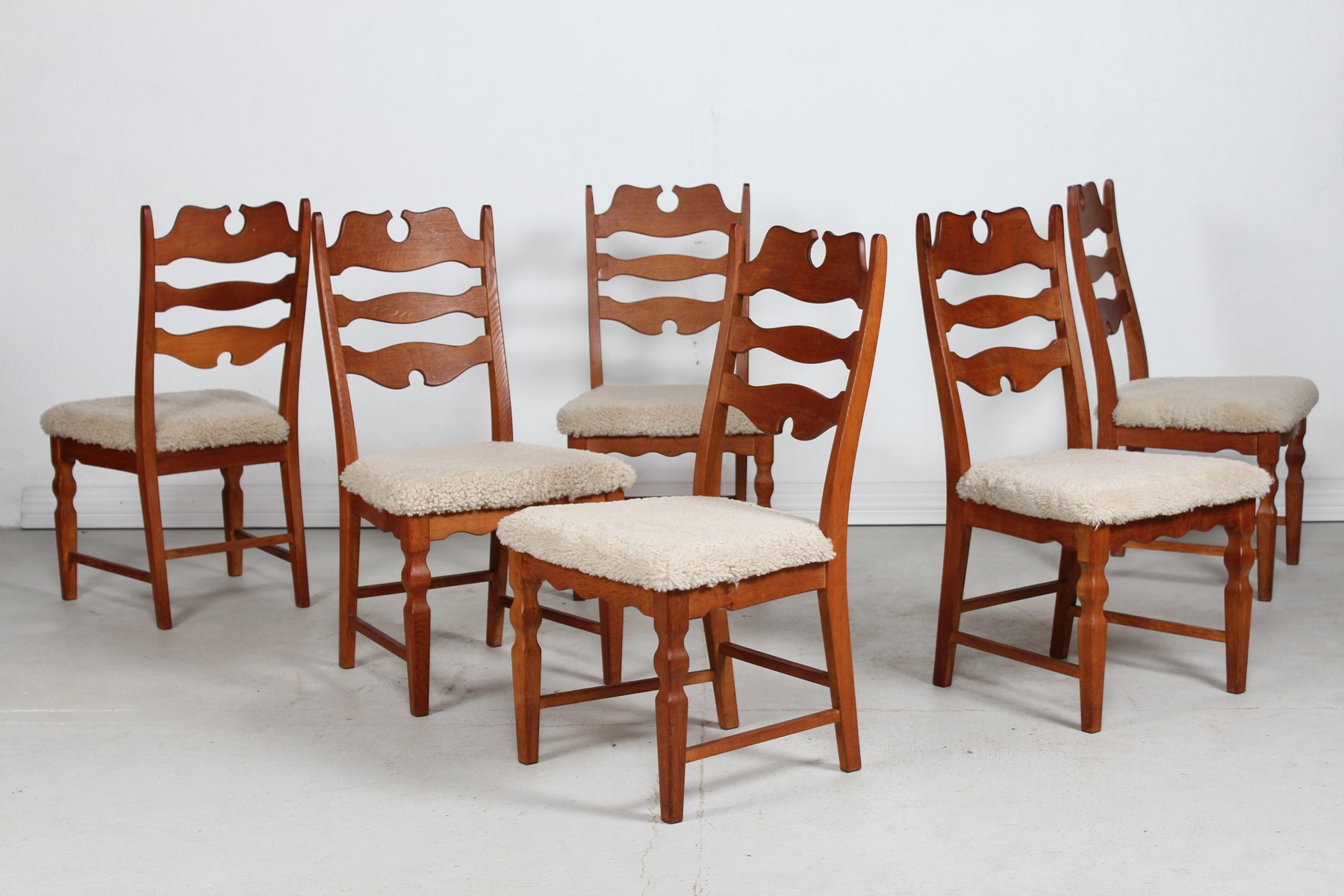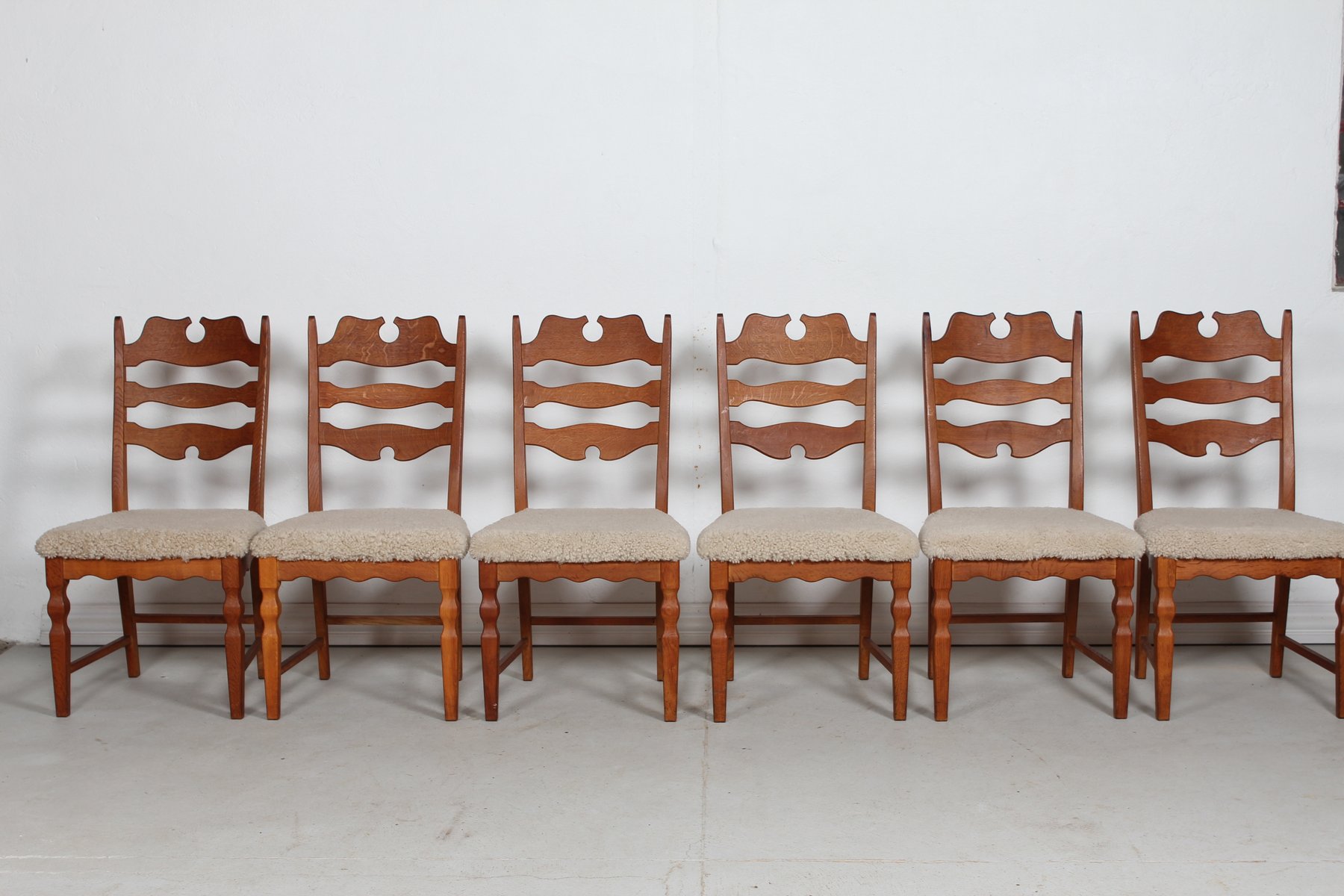 Vintage Danish Chairs in Oak with New Sheepskin by Henning Kjærnulf, 1970s, Set of 6