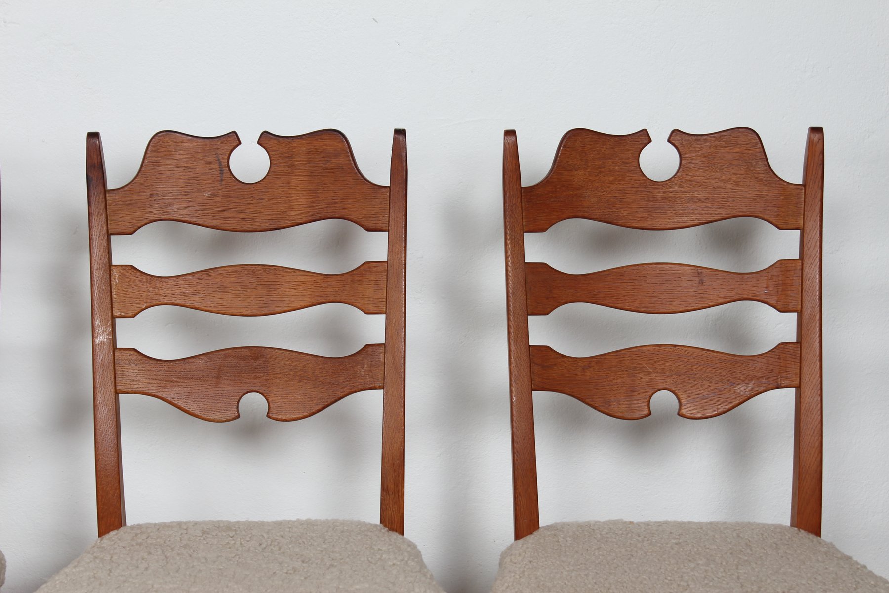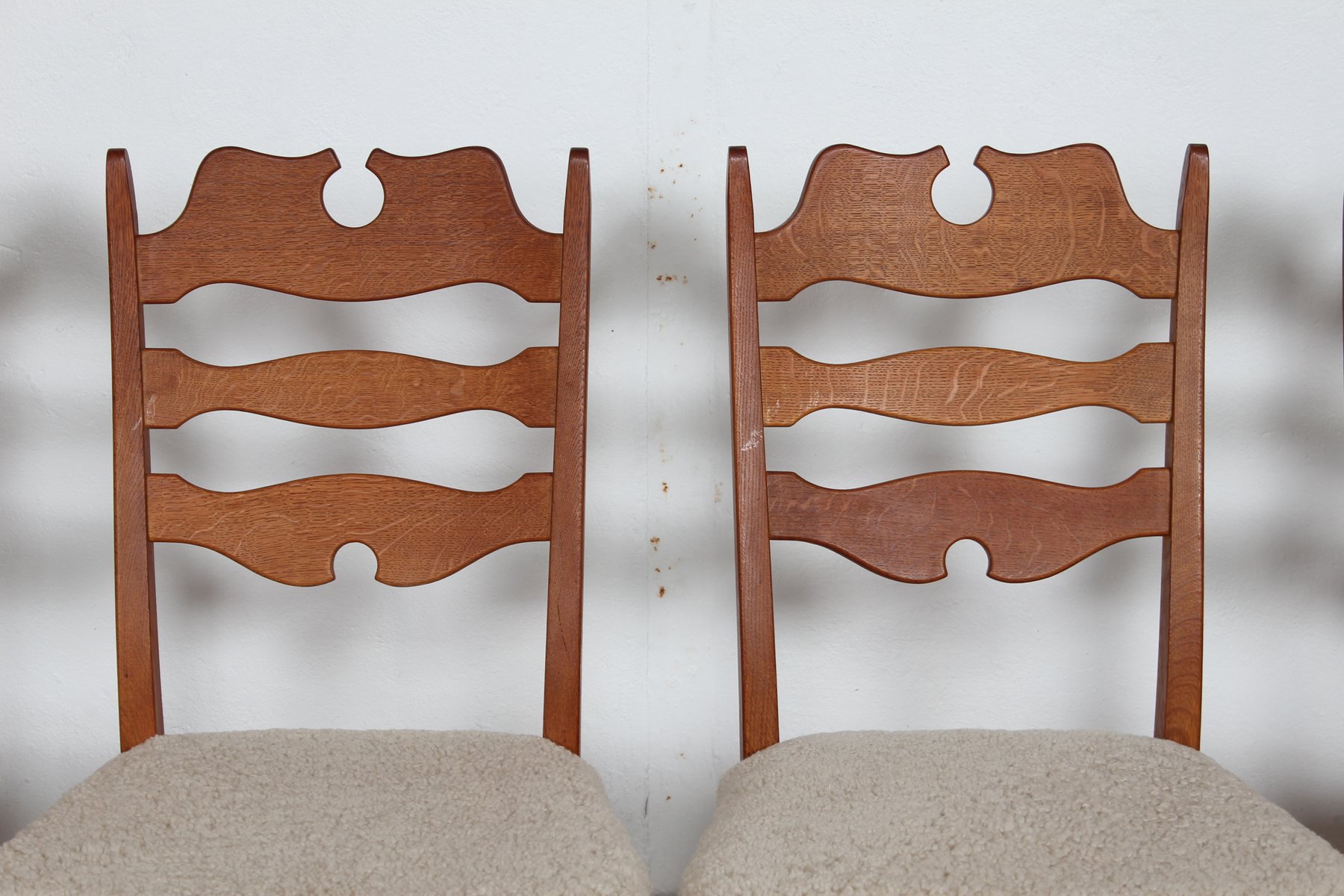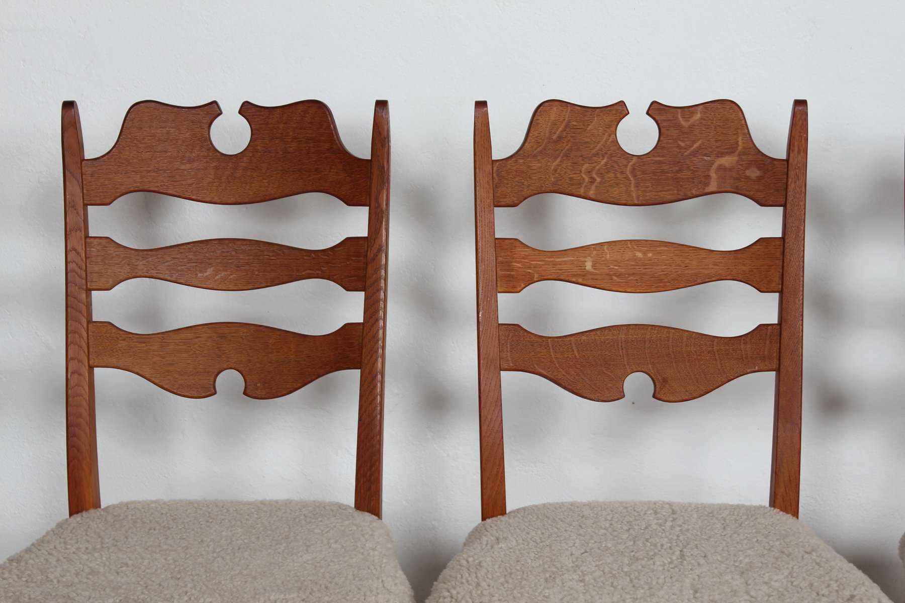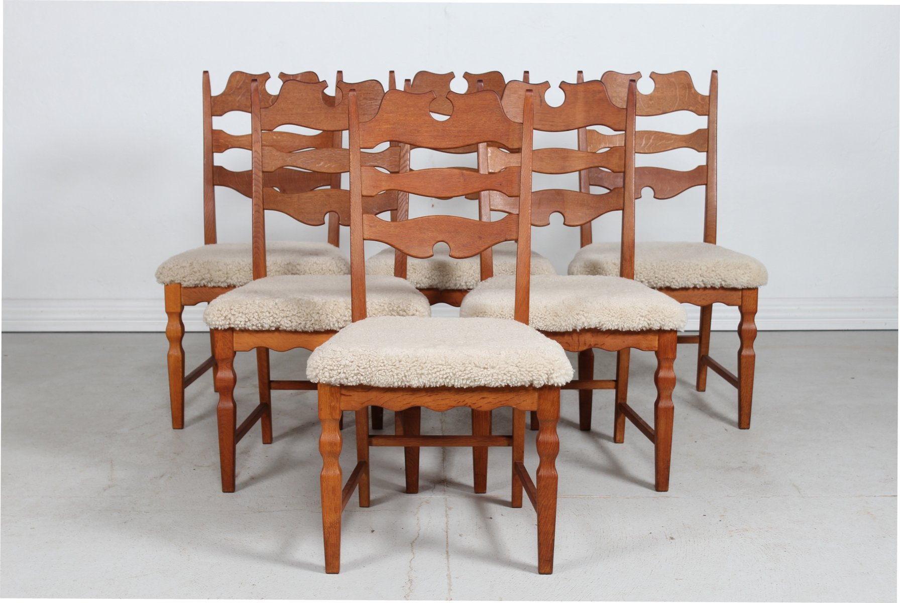 Vintage Danish Chairs in Oak with New Sheepskin by Henning Kjærnulf, 1970s, Set of 6