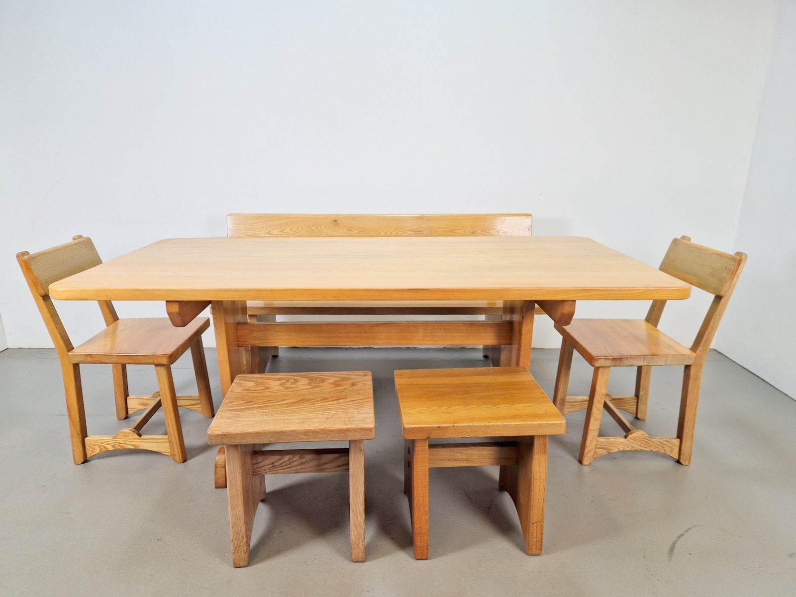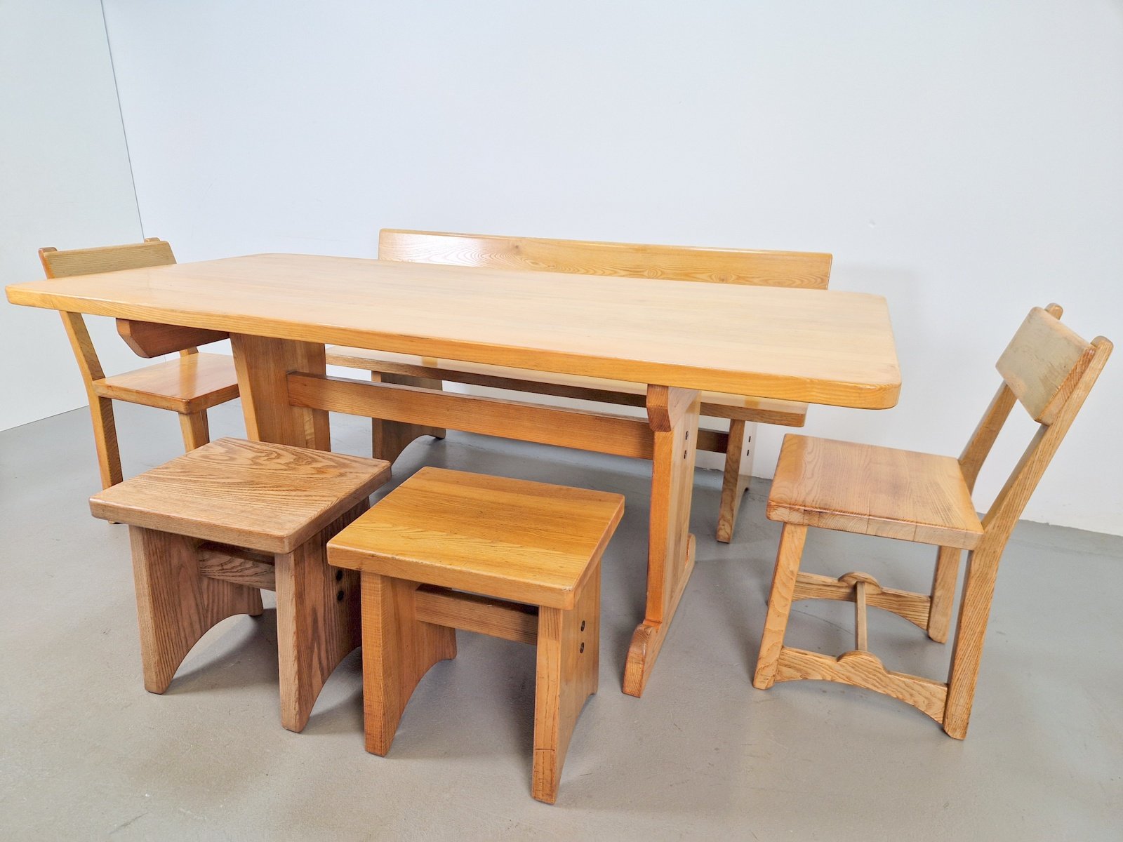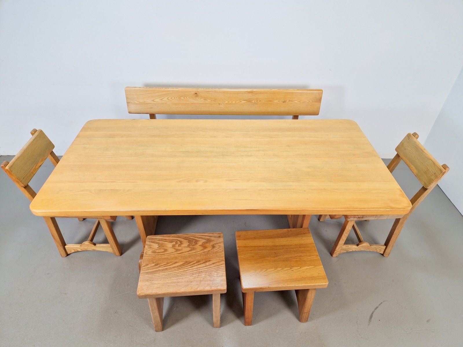 Vintage Danish Dining Room Set in Elm Table, 1960s, Set of 6