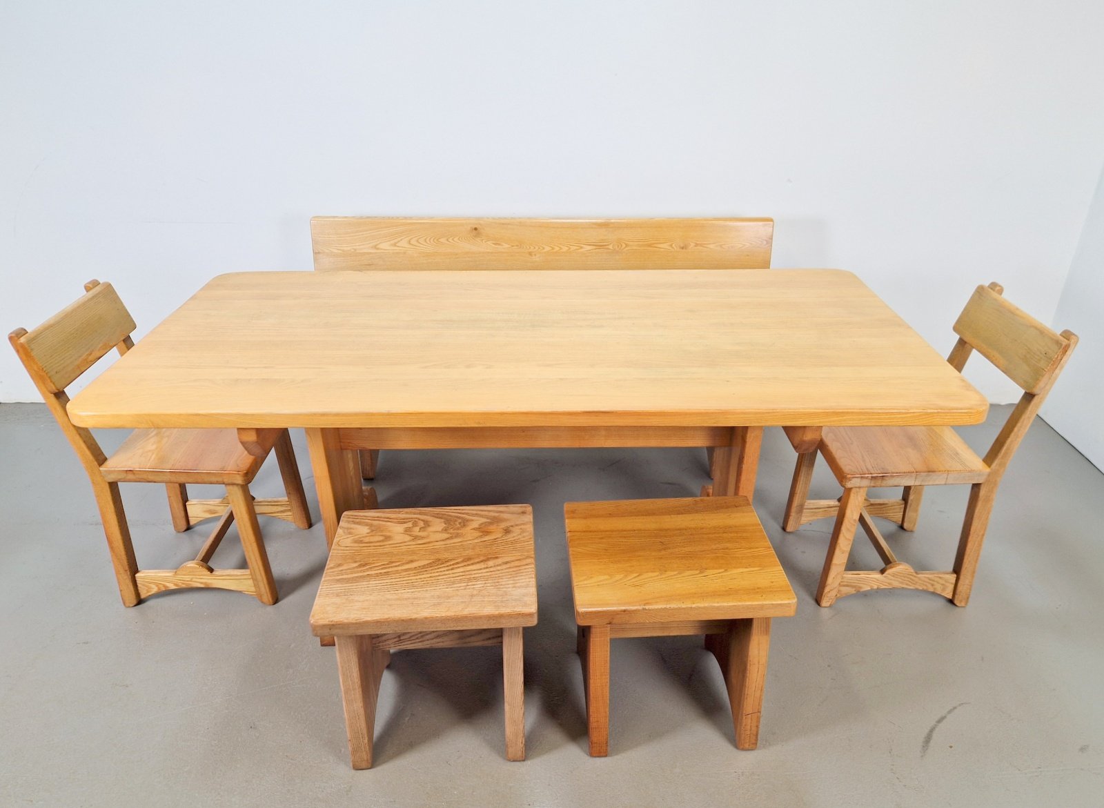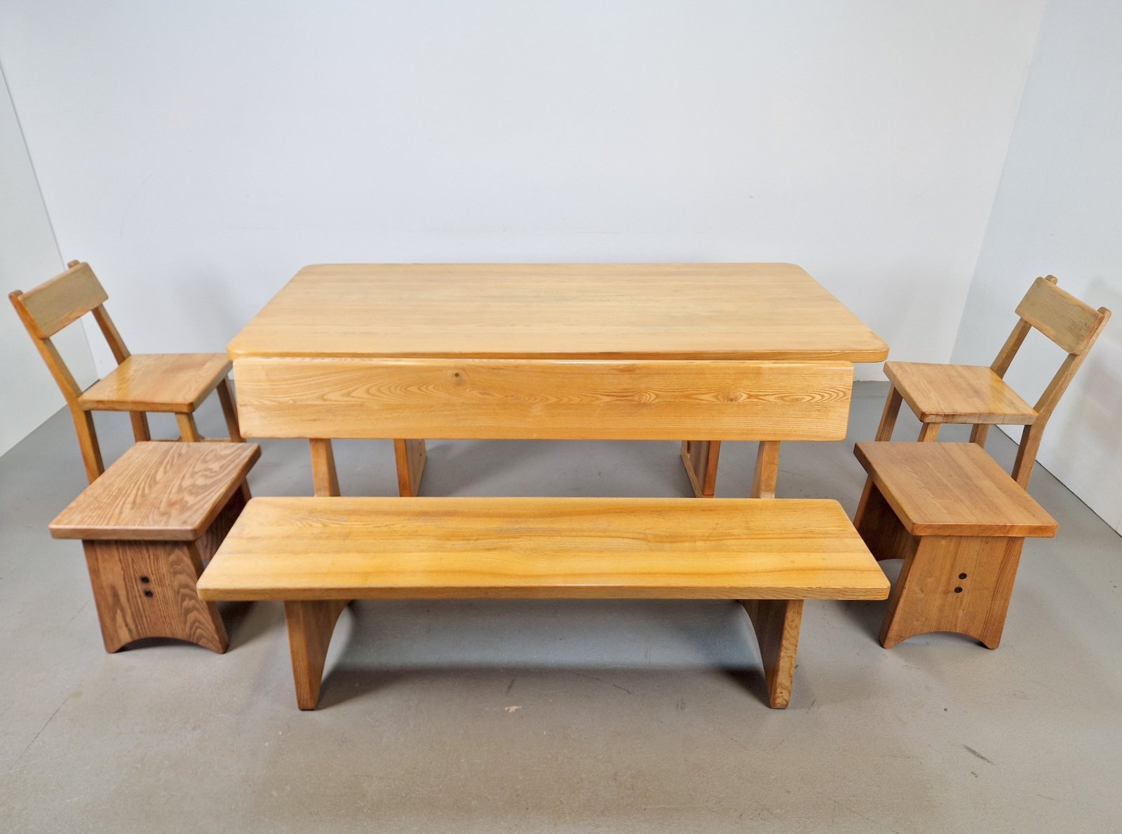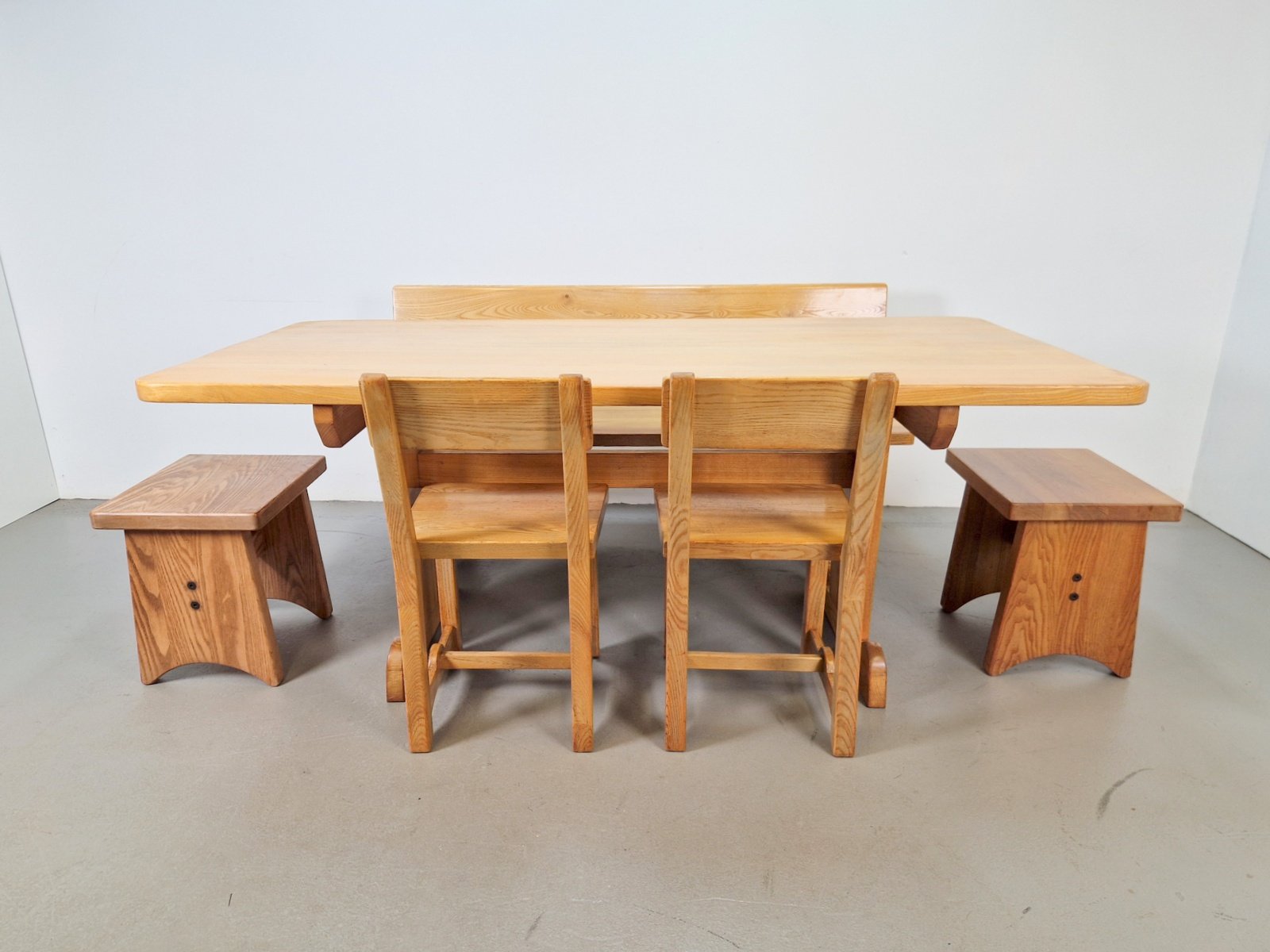 Vintage Danish Dining Room Set in Elm Table, 1960s, Set of 6