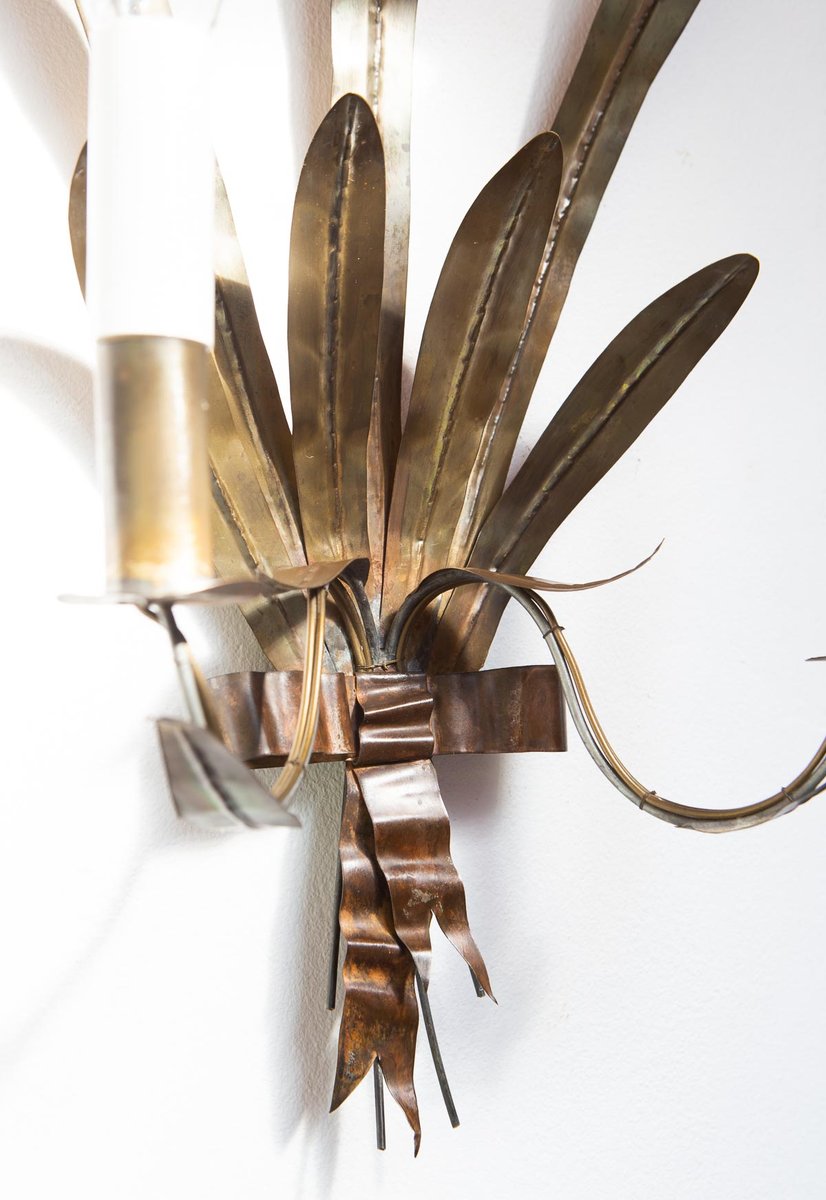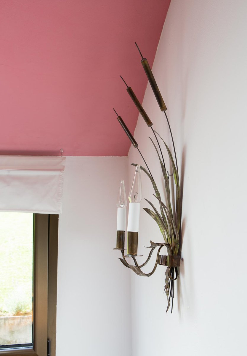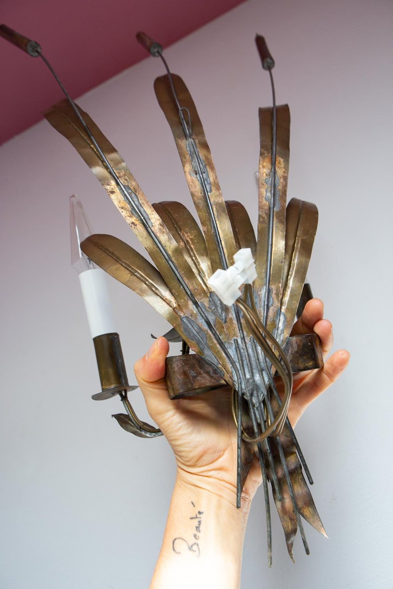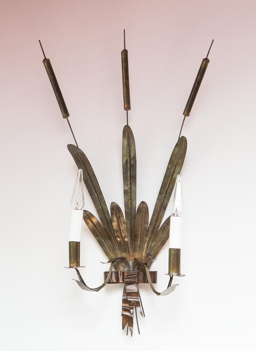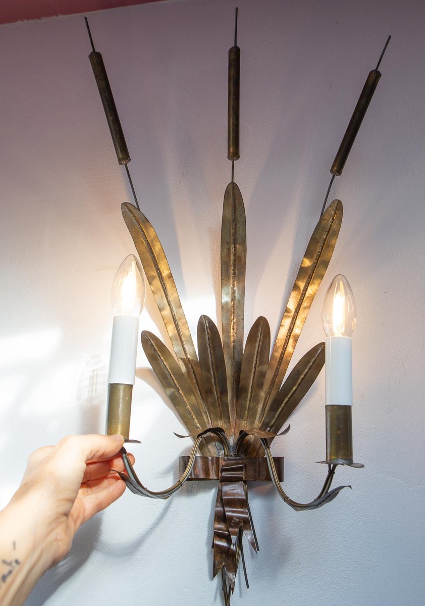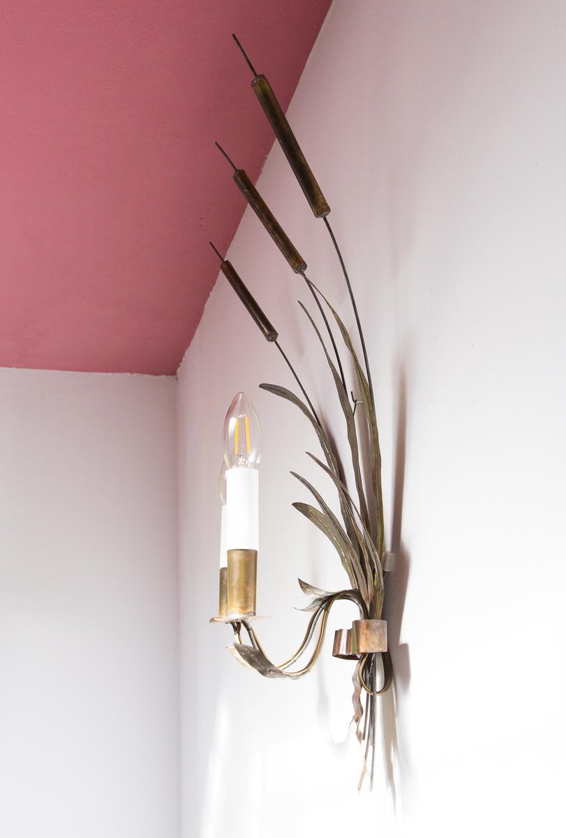 Vintage French Cattail Metal Wall Light, 1930s