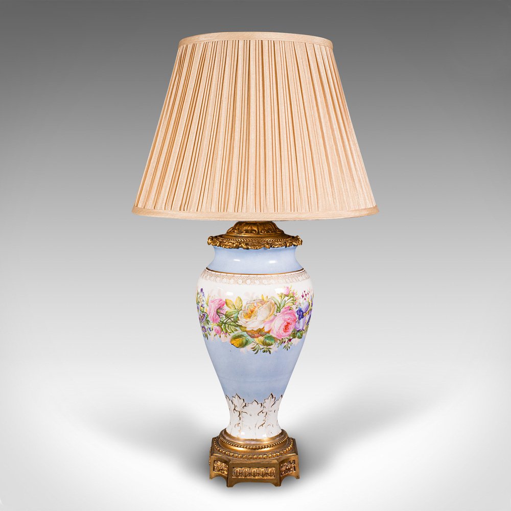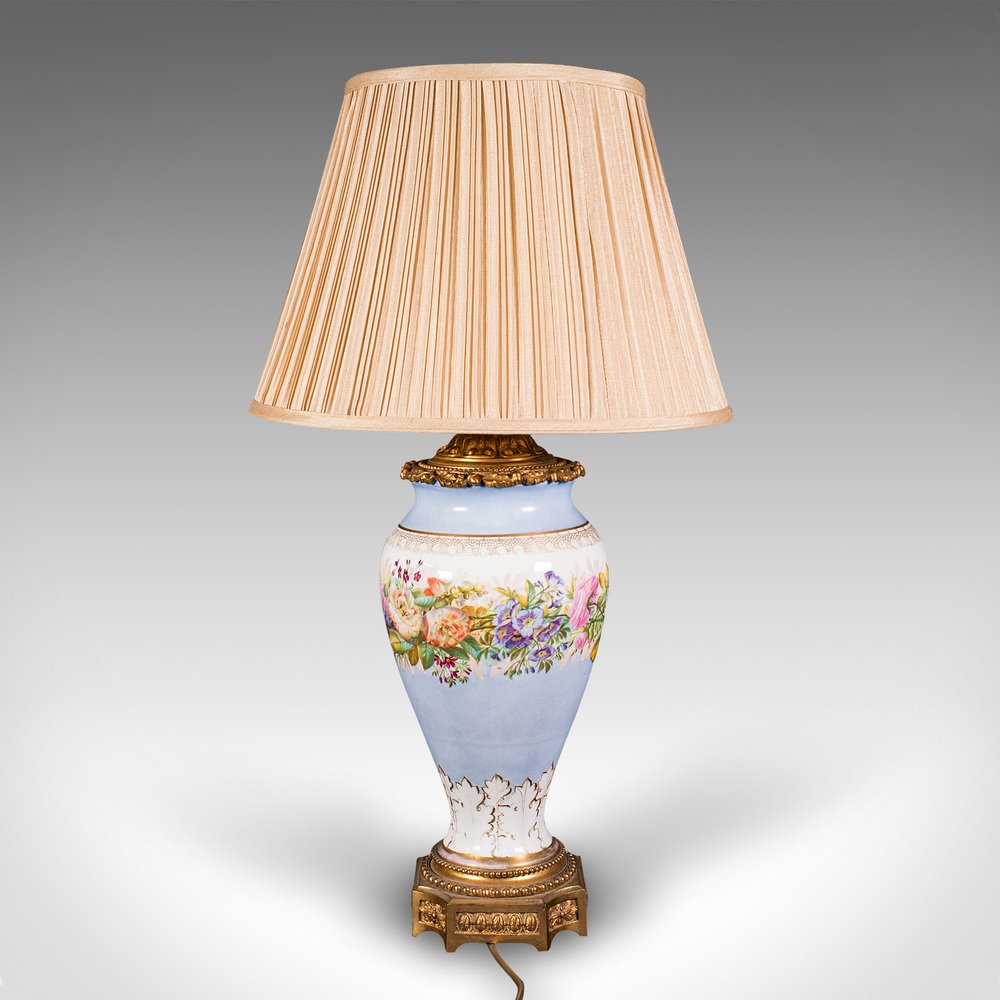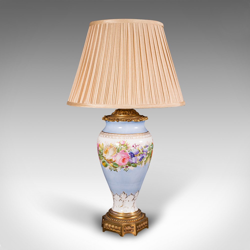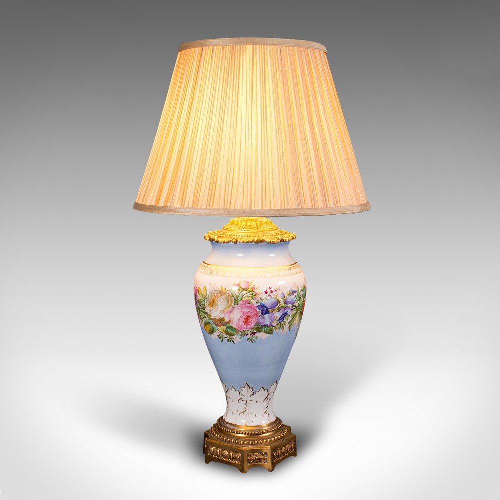Vintage French Ceramic & Gilt Metal Cafe Lamp, 1930s