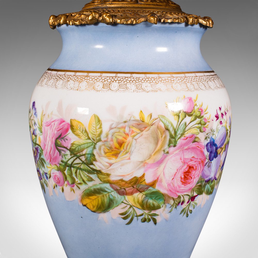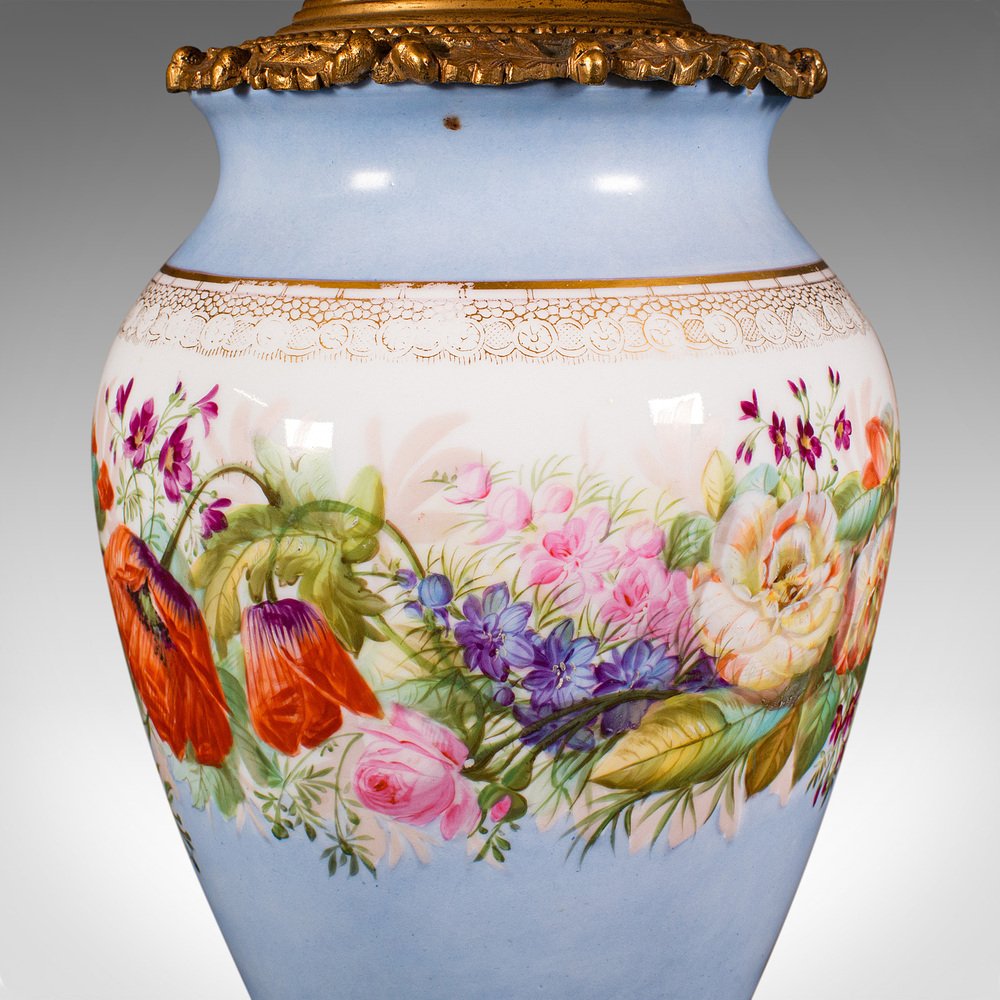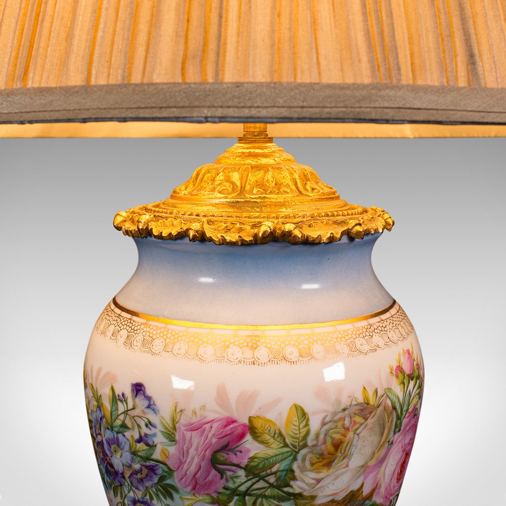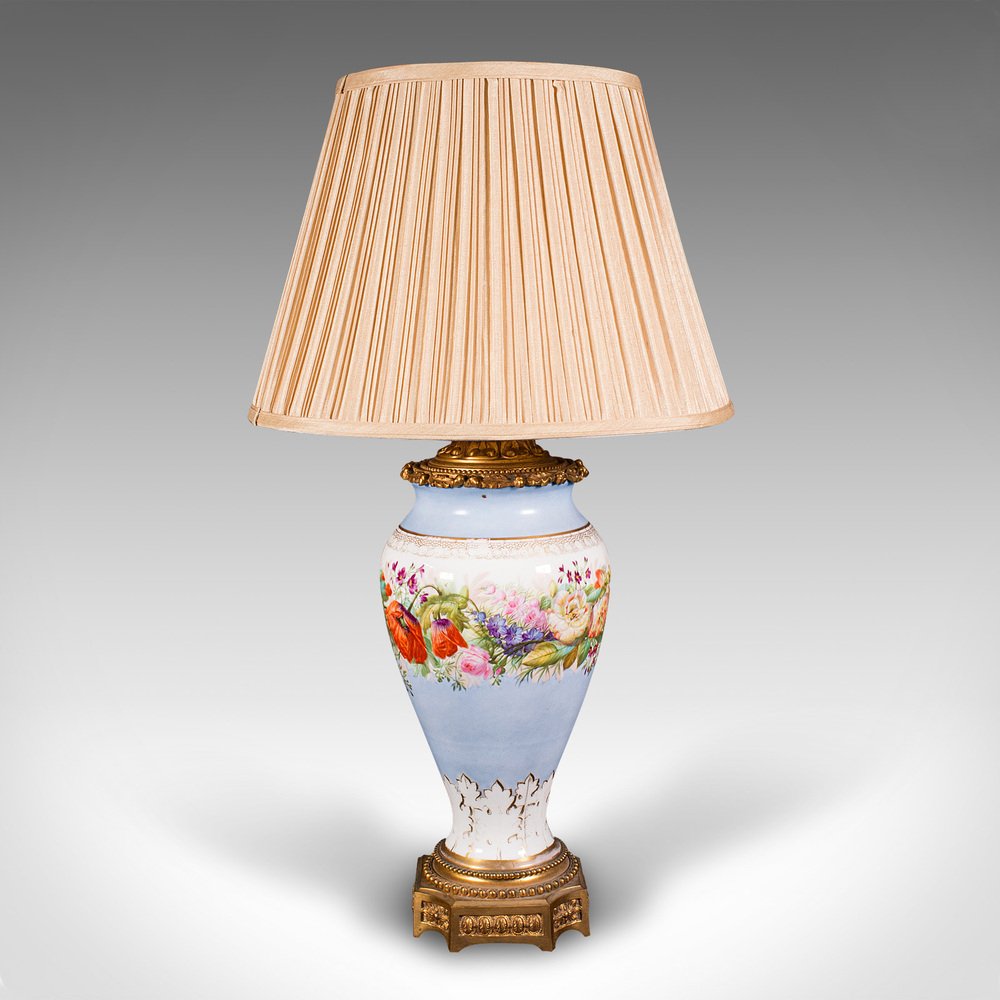 Vintage French Ceramic & Gilt Metal Cafe Lamp, 1930s