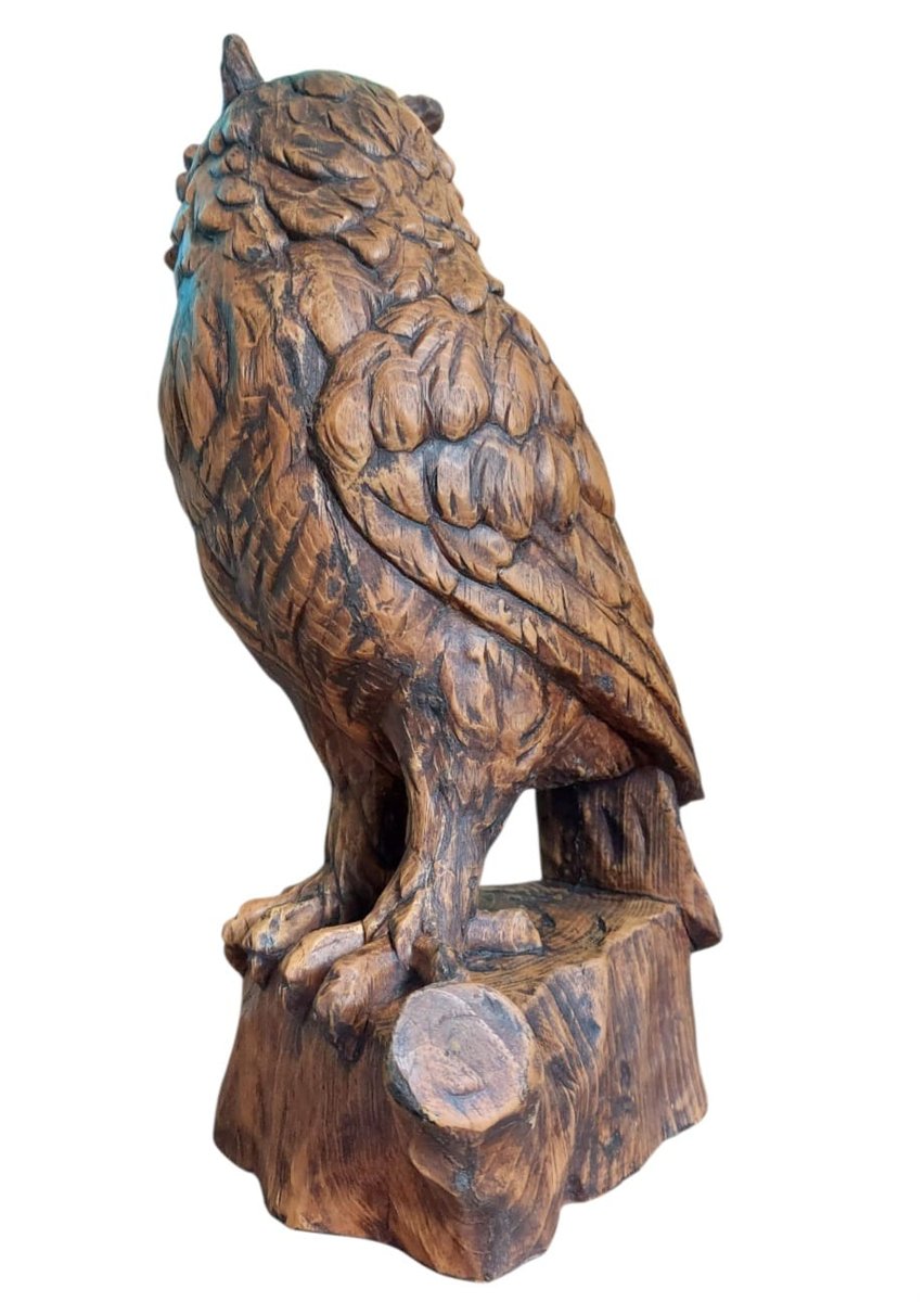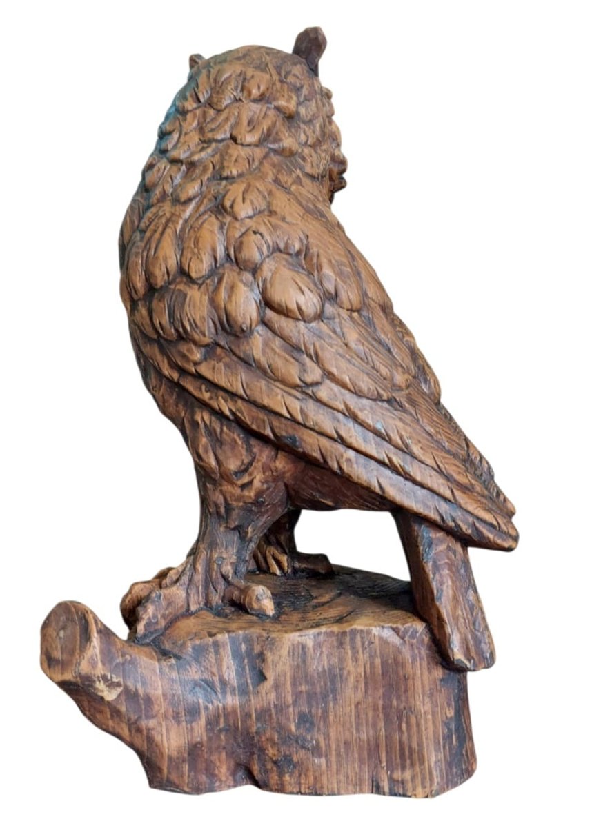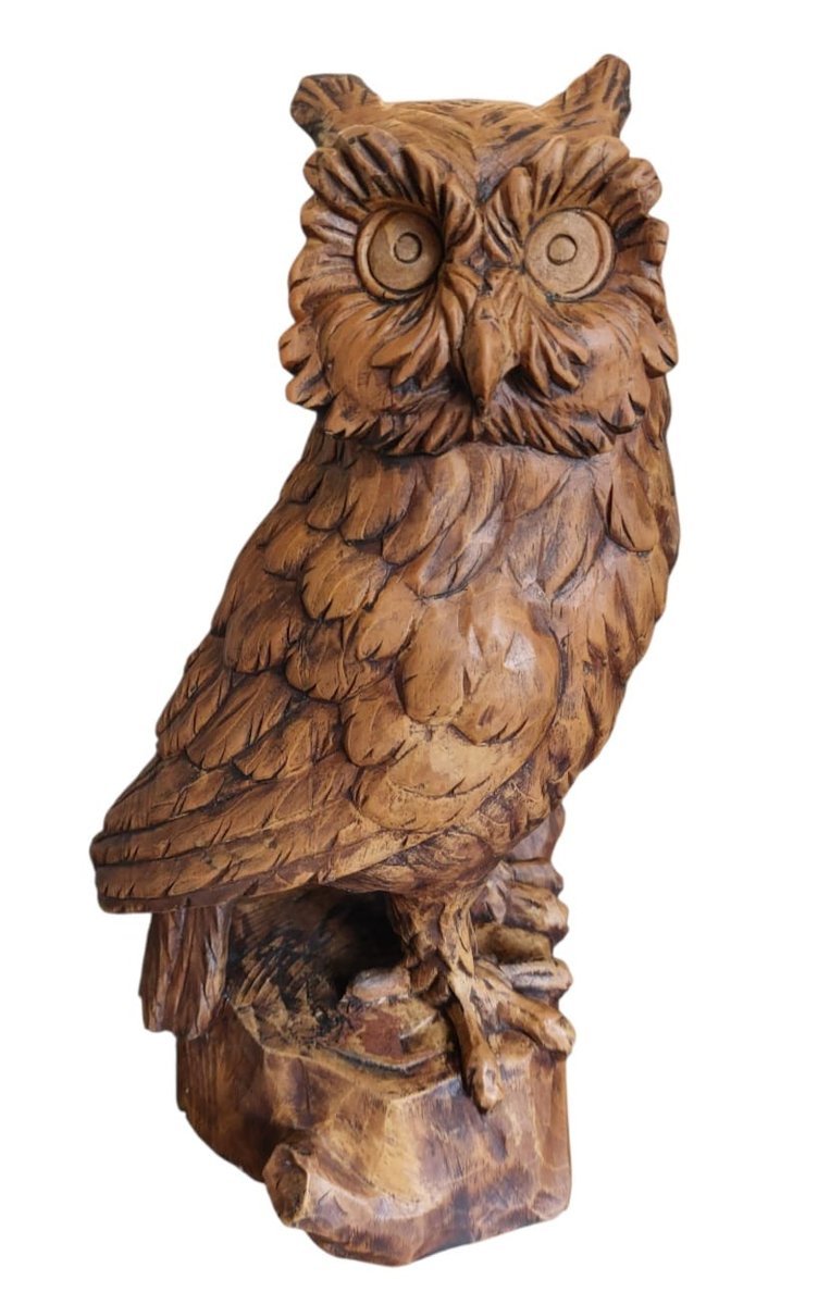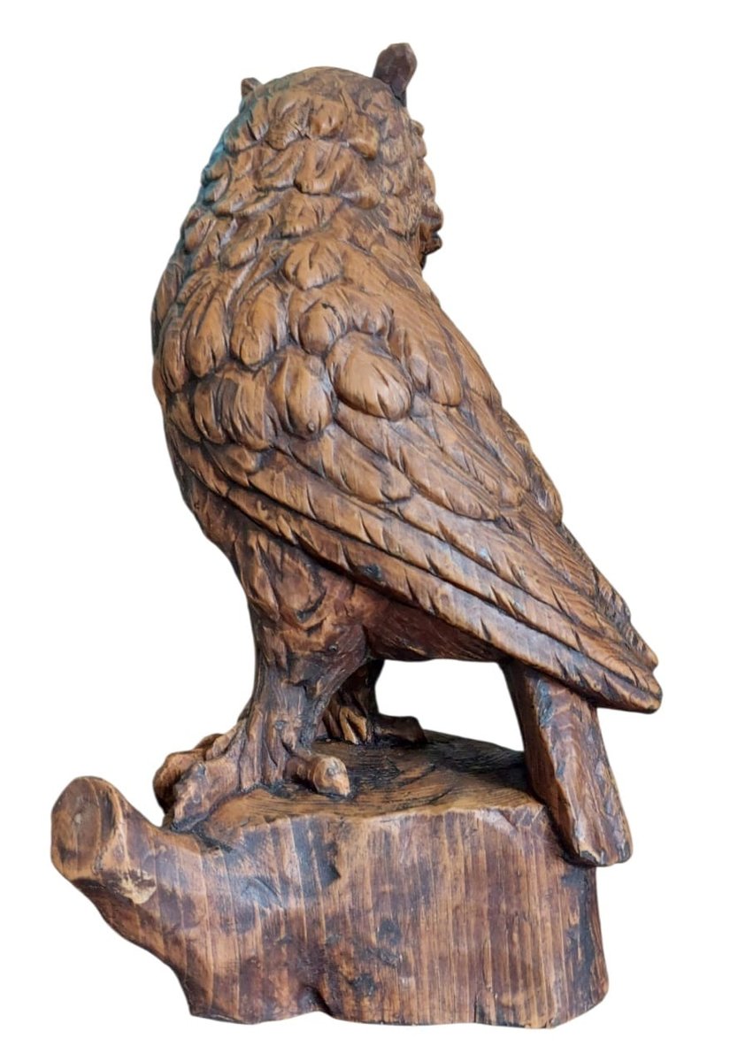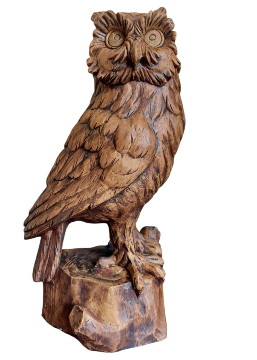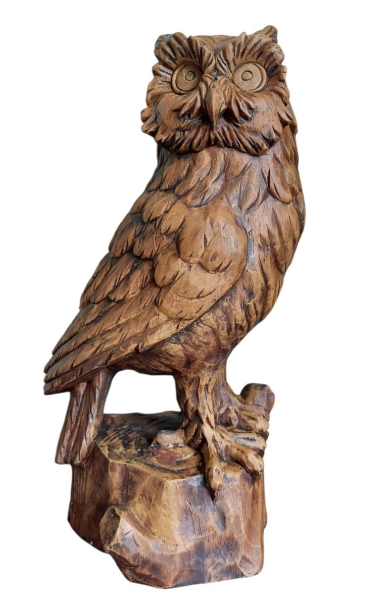 Vintage Hand-Carved Wood Owl, 1920s