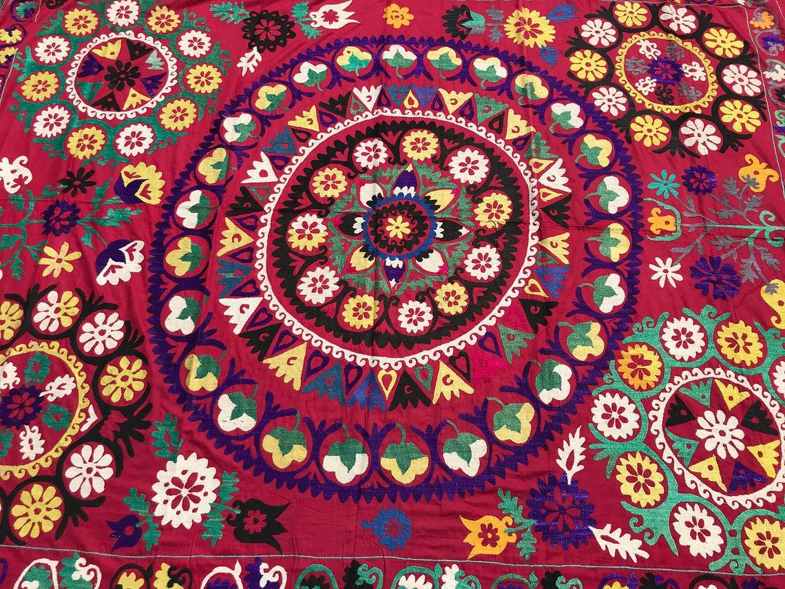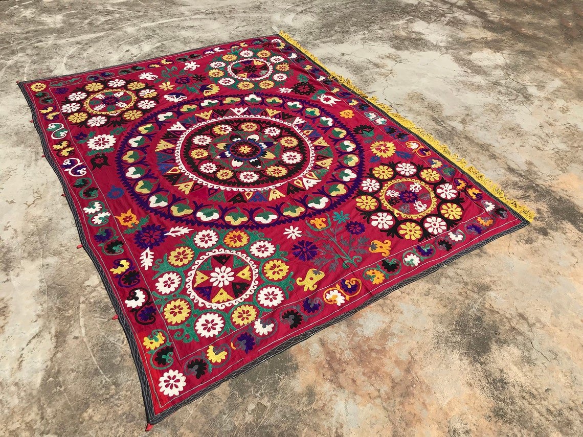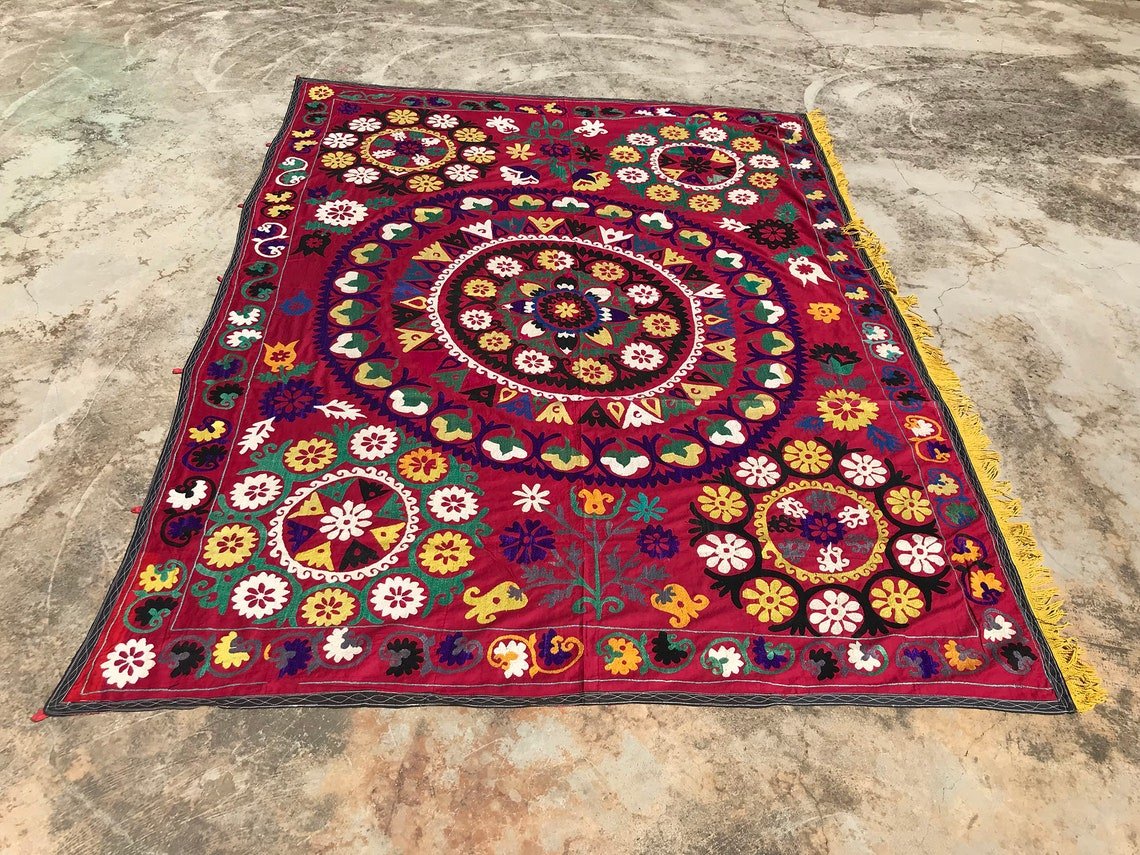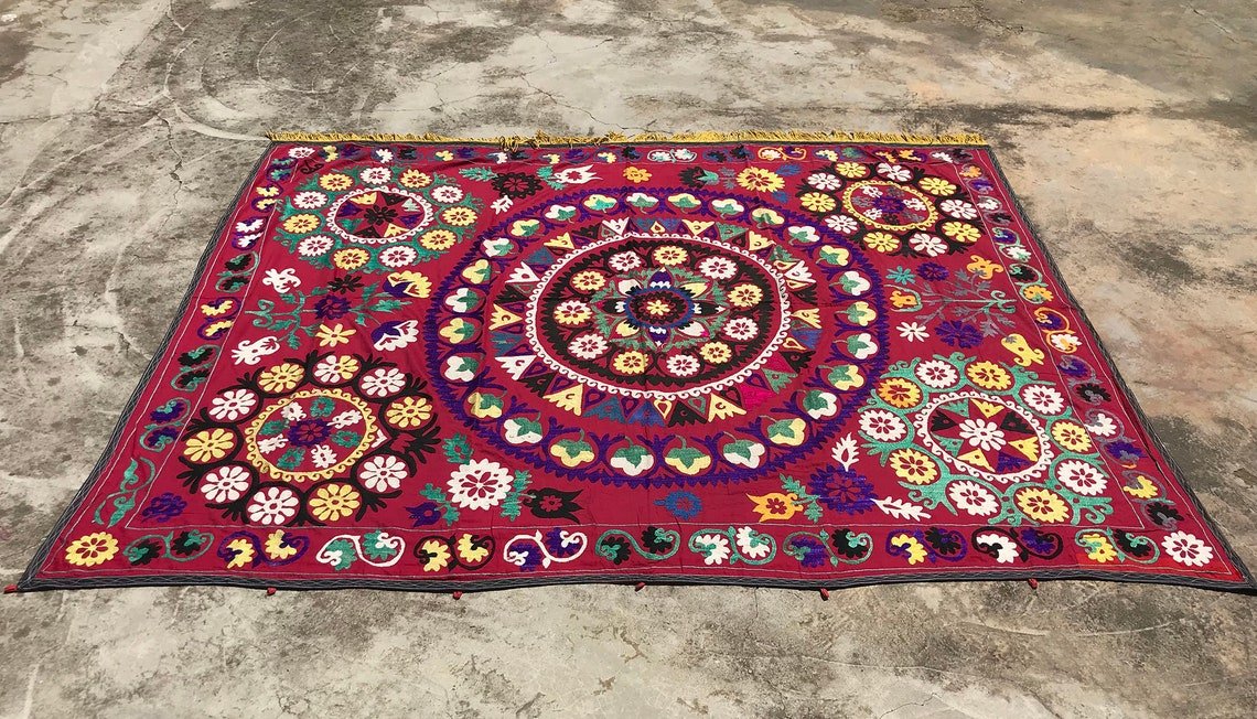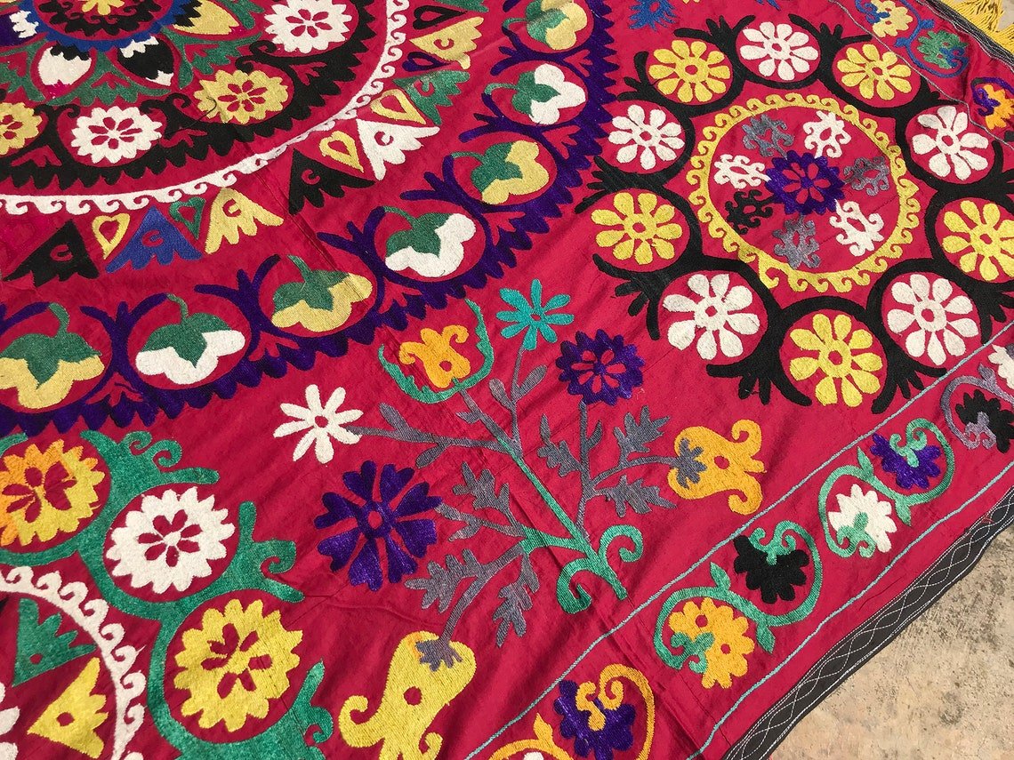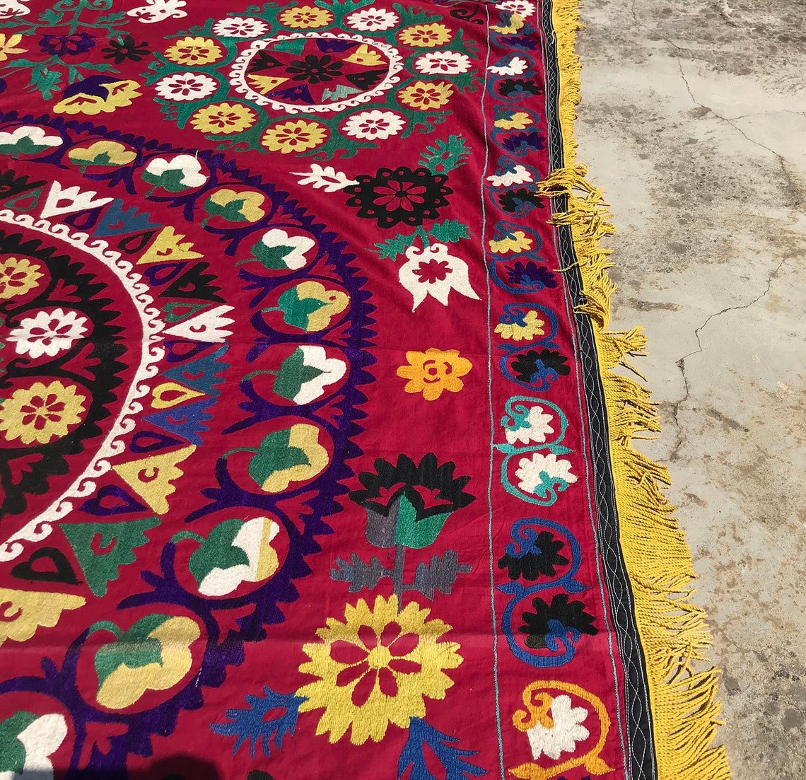 Vintage Handmade Headboard Textile with Yellow Tassel, 1970s