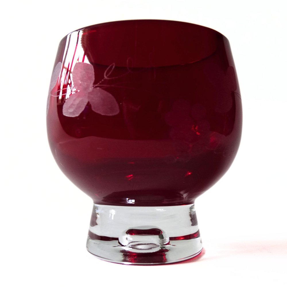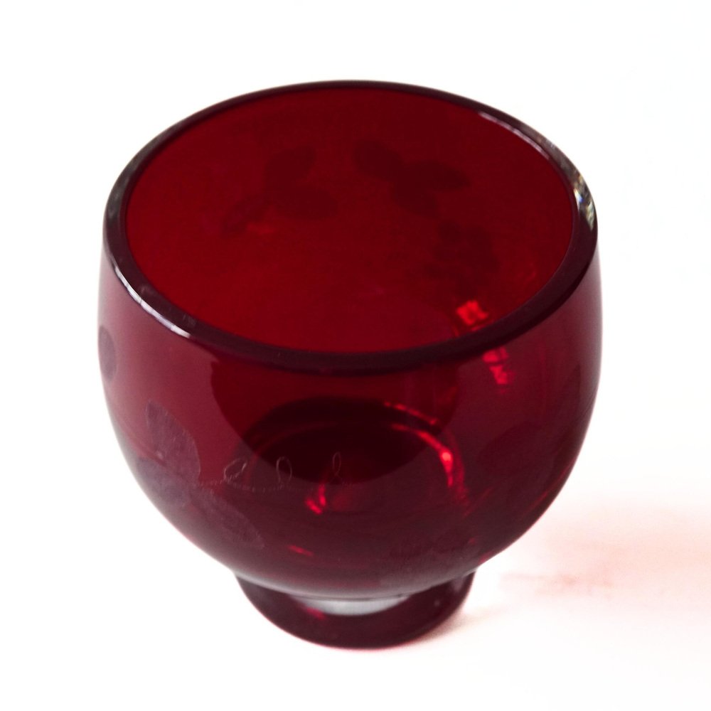 Vintage Handmade Red Glass Bowl by Monica Bratt, 1950s