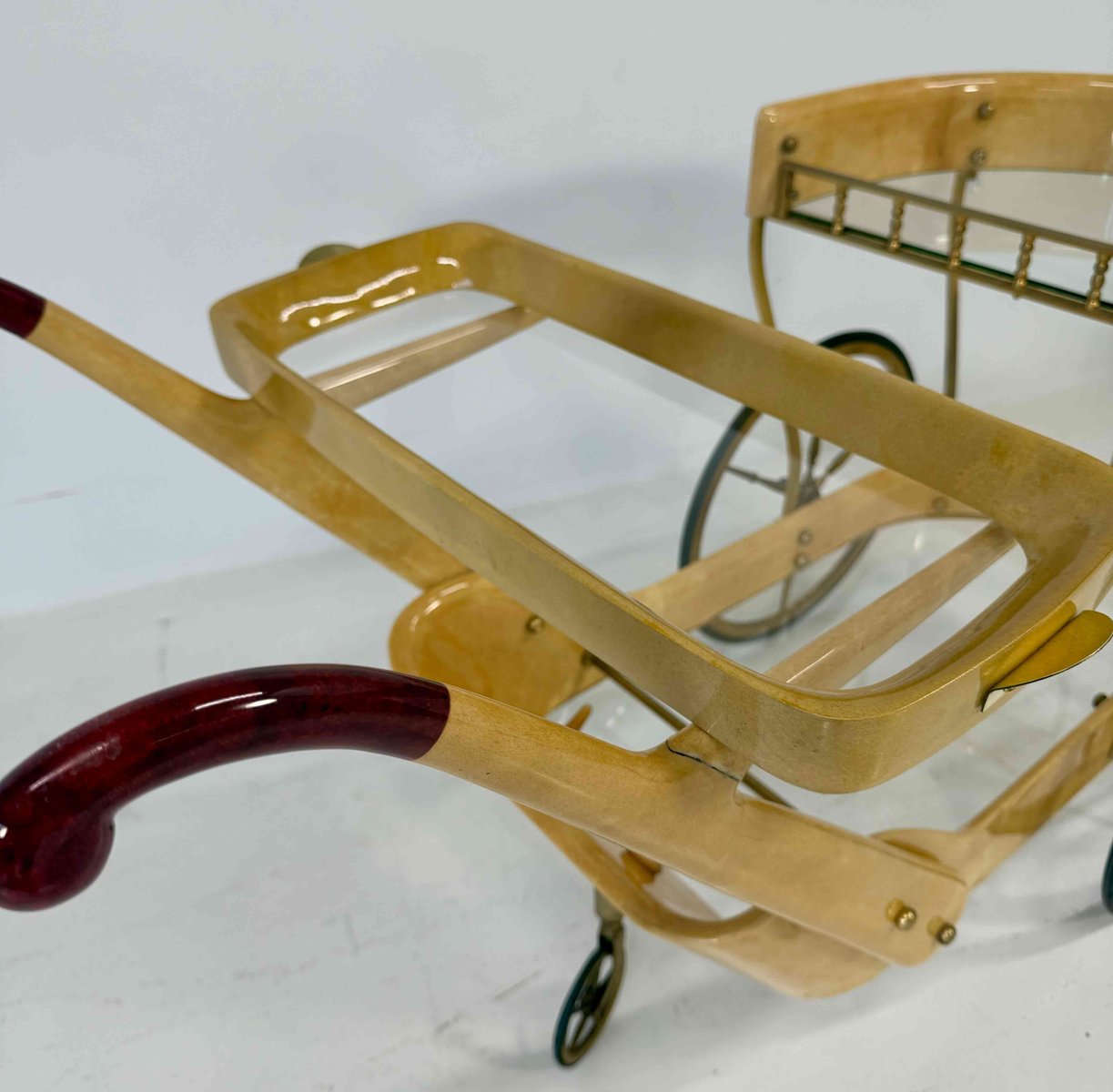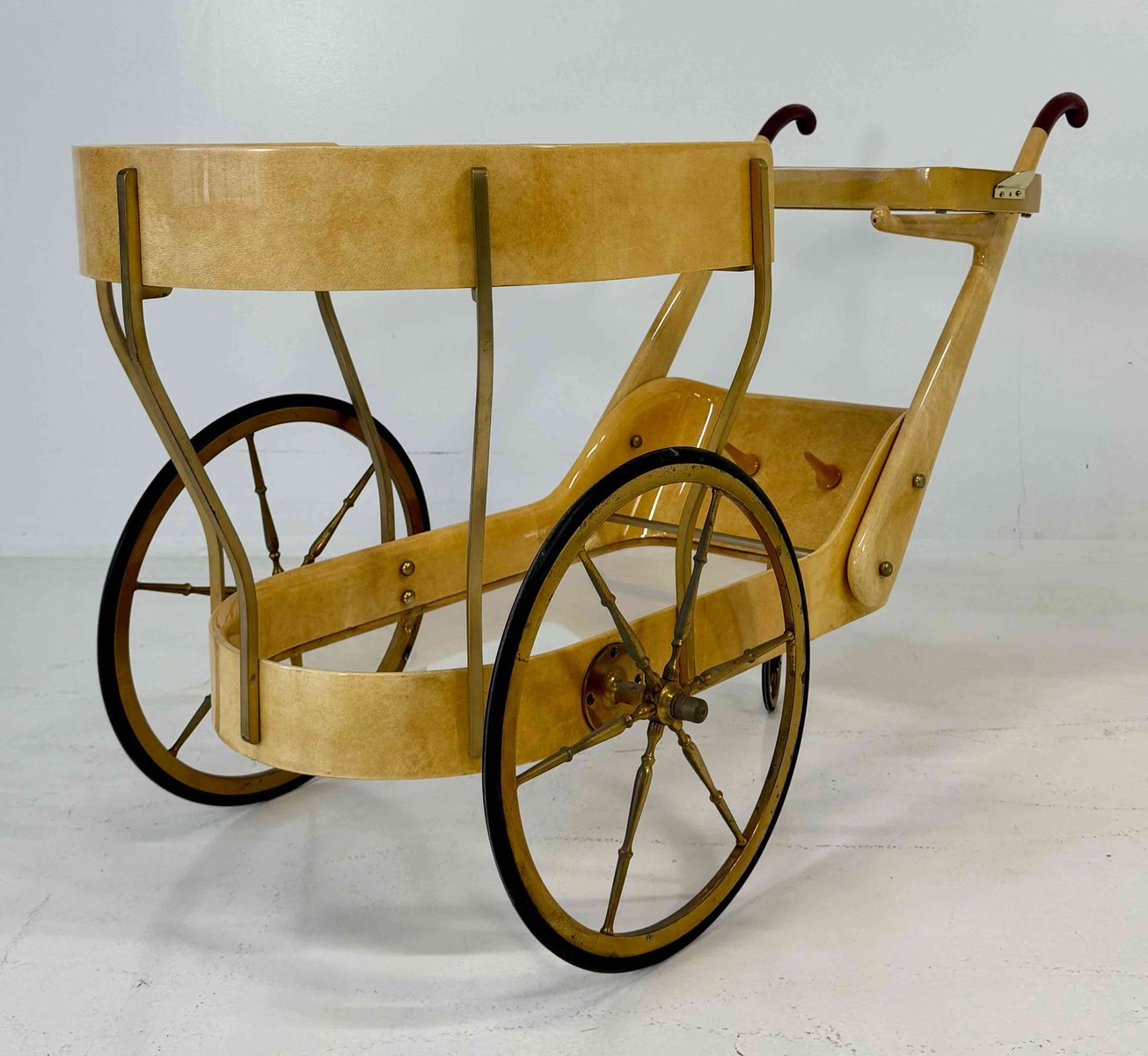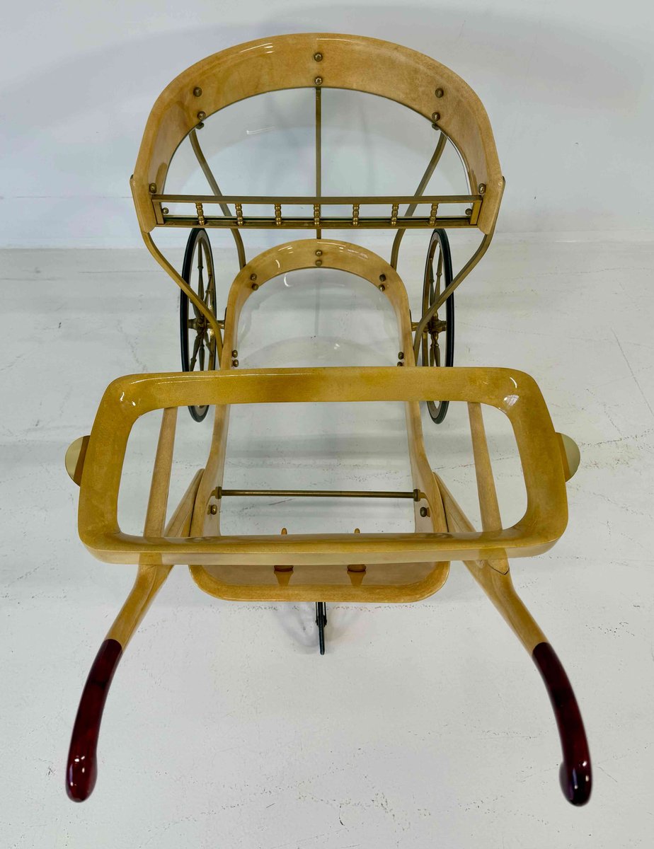 Vintage Italian Bar Cart in Parchment and Brass by Aldo Tura, 1960s