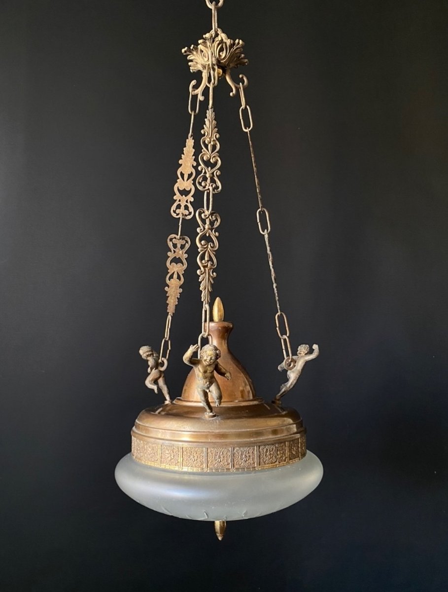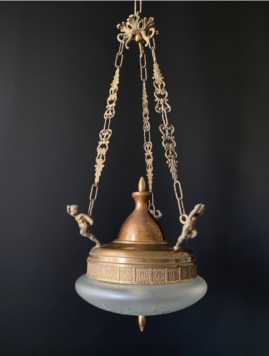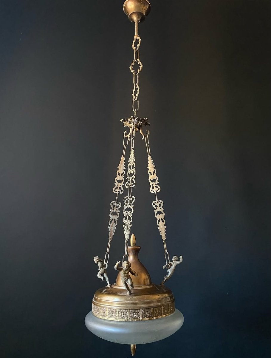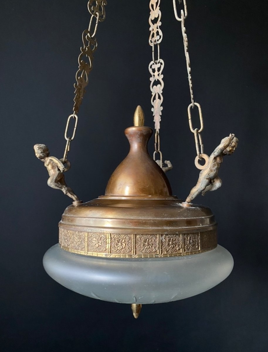 Vintage Italian Brass and Glass Pendant Light, 1960s